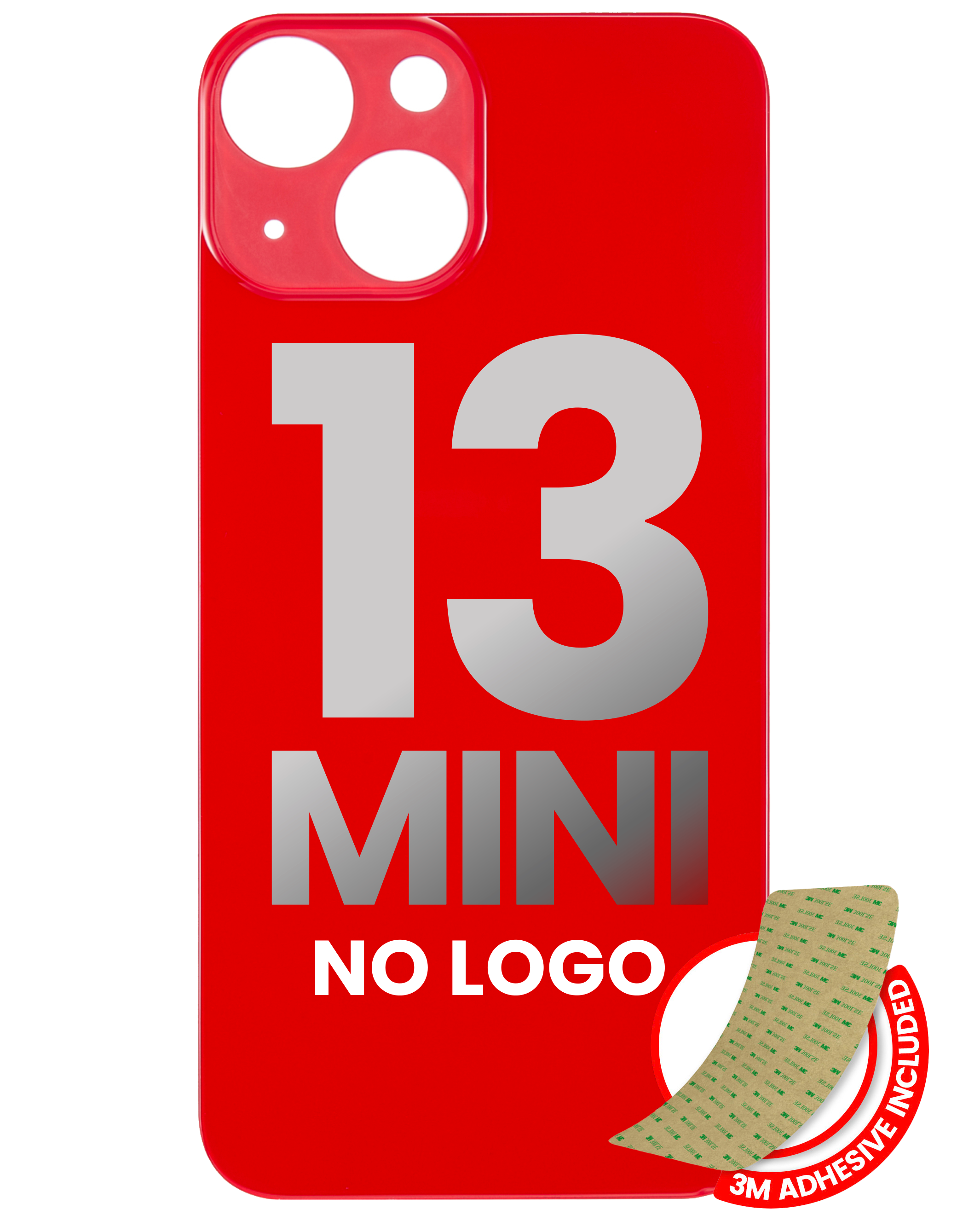 • High quality, Back Glass with 3M adhesive for iPhone 13 Mini (No Logo / Large Camera Hole) (Red).