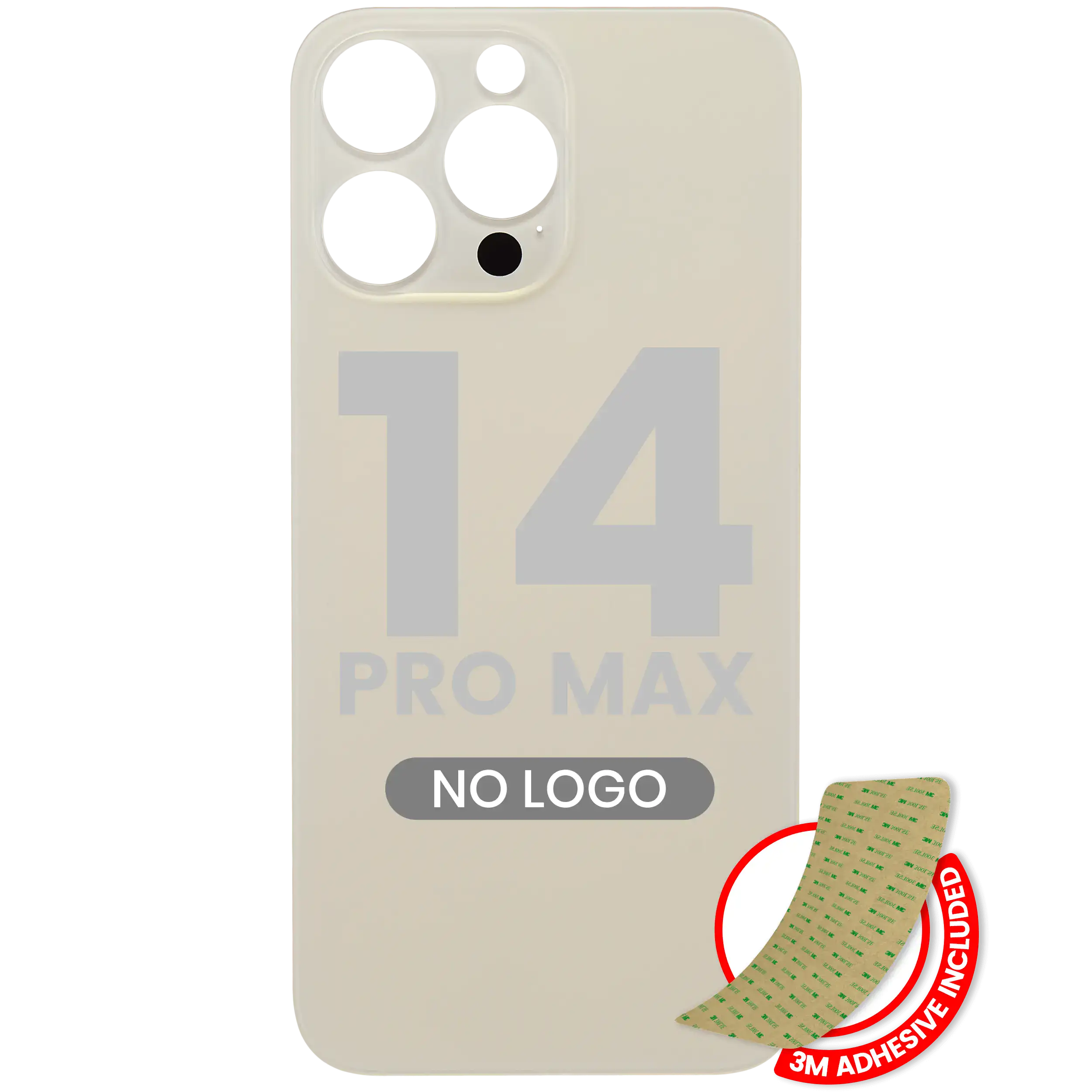 • High quality, Back Glass with 3M adhesive for iPhone 14 Pro Max (No Logo / Large Camera Hole) (Gold).