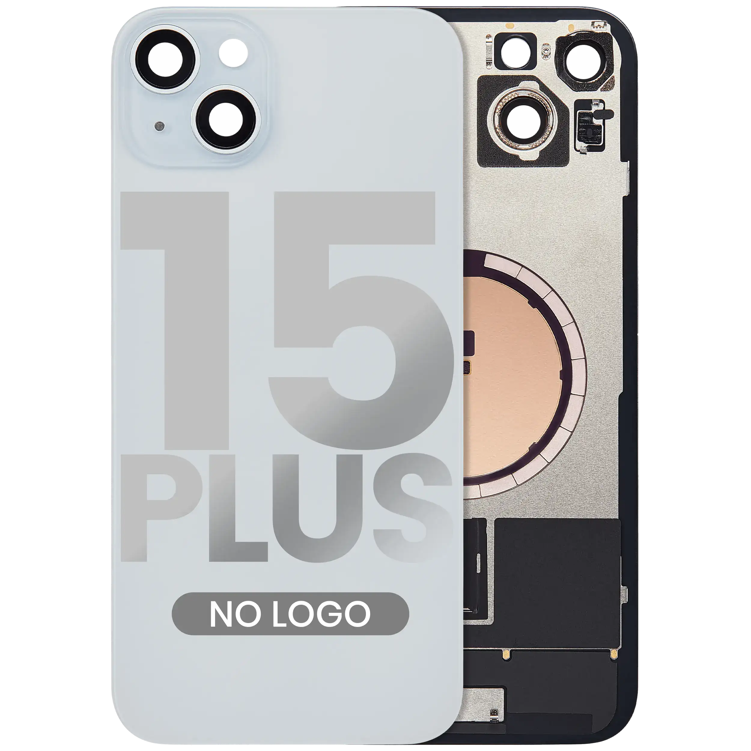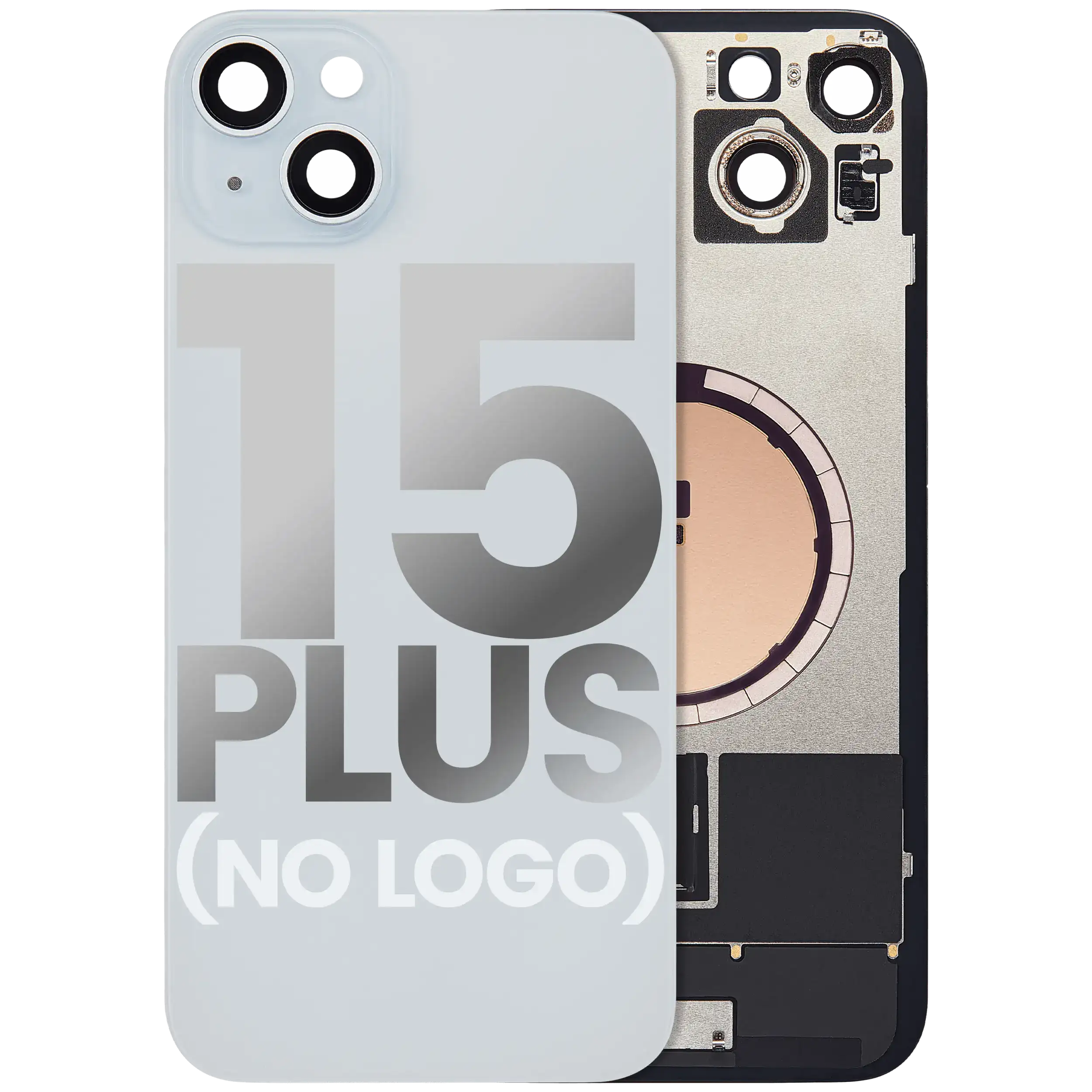 Back Glass With Steel Plate With MagSafe Magnet Pre-Installed iPhone 15 Plus (No Logo) (Blue)