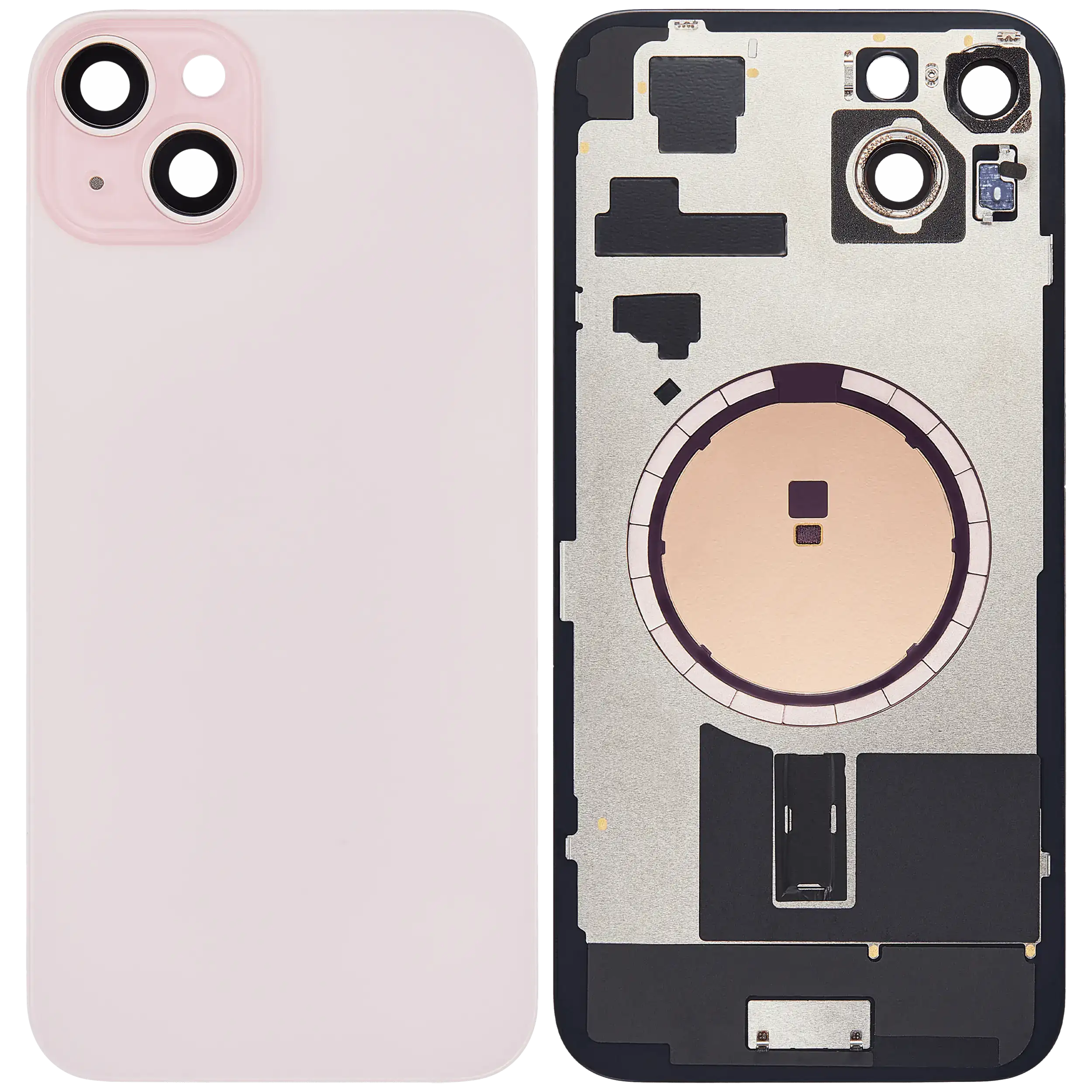 Back Glass With Steel Plate With MagSafe Magnet Pre-Installed iPhone 15 Plus (No Logo) (Pink)
