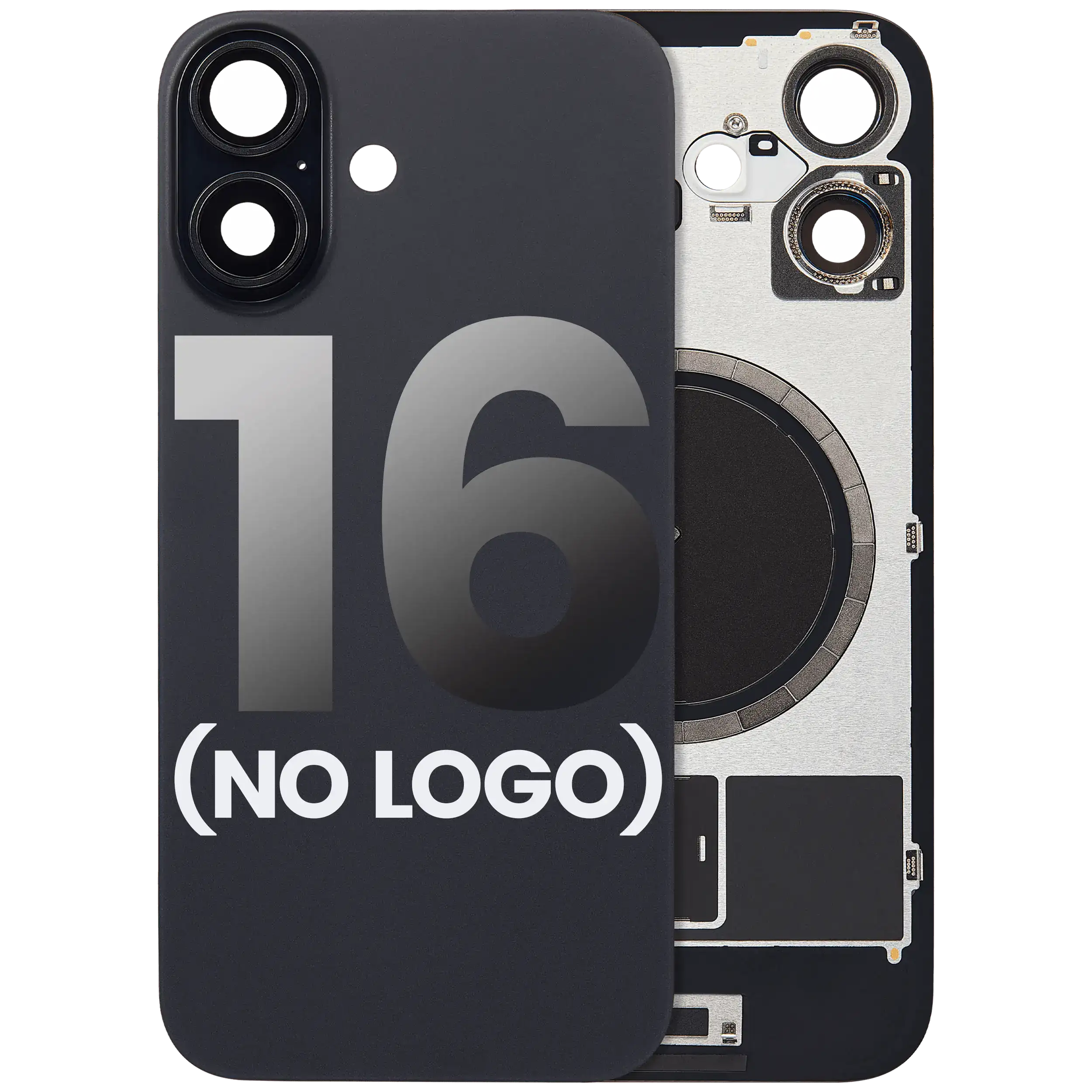 Back Glass With Steel Plate With MagSafe Magnet Pre-Installed iPhone 16 (No Logo) (Black)