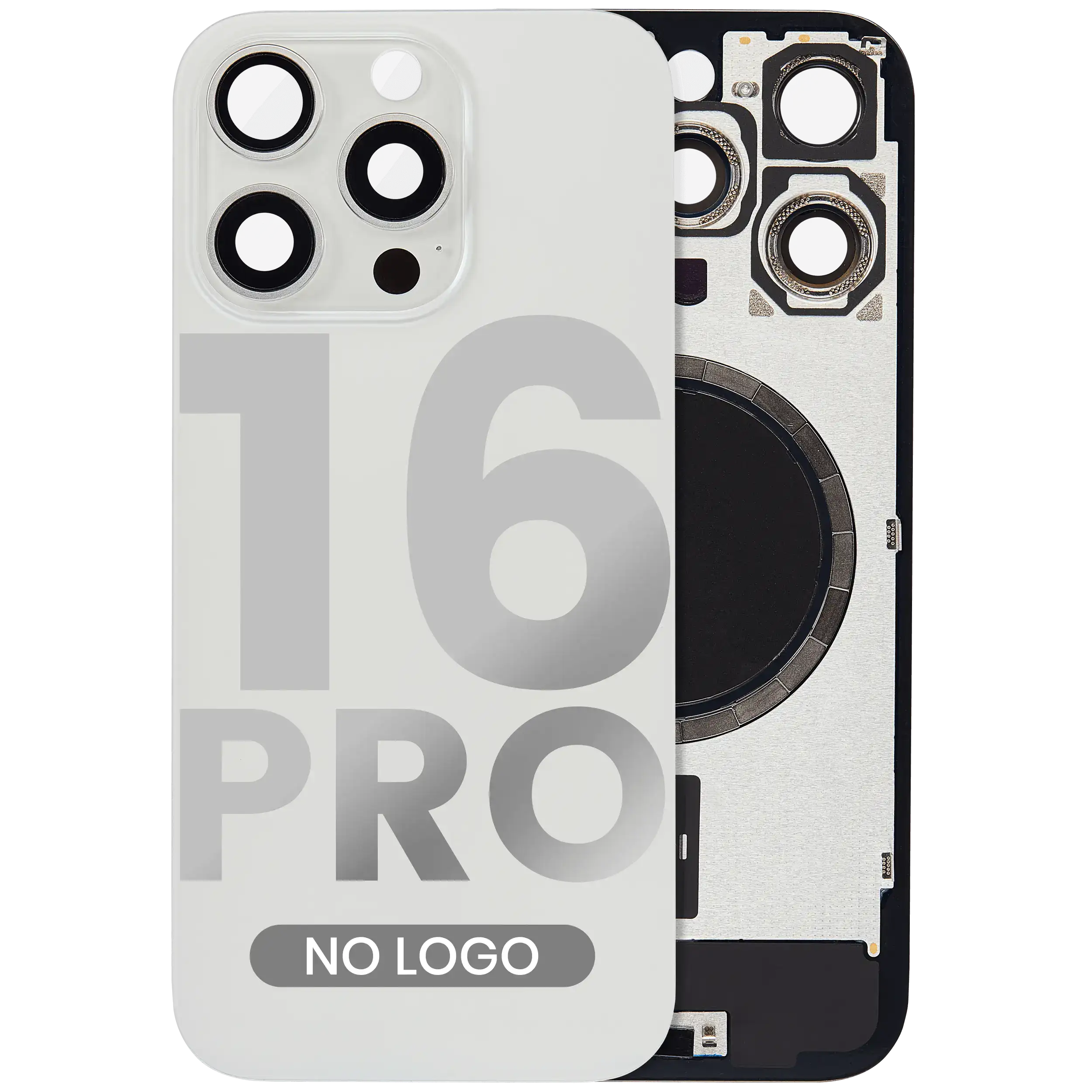 Back Glass With Steel Plate With MagSafe Magnet Pre-Installed iPhone 16 Pro (No Logo) (White Titanium)