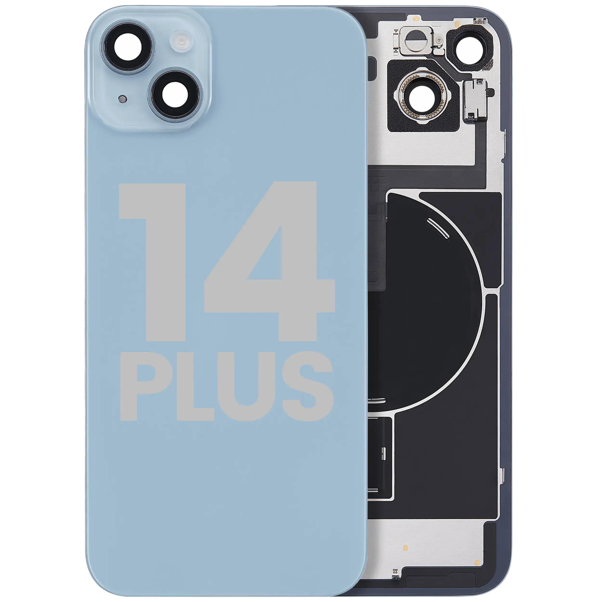 Back Glass With Steel Plate With Wireless NFC Charging MagSafe Magnet & Flashlight Flex iPhone 14 Plus (Used OEM Pull: Grade B) (Blue)