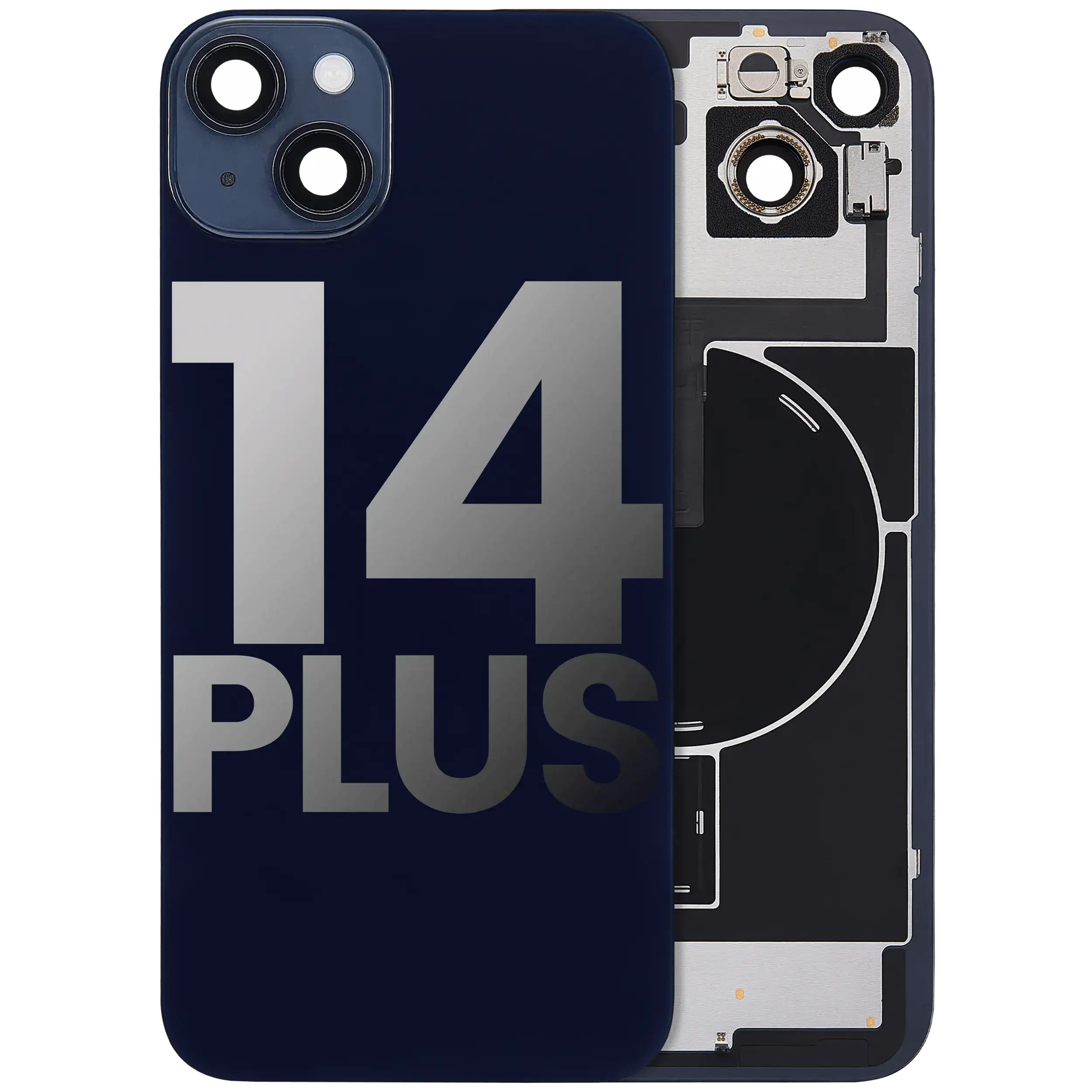 Back Glass With Steel Plate With Wireless NFC Charging MagSafe Magnet & Flashlight Flex iPhone 14 Plus (Used OEM Pull: Grade B) (Midnight)