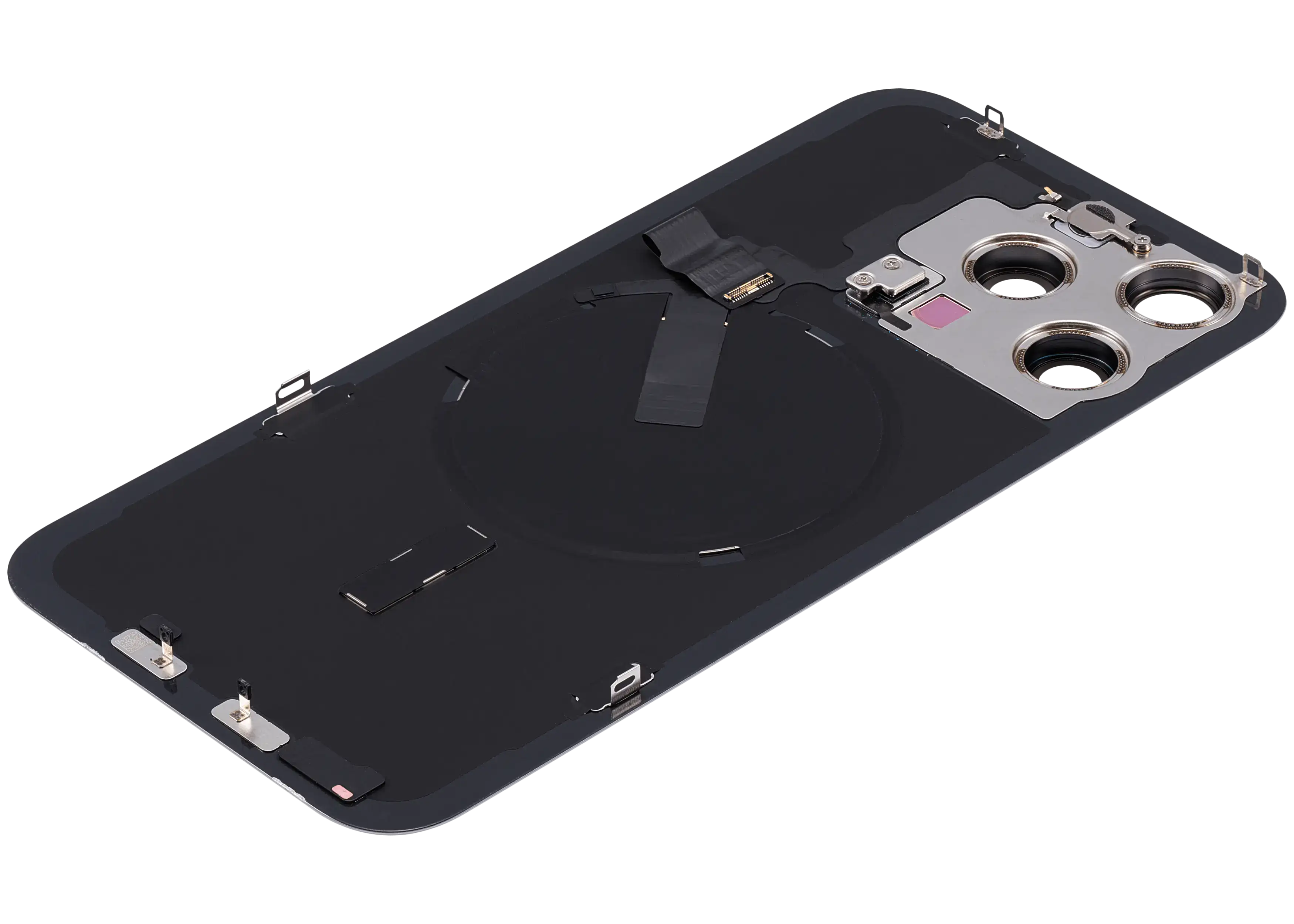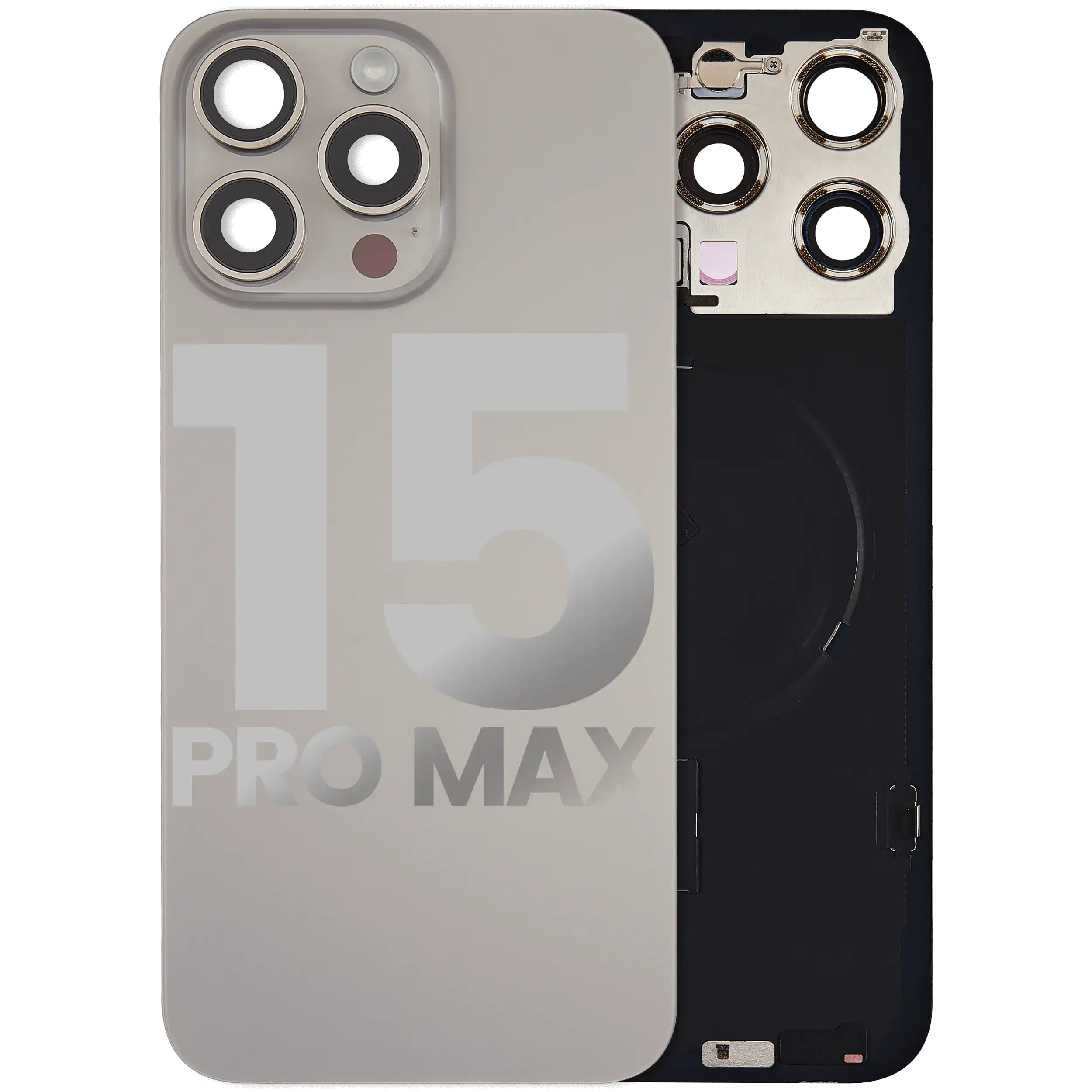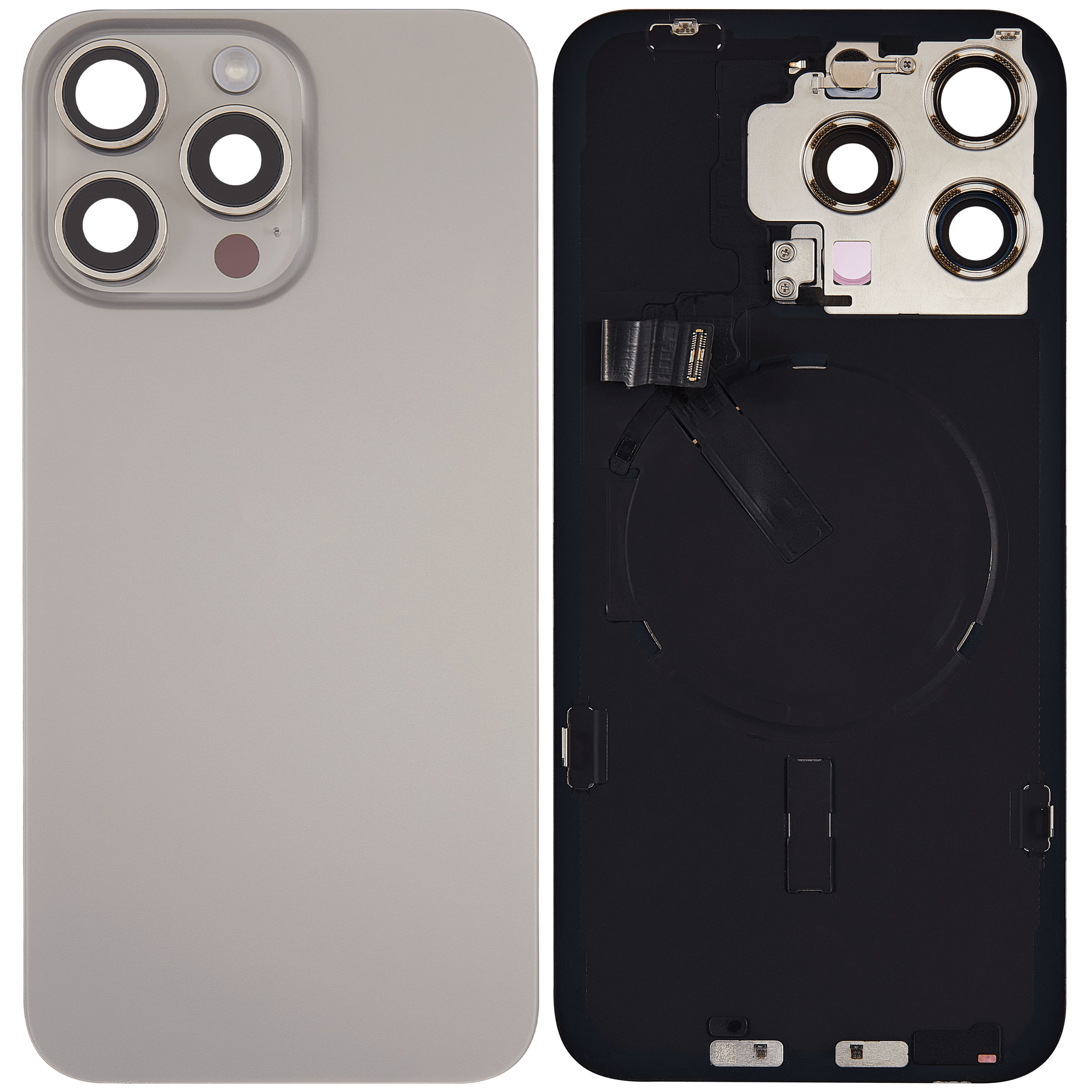Back Glass With Steel Plate With Wireless NFC Charging MagSafe Magnet & Flashlight Flex iPhone 15 Pro Max (Used OEM Pull: Grade B) (Natural Titanium)