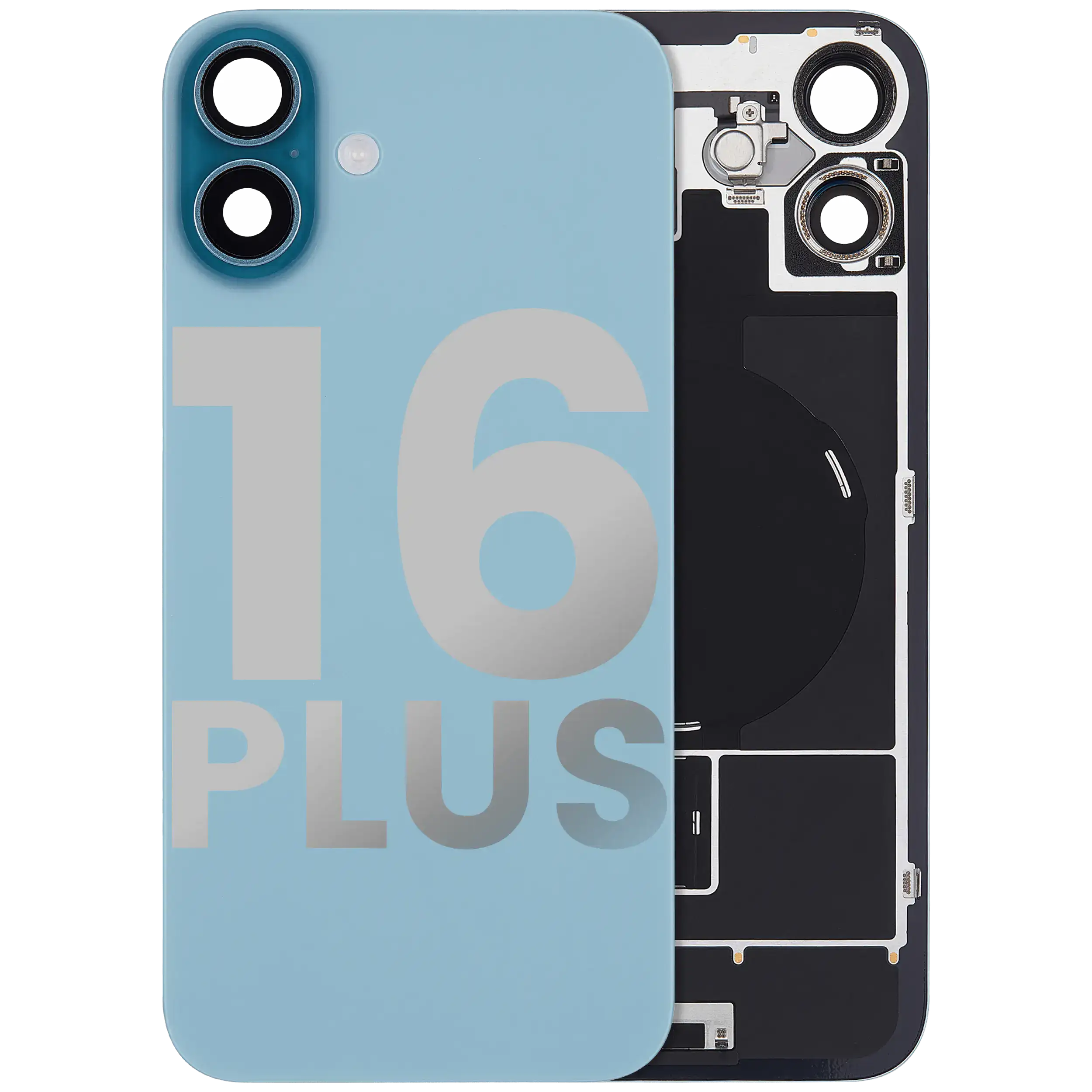 Back Glass w/ MagSafe Magnet & NFC & Flashlight Flex For iPhone 16 Plus (Used OEM Pull: Grade A) (Teal)