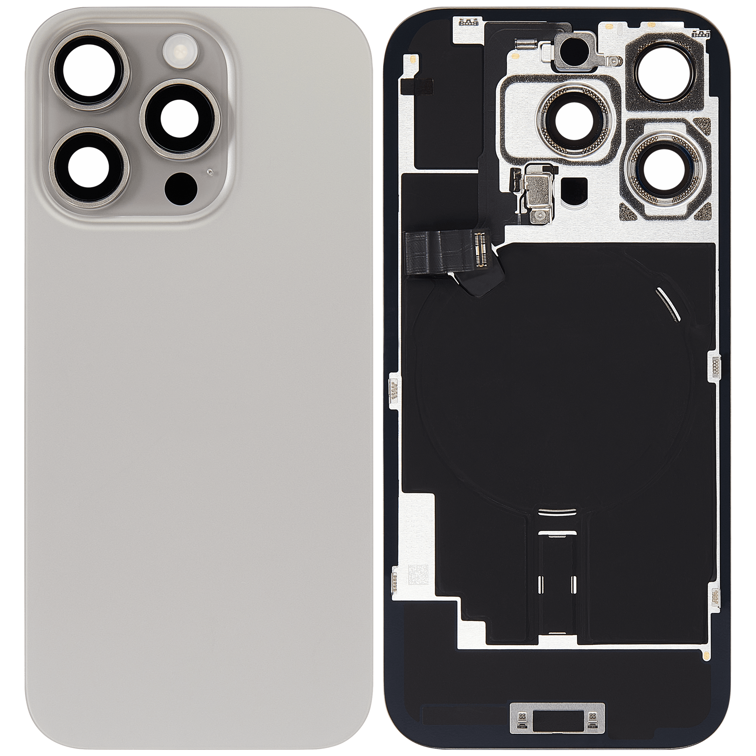 Back Glass With Steel Plate With Wireless NFC Charging MagSafe Magnet & Flashlight Flex iPhone 16 Pro (Used OEM Pull: Grade B) (Natural Titanium)