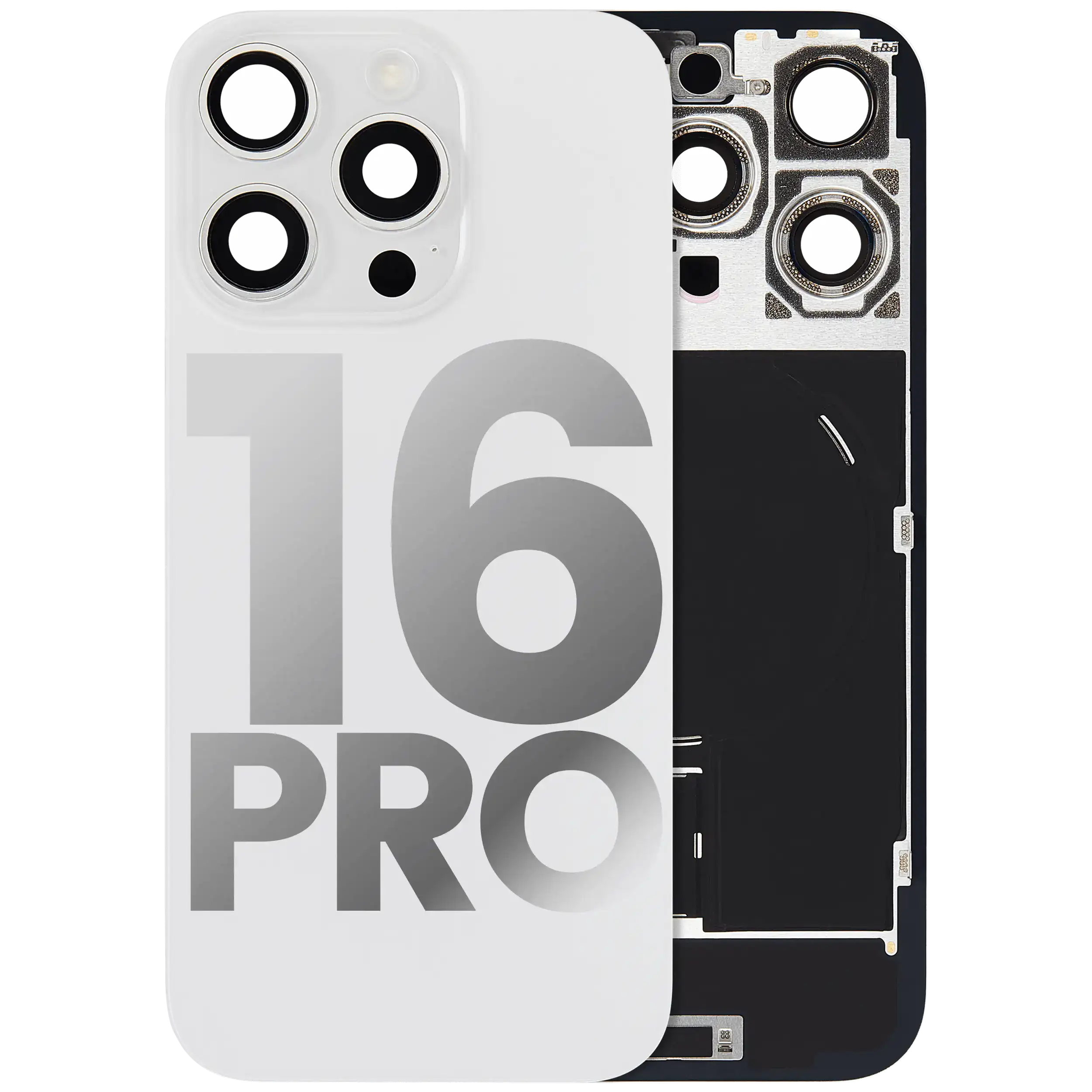 Back Glass With Steel Plate With Wireless NFC Charging MagSafe Magnet & Flashlight Flex iPhone 16 Pro (Used OEM Pull: Grade B) (White Titanium)