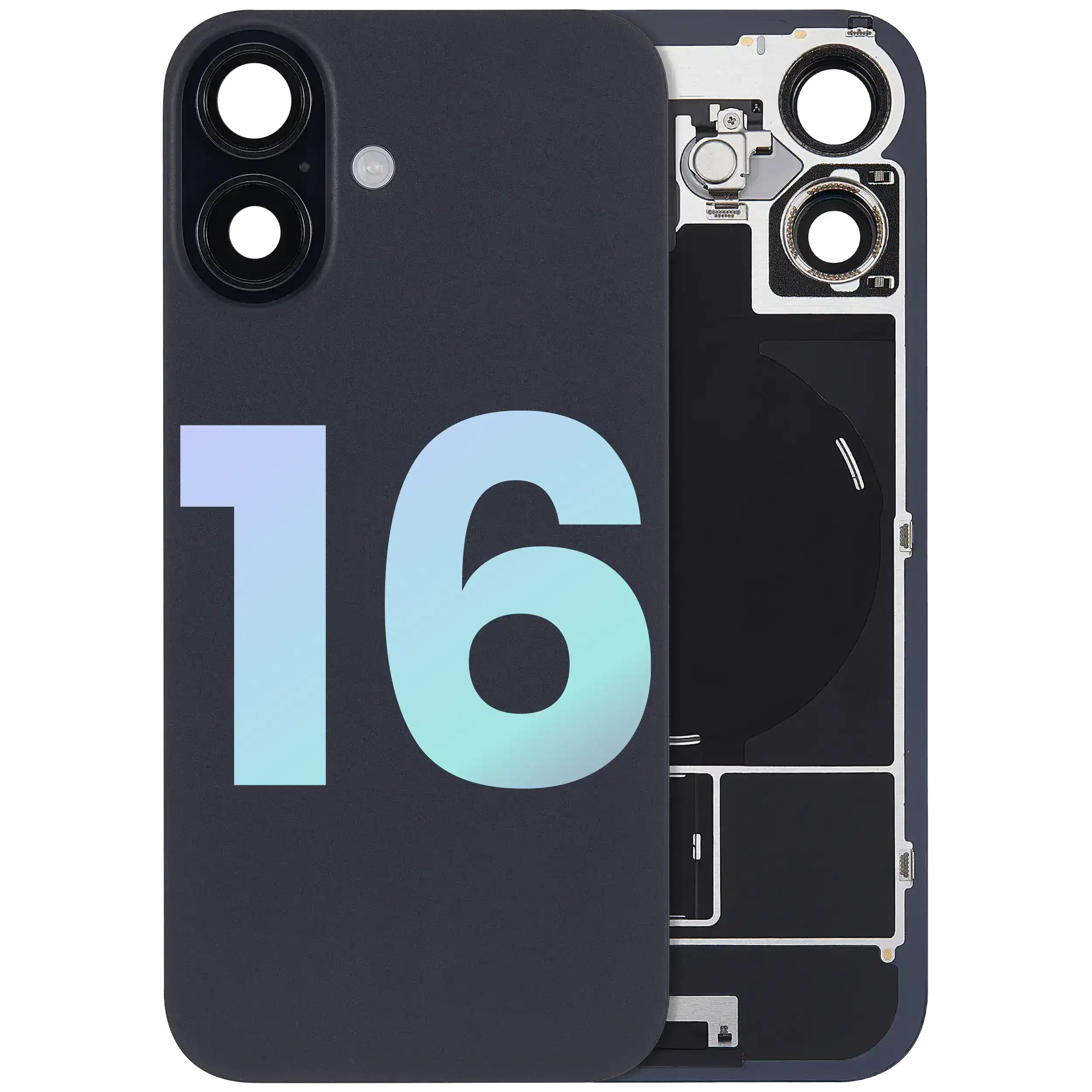 Back Glass w/ MagSafe Magnet & NFC & Flashlight Flex For iPhone 16 (Used OEM Pull: Grade B) (Black)