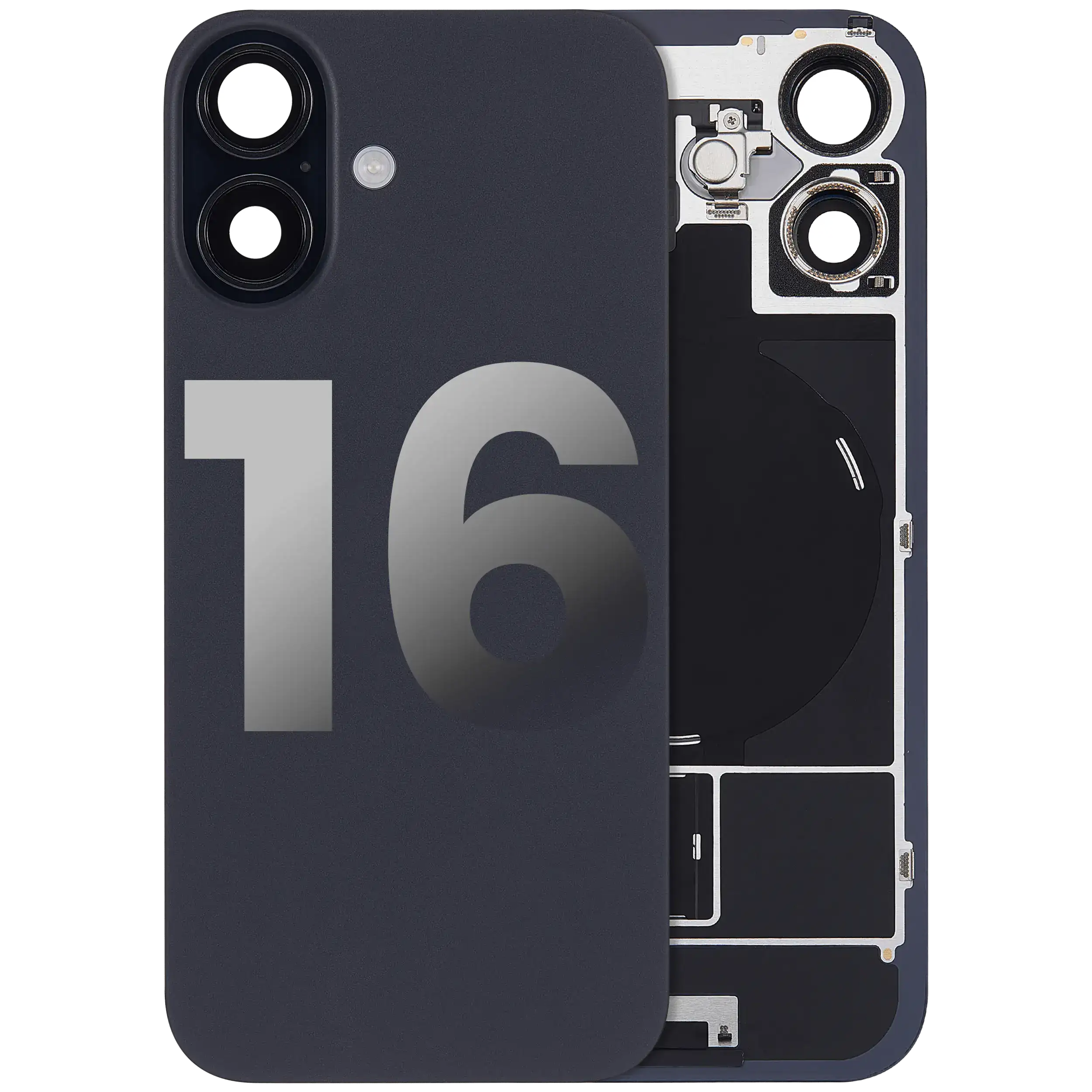 Back Glass With Steel Plate With Wireless NFC Charging MagSafe Magnet & Flashlight Flex iPhone 16 (Used OEM Pull: Grade B) (Black)