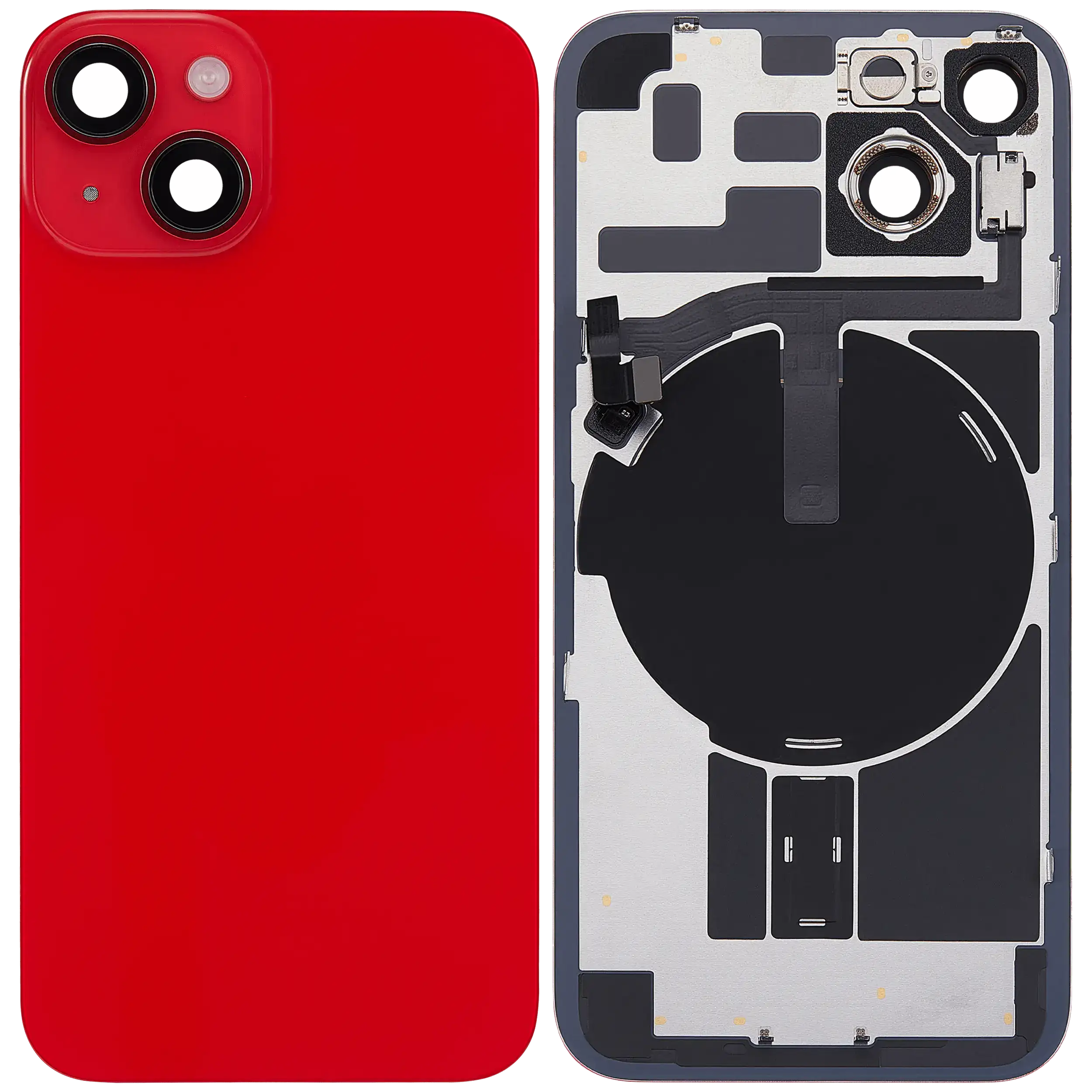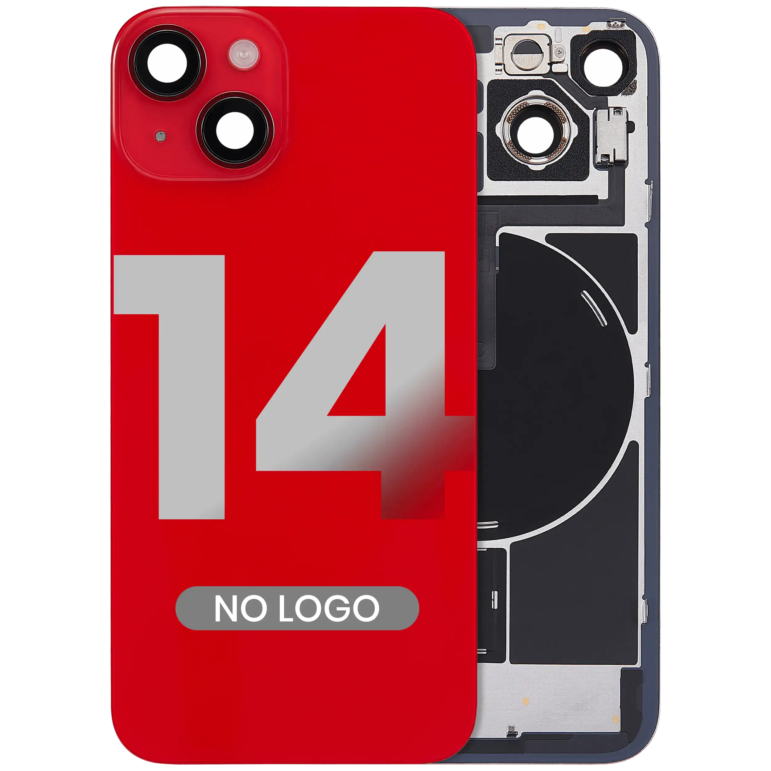 Back Glass With Steel Plate With Wireless NFC & MagSafe Magnet Pre-Installed iPhone 14 (No Logo) (Red)