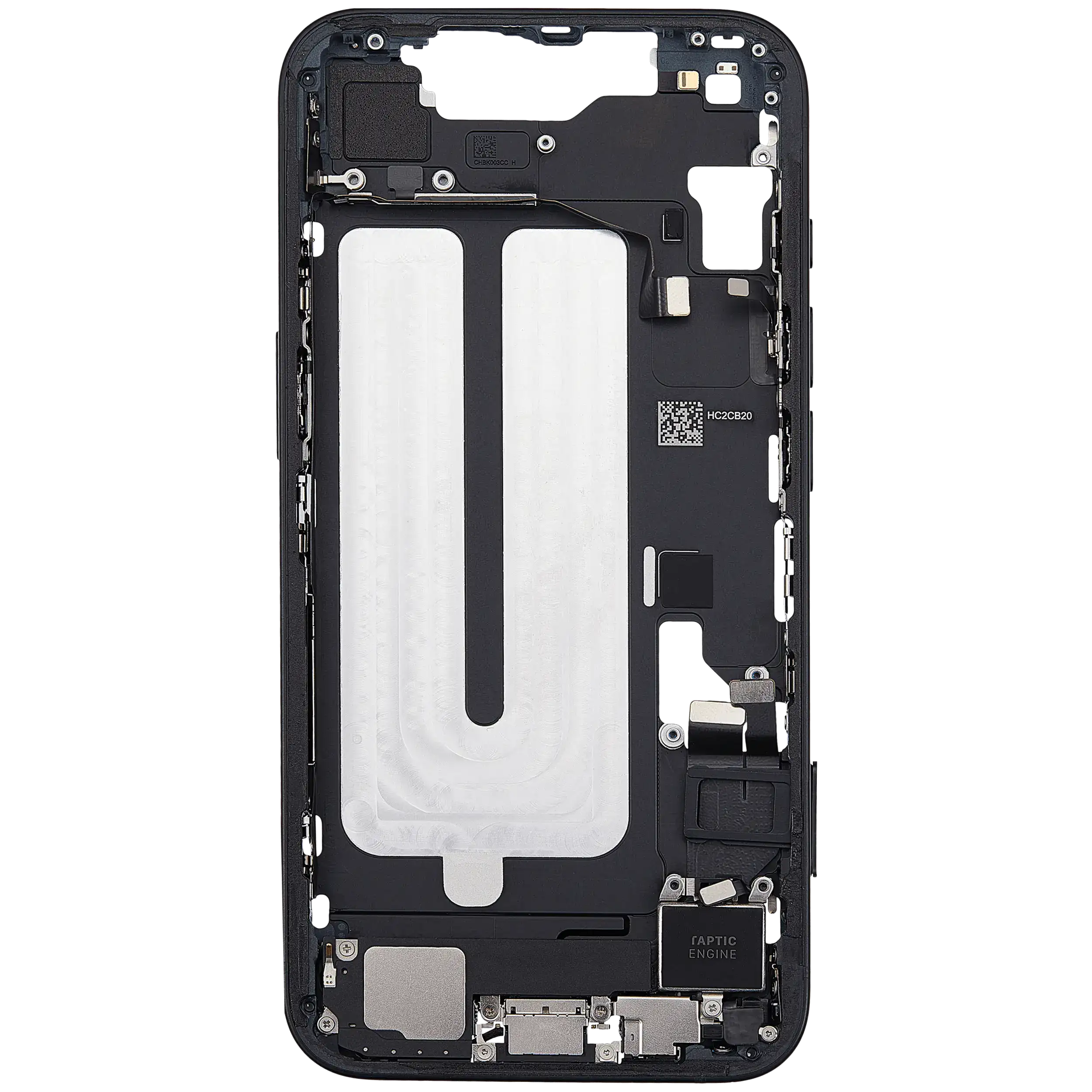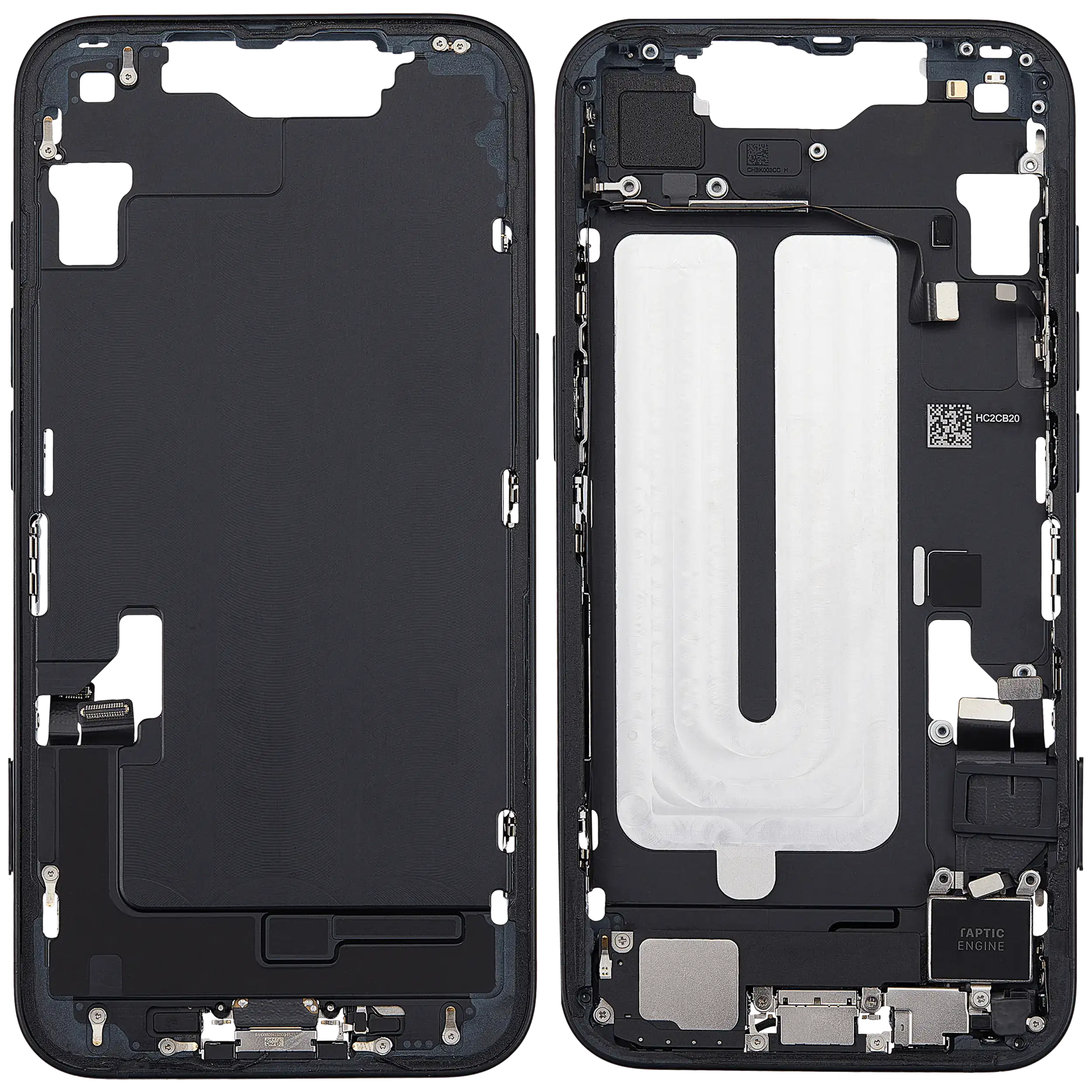Mid-Frame Housing W/ Small Parts For iPhone 16e (EU / Global Version) (Used OEM Pull: Grade A) (Black)
