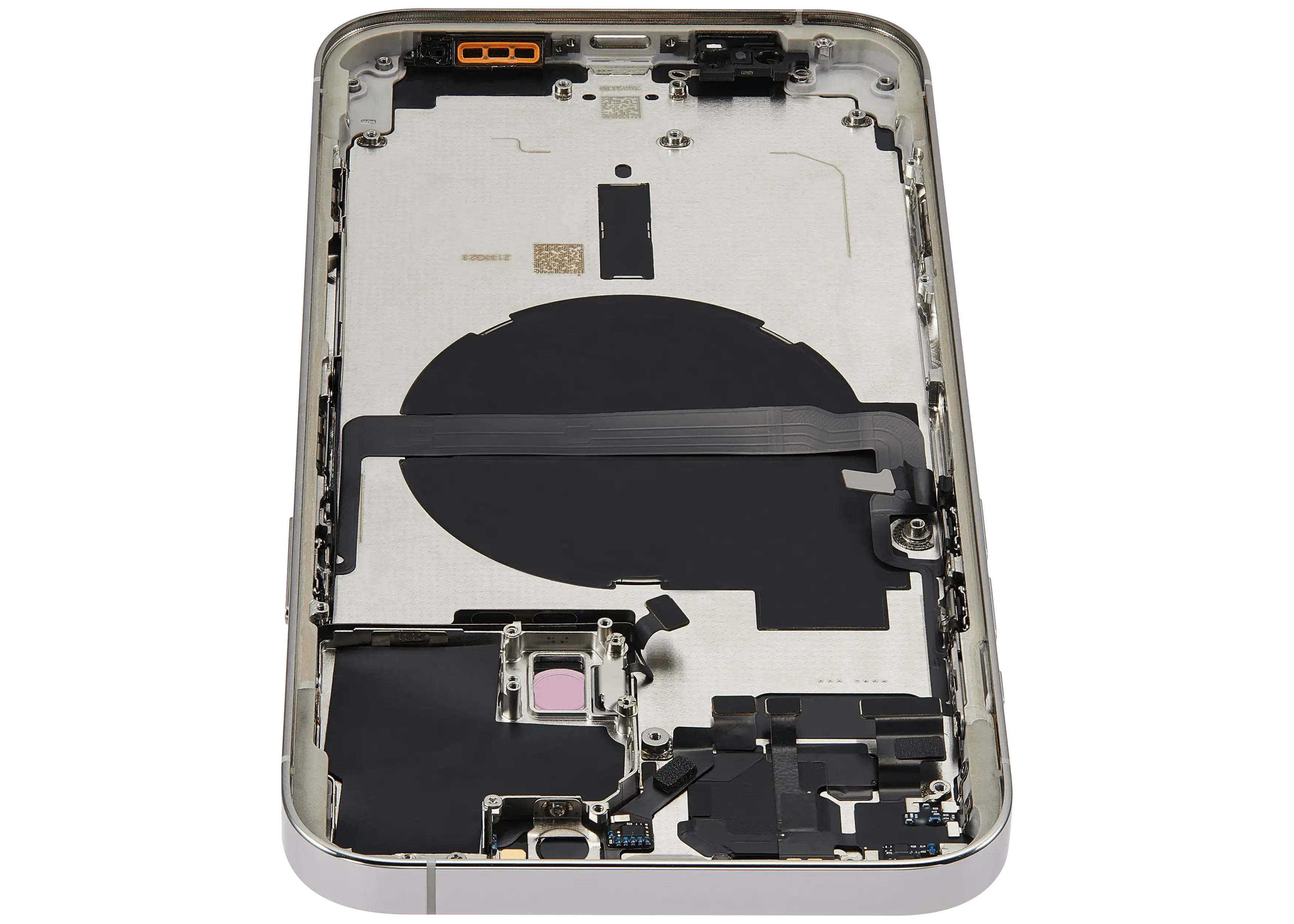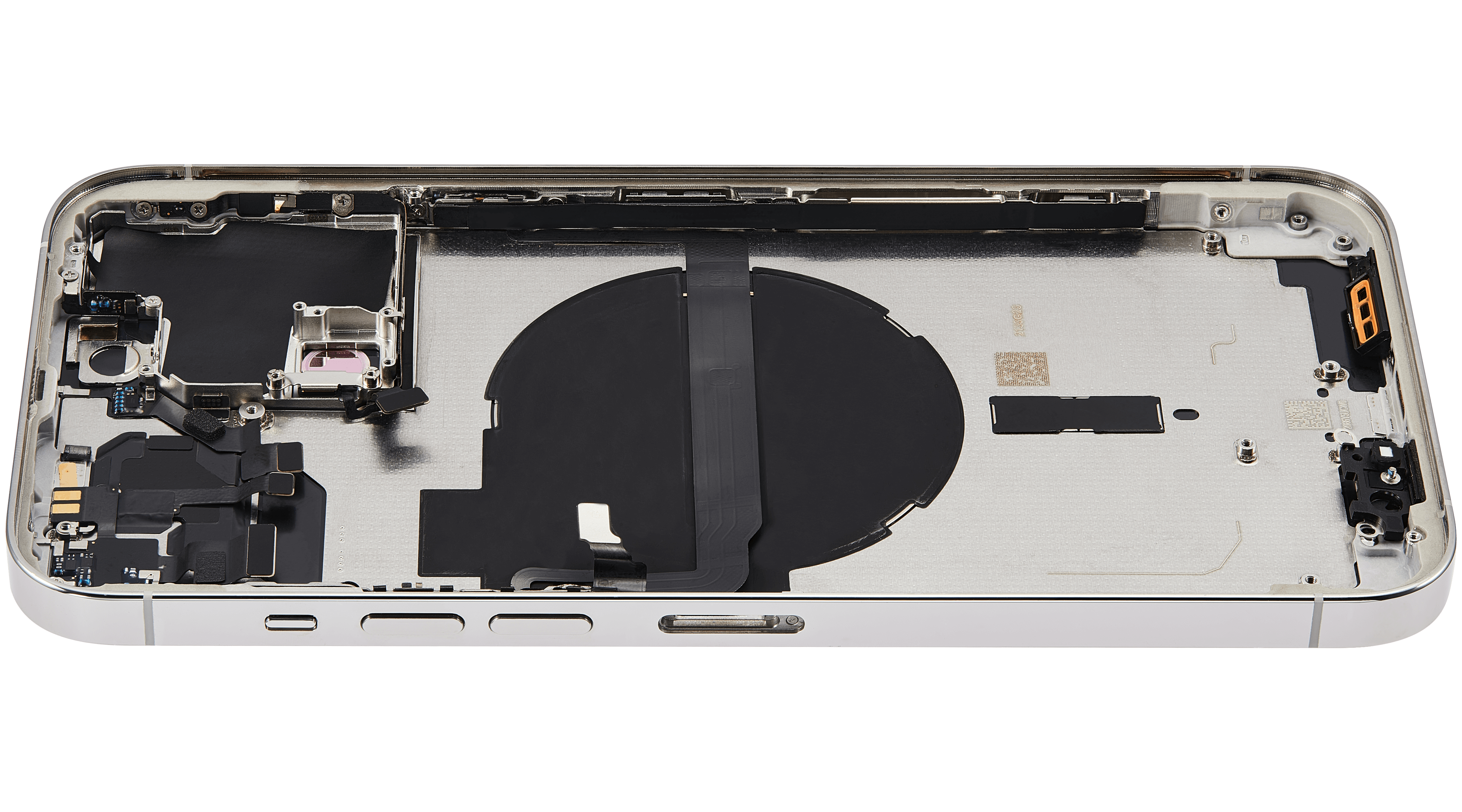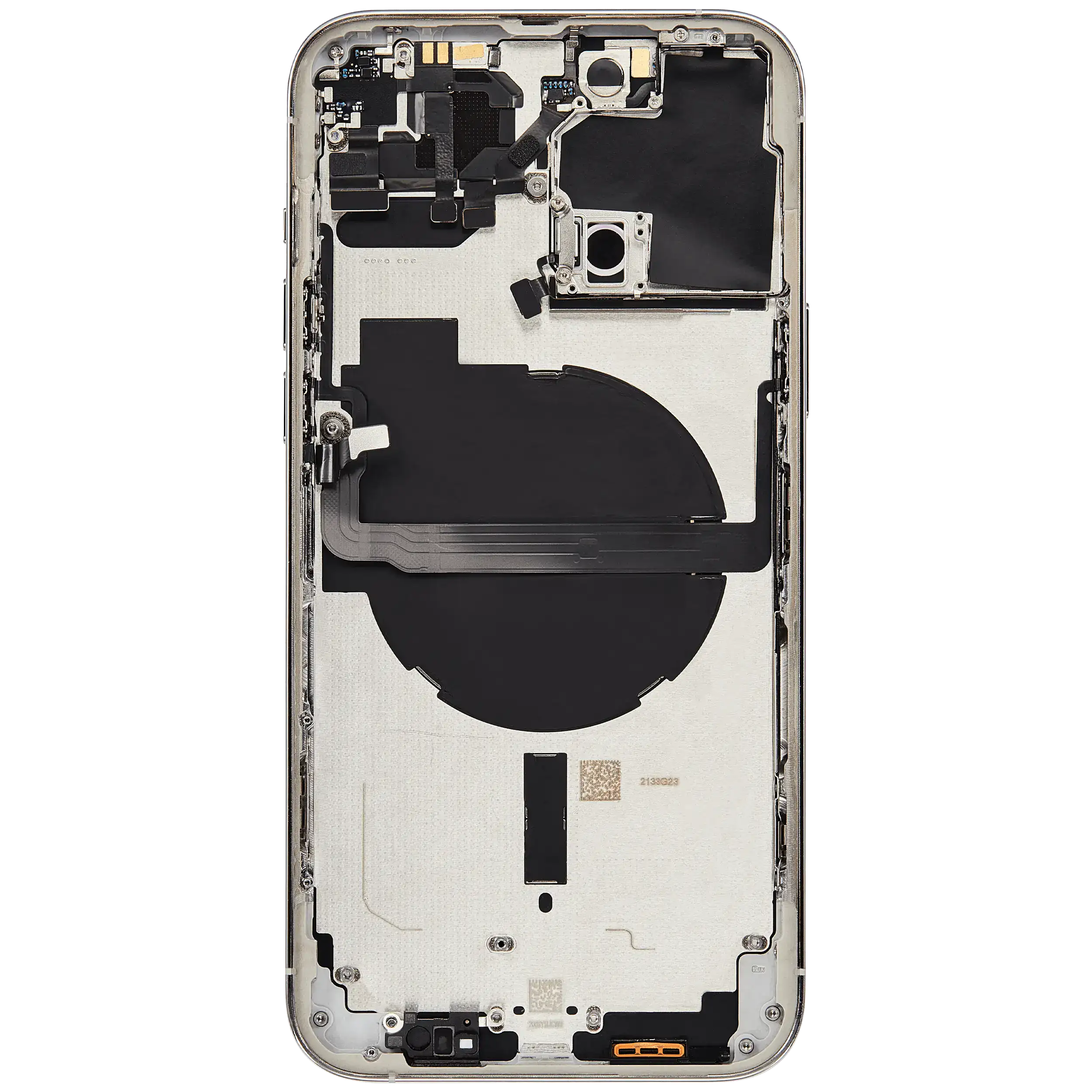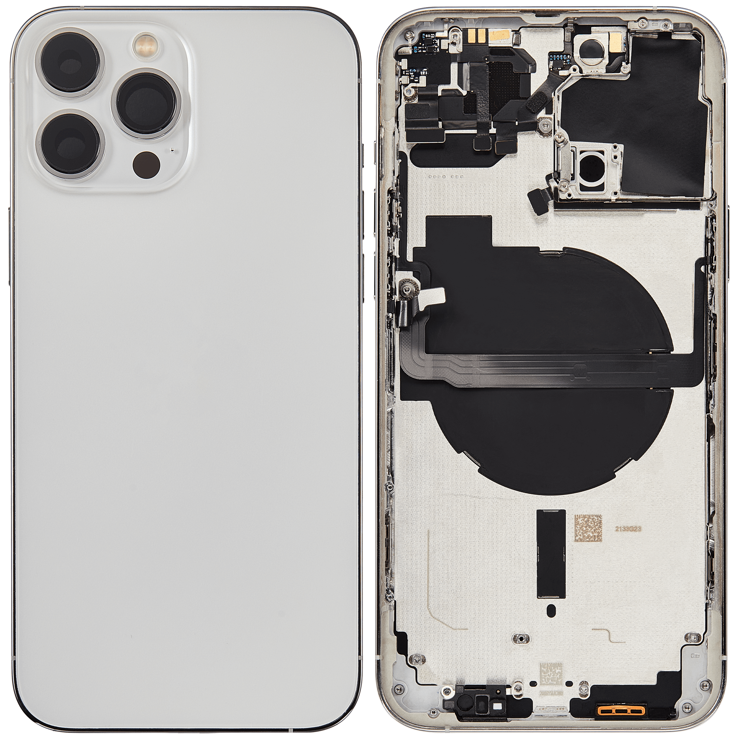 • Superb quality Back Housing W/ Small Components Pre-Installed for iPhone 13 Pro Max (International Version) (Used OEM Pull: Grade C) (Silver).