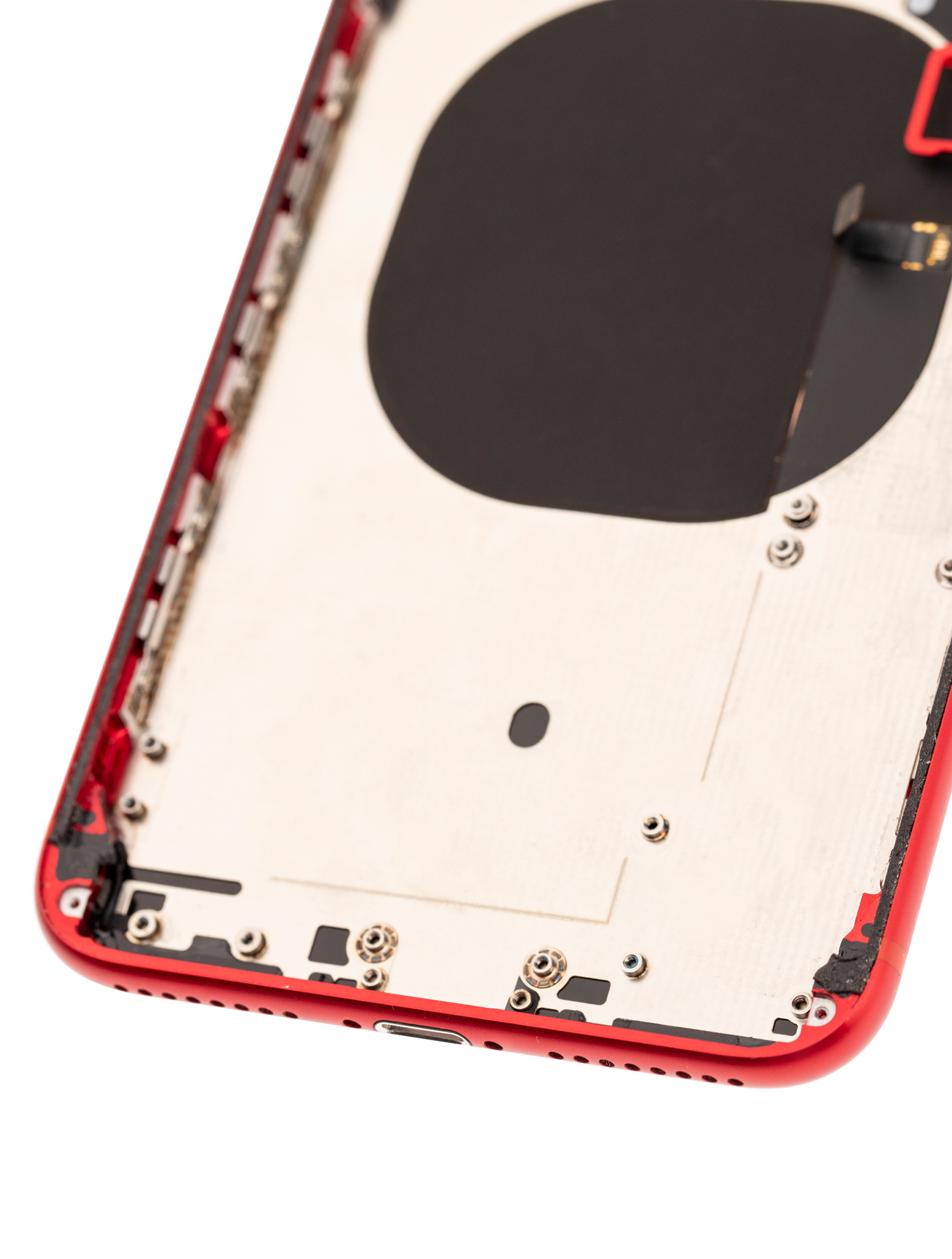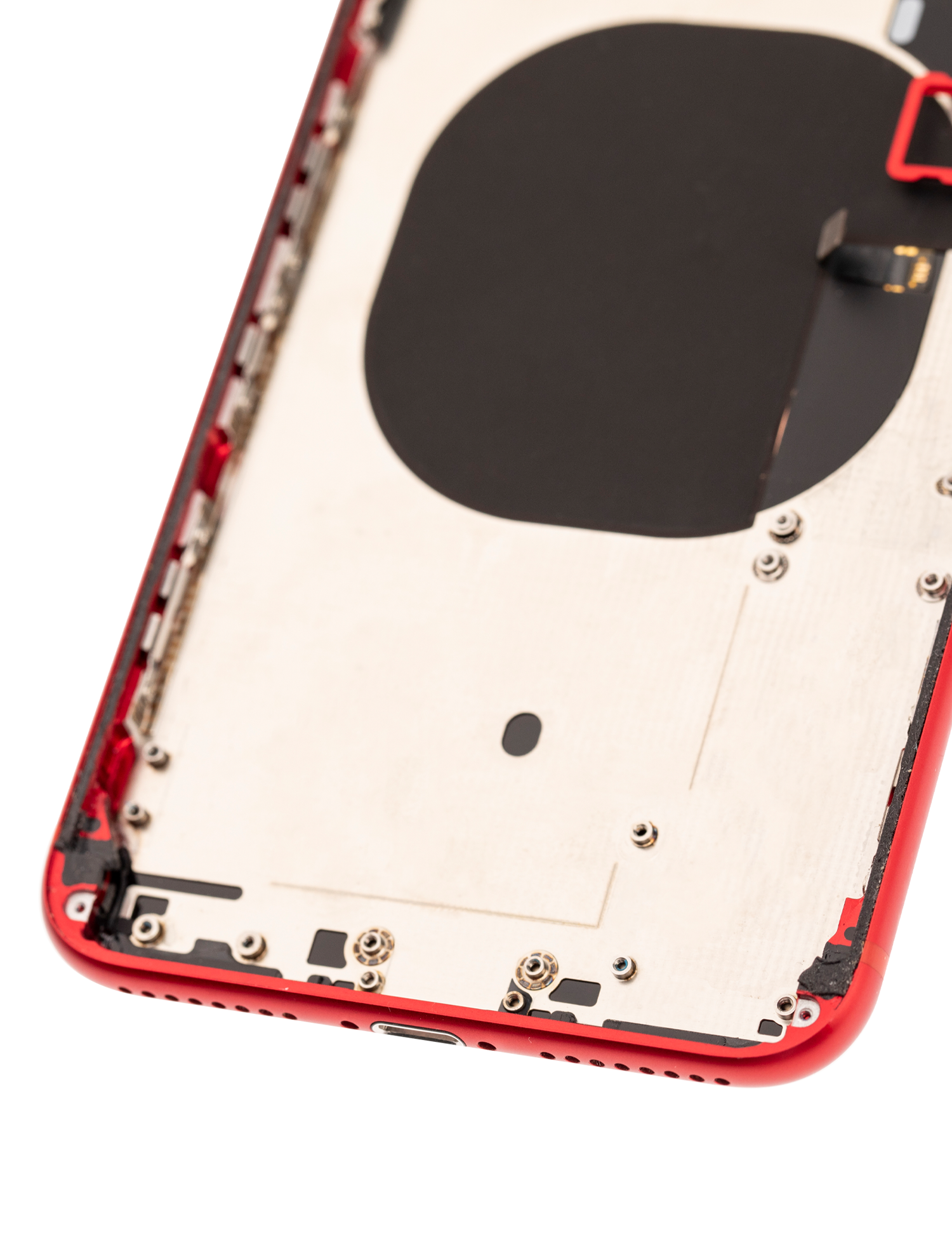 • Used OEM Pull Back Housing W/ Small Pre-Installed Compatible For iPhone 8 Plus (Used OEM Pull, Cosmetic Grade: A) (Red).