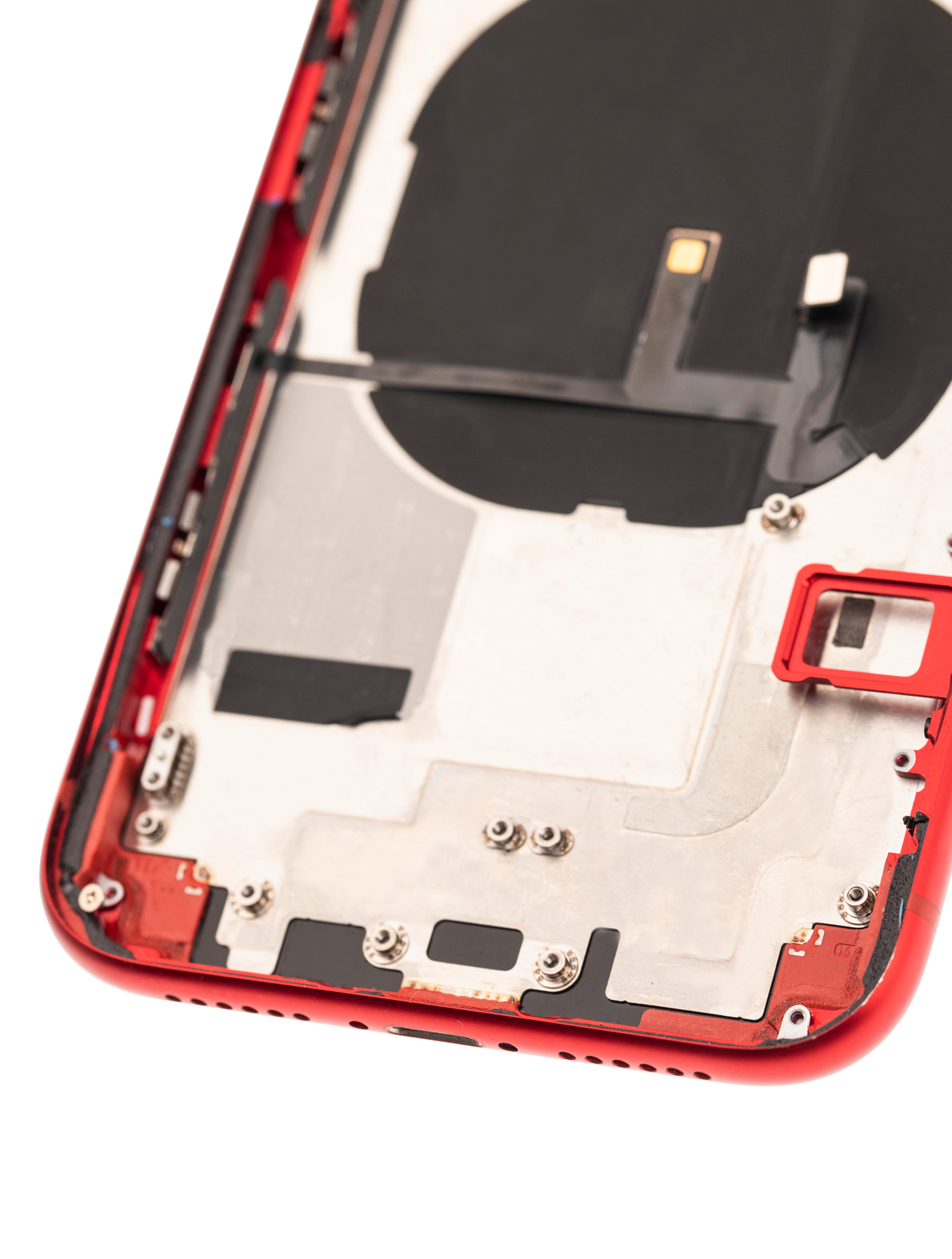 • Used OEM Pull Back Housing W/ Small Pre-Installed Compatible For iPhone XR (Cosmetic Grade: A) (with Logo) (Red).