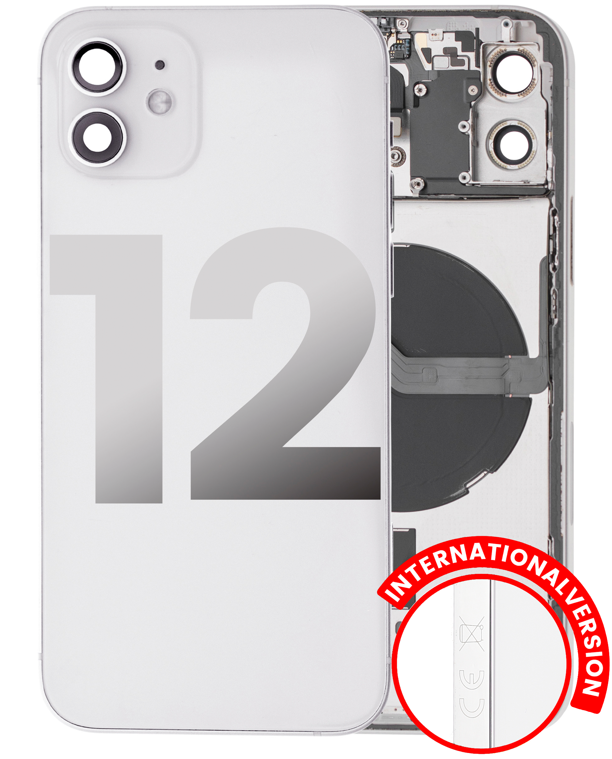 • Superb quality Back Housing W/ Small Components Pre-Installed for iPhone 12 (International Version) (Used OEM Pull: Grade B) (White).