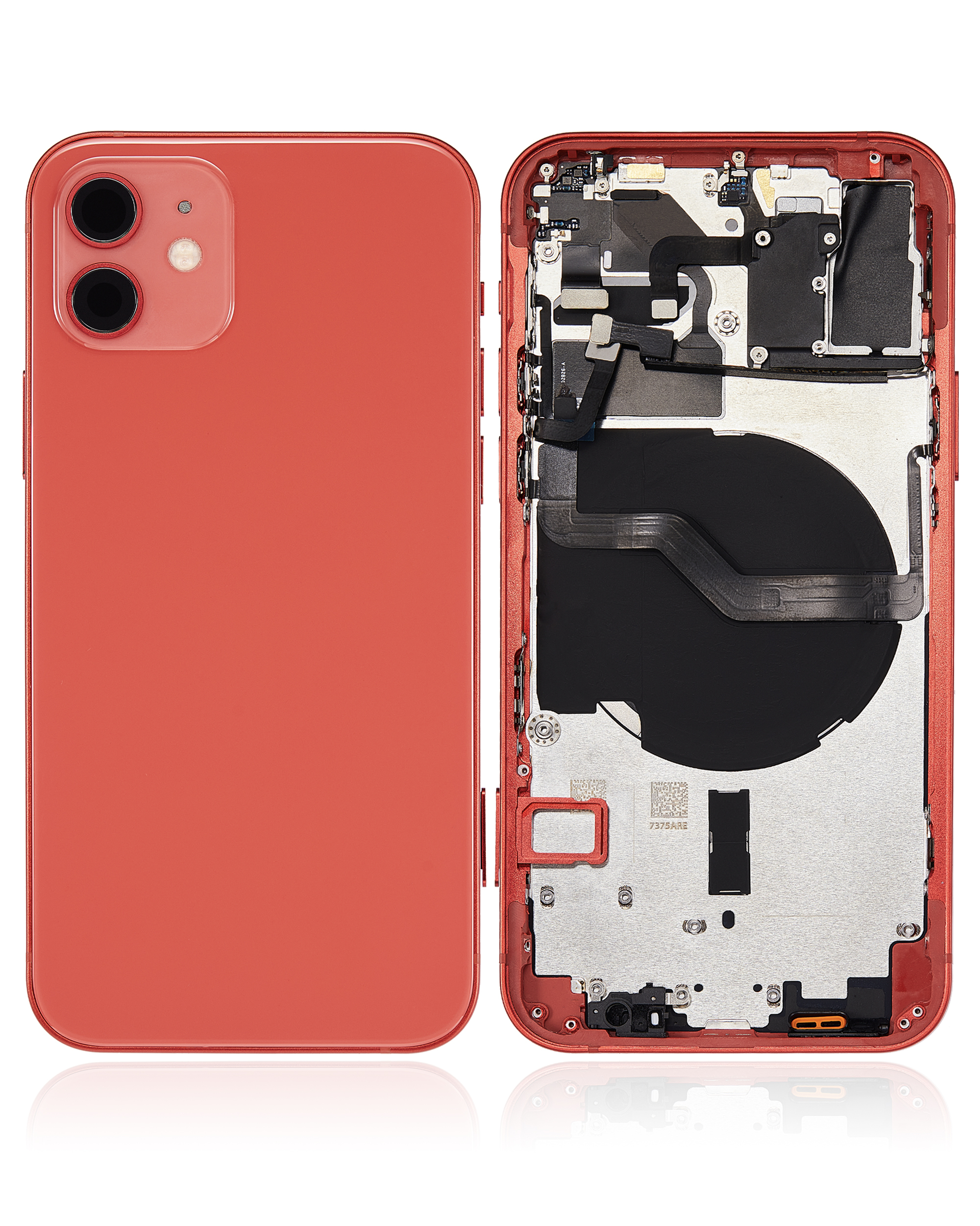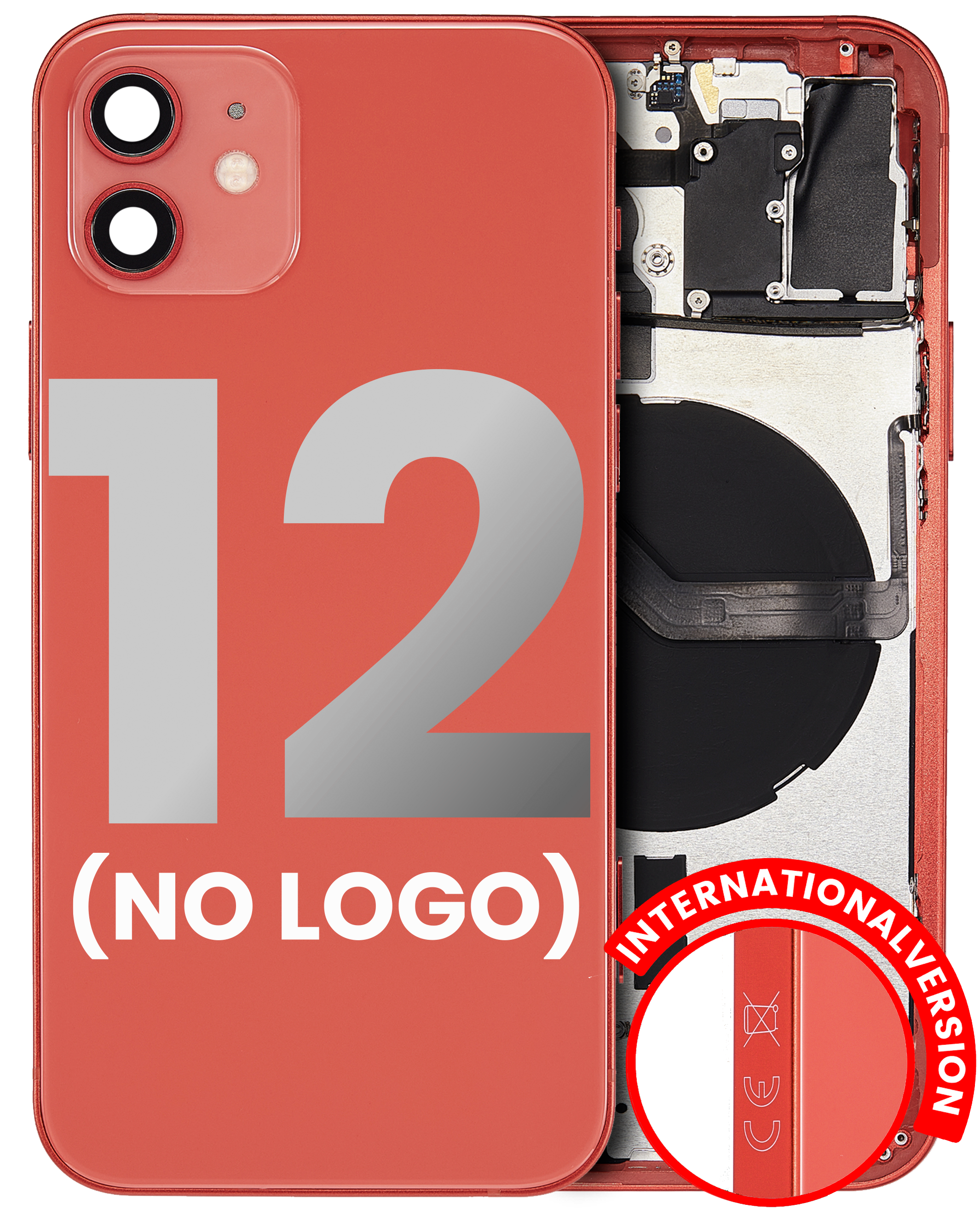 • Aftermarket plus quality Back Housing W/ Small Pre-Installed for iPhone 12 (No Logo) (International Version) (Red).