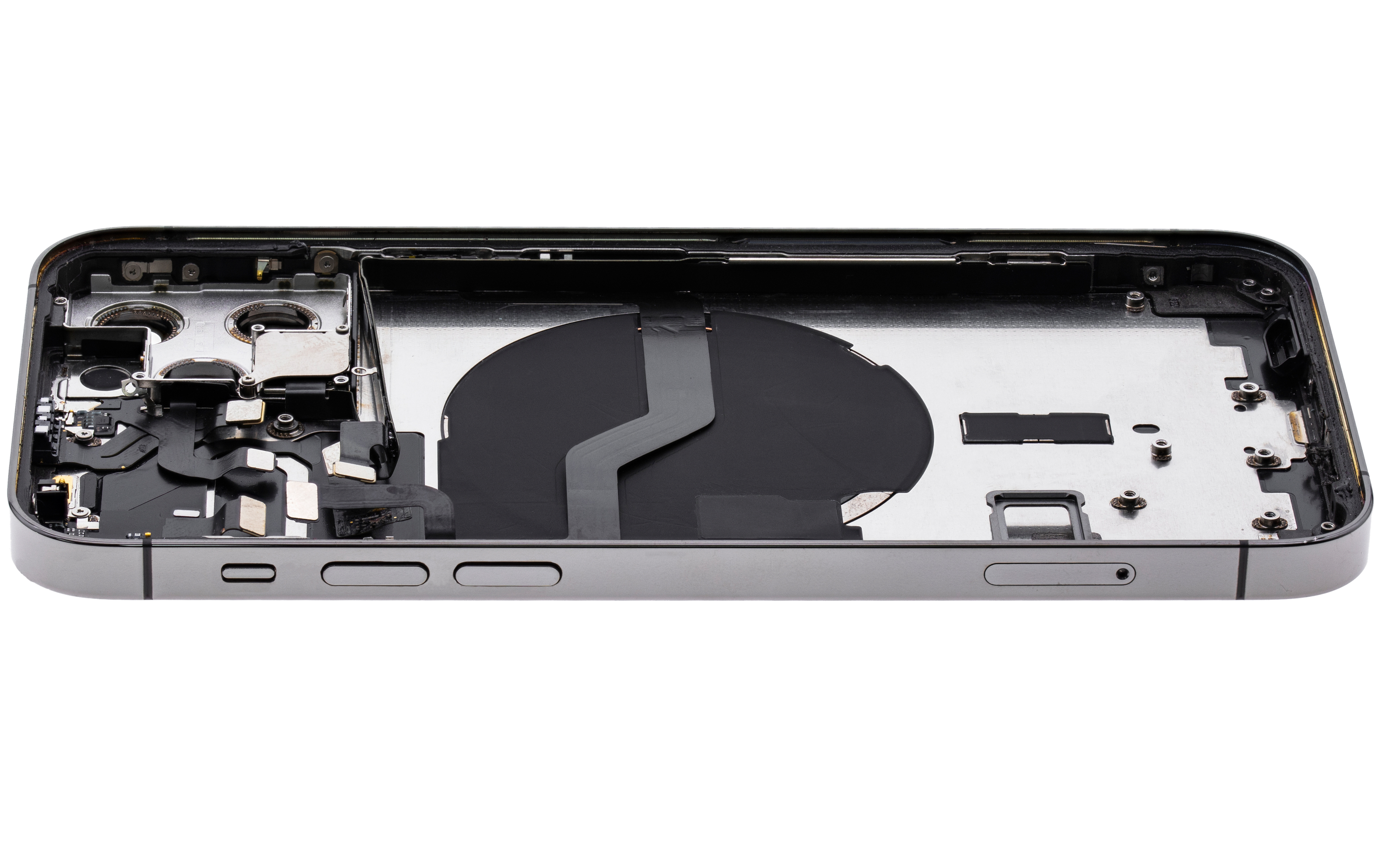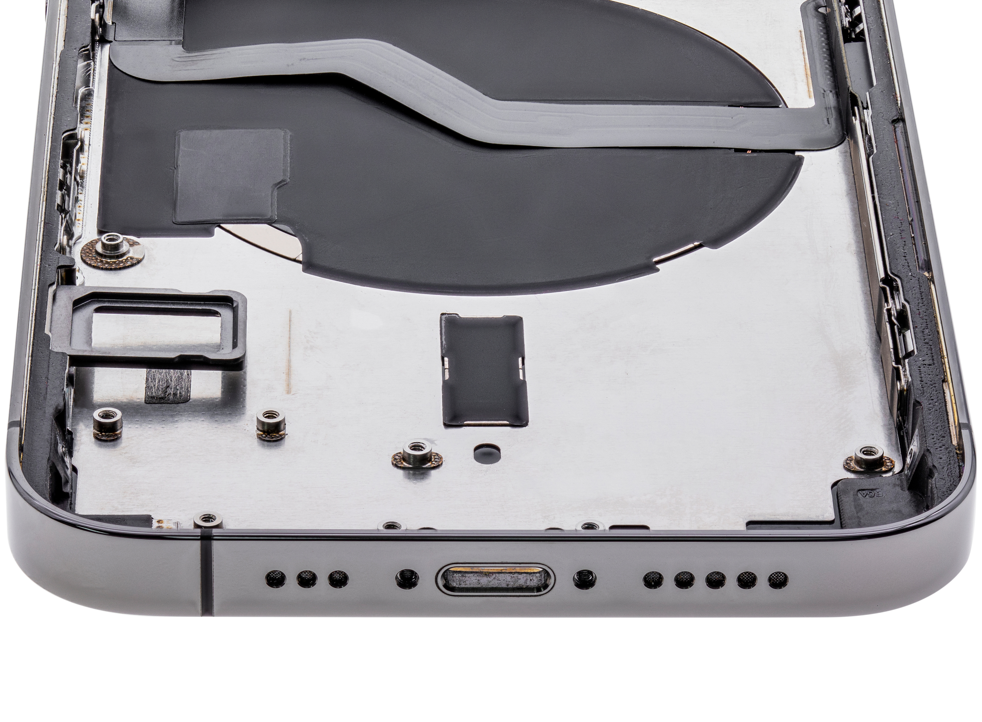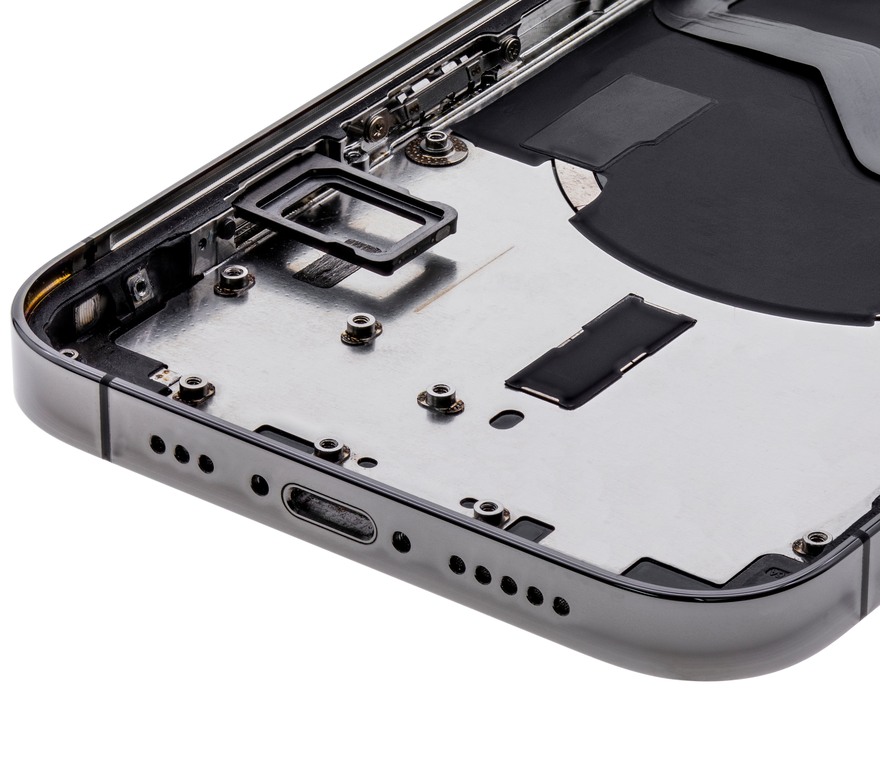• Used OEM Pull Back Housing W/ Small Pre-Installed Compatible For iPhone 12 Pro (US Version) (Cosmetic Grade: B) (Graphite).