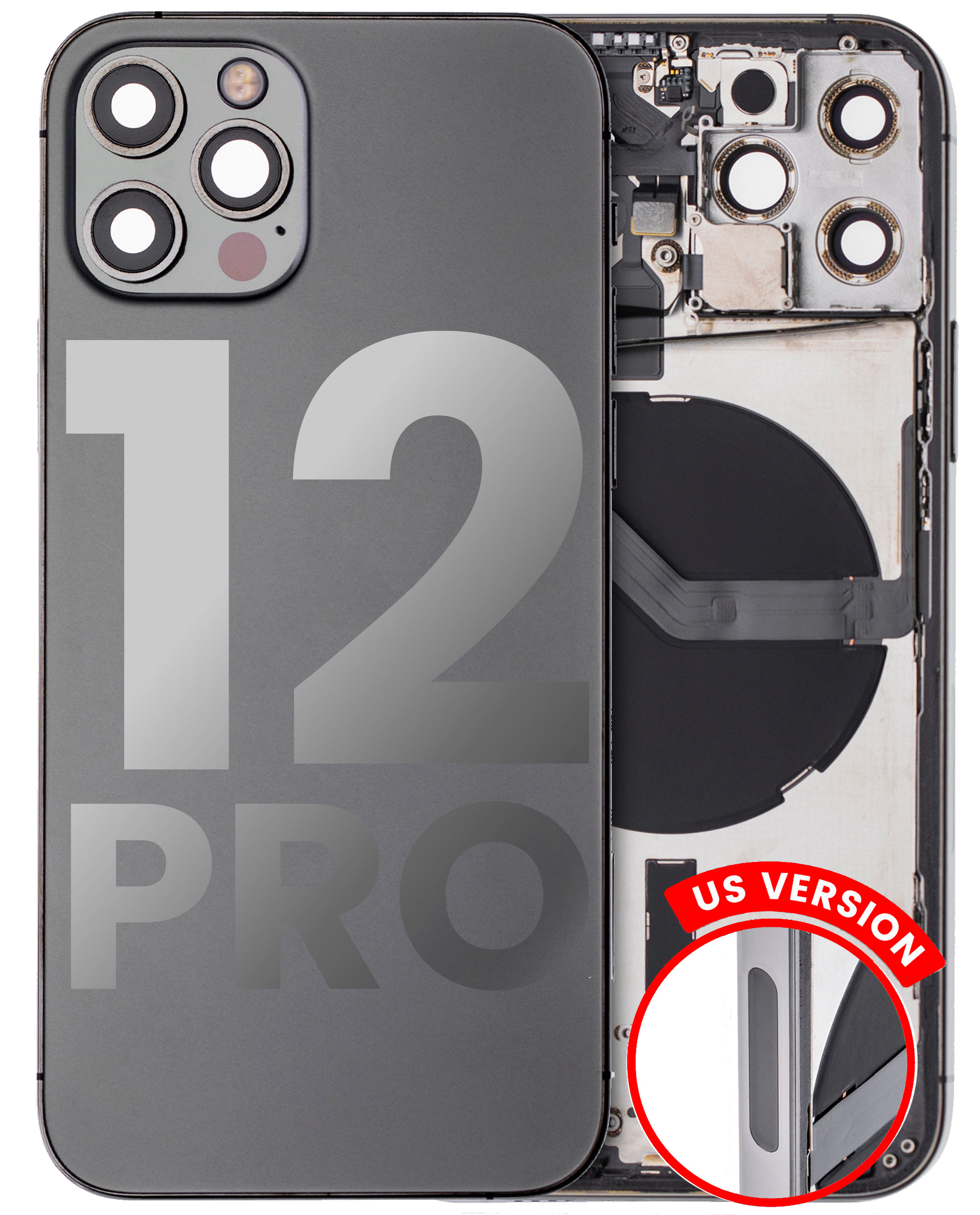 Back Housing W/ Small Parts For iPhone 12 Pro (US Version) (Used OEM Pull: Grade B) (Graphite)