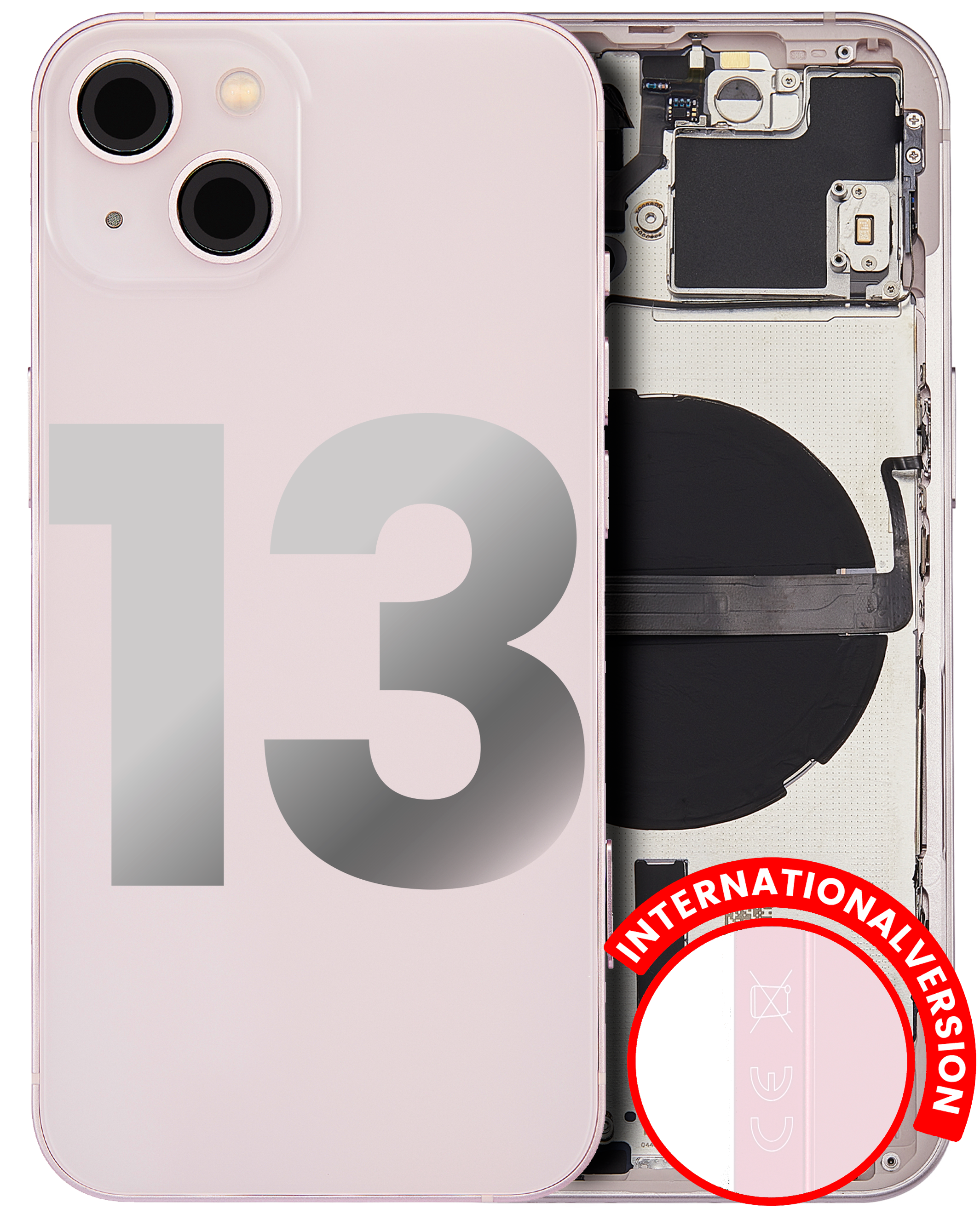 • Superb quality Back Housing W/ Small Components Pre-Installed for iPhone 13 (International Version) (Used OEM Pull: Grade B) (Pink).