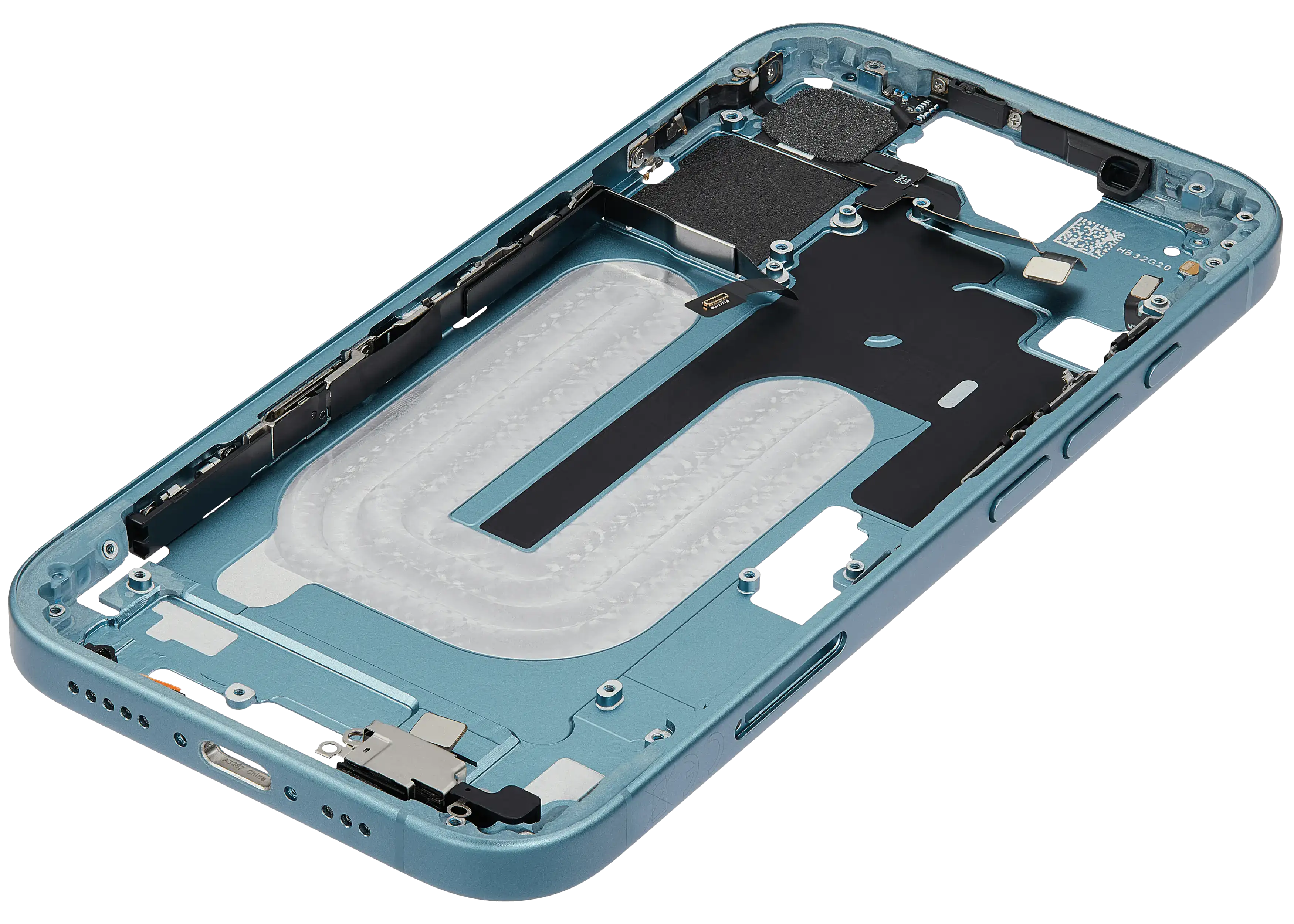 Mid-Frame Housing W/ Small Parts For iPhone 16 (EU / Global Version) (Used OEM Pull: Grade C) (Teal)