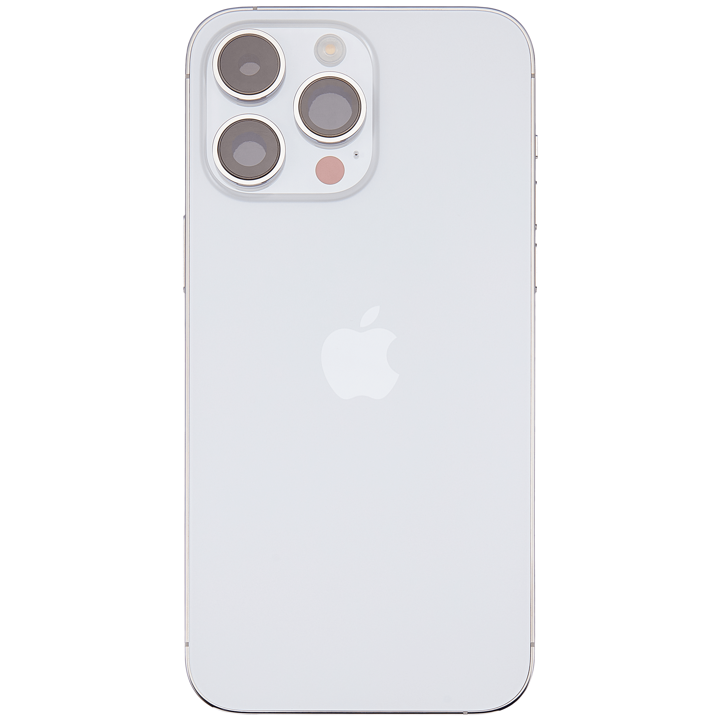 • High quality Back housing for iPhone 14 Pro Max w/ small components pre-installed (International Version) (Used OEM Pull: Grade A) (Silver).