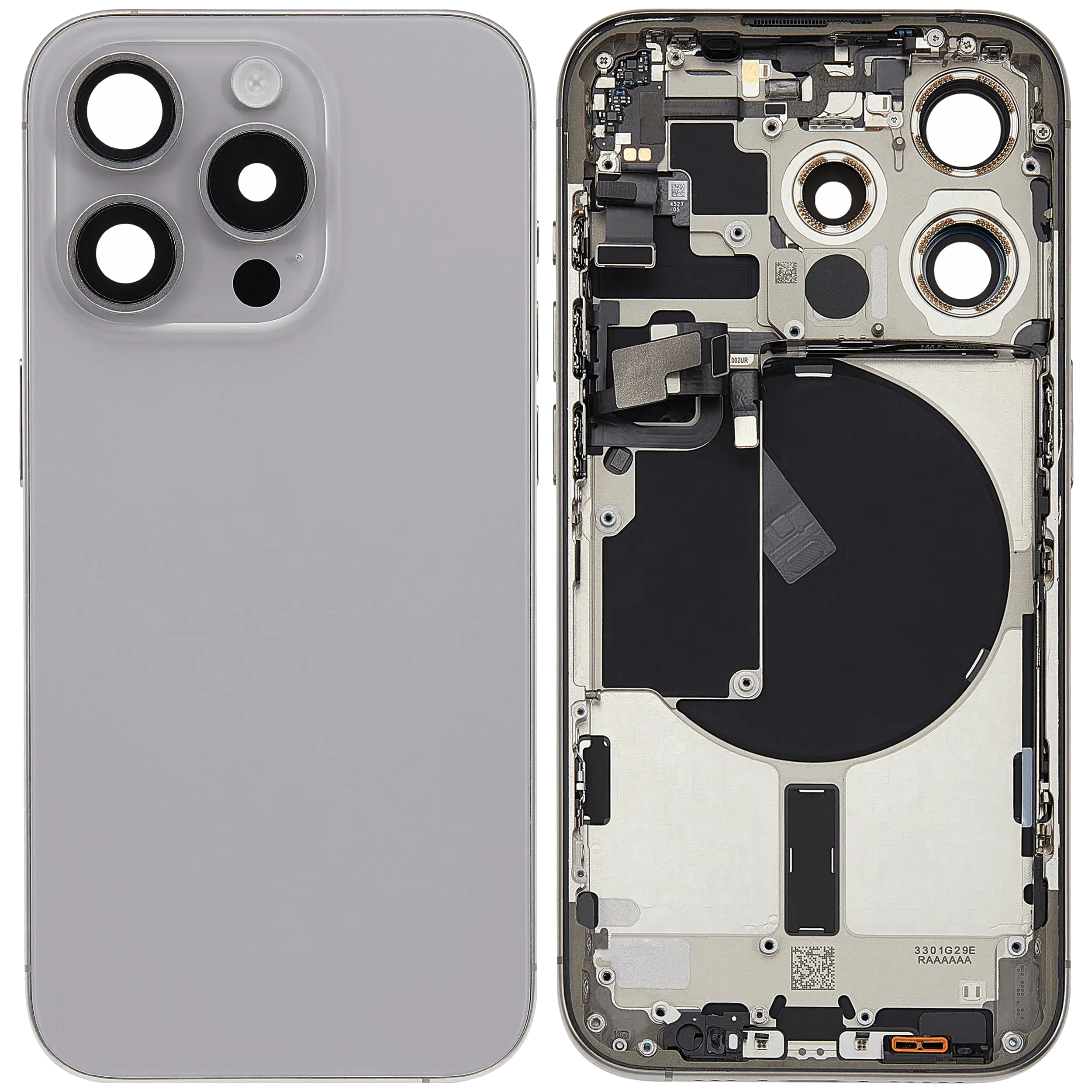 Back Housing W/ Small Parts For iPhone 15 Pro (EU / Global Version) (Used OEM Pull: Grade A) (Natural Titanium)