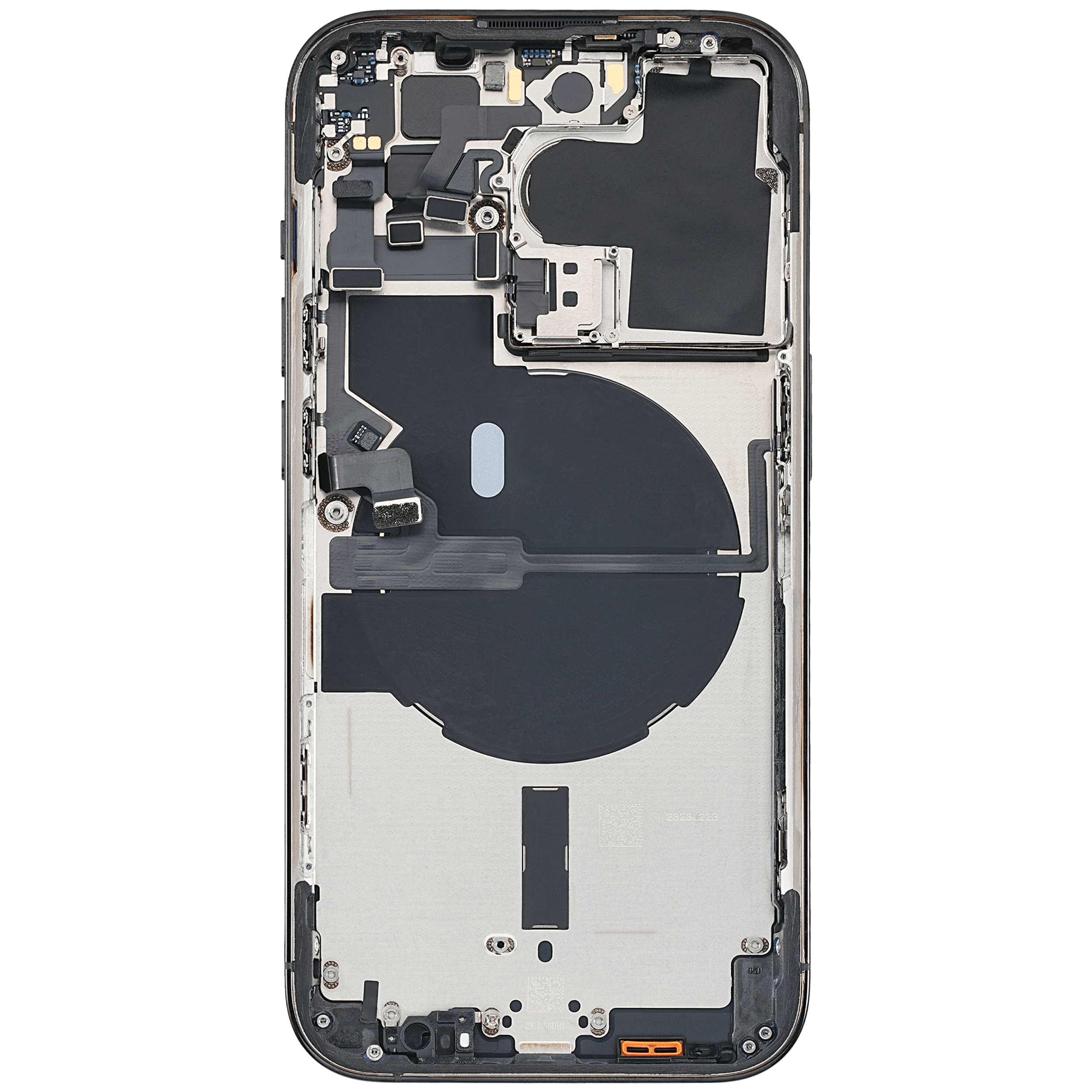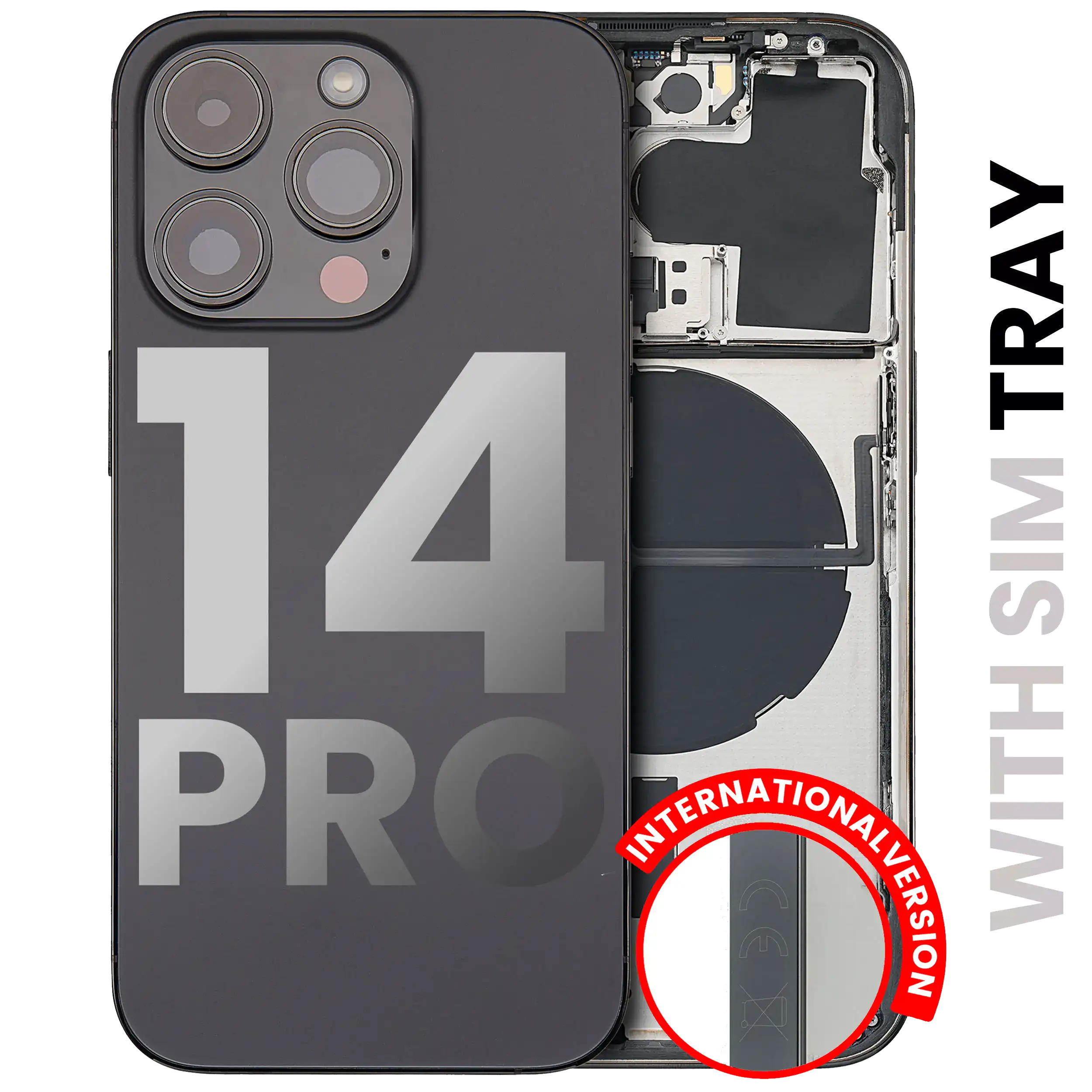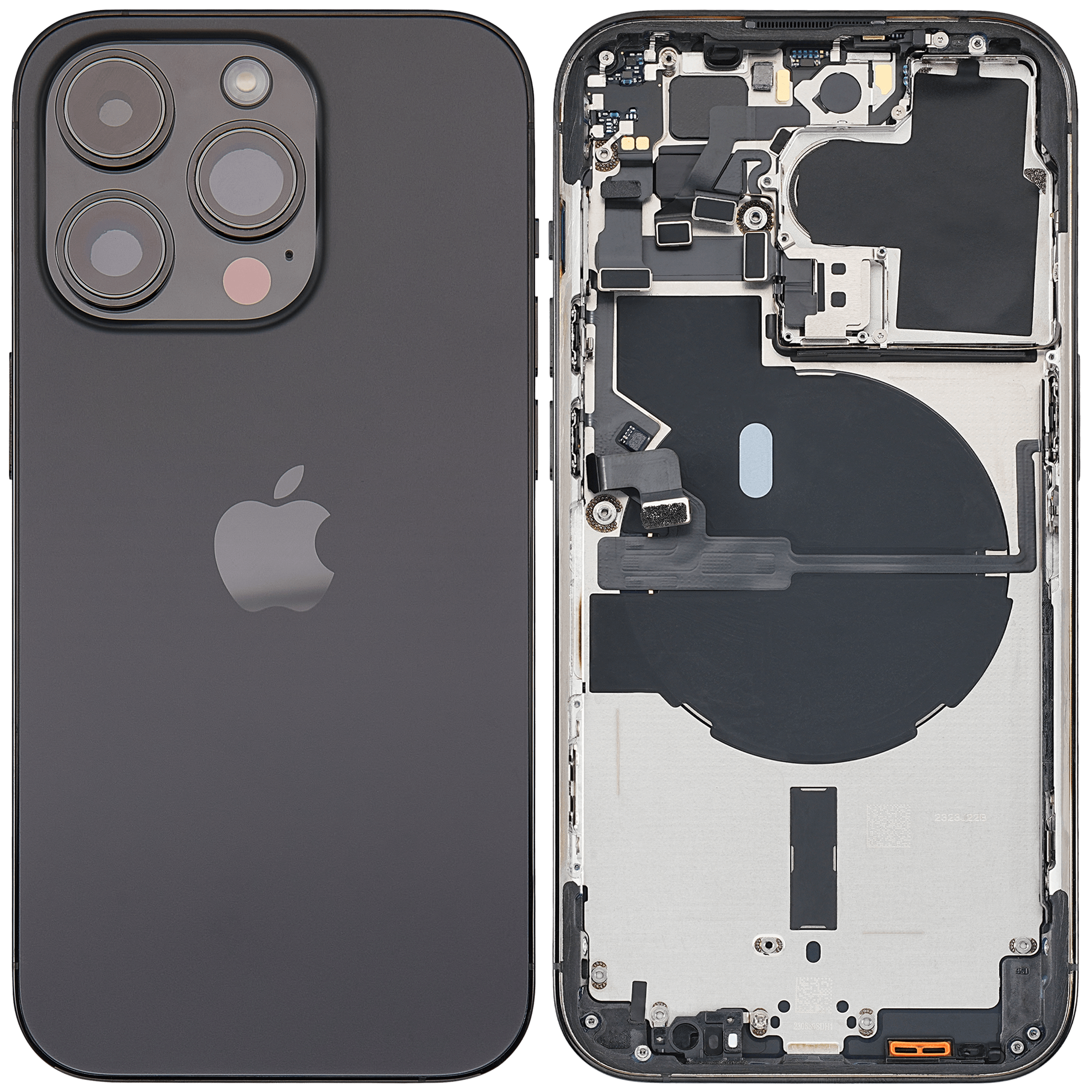 • High quality Back housing for iPhone 14 Pro w/ small components pre-installed (International Version) (Used OEM Pull: Grade A) (Space Black).