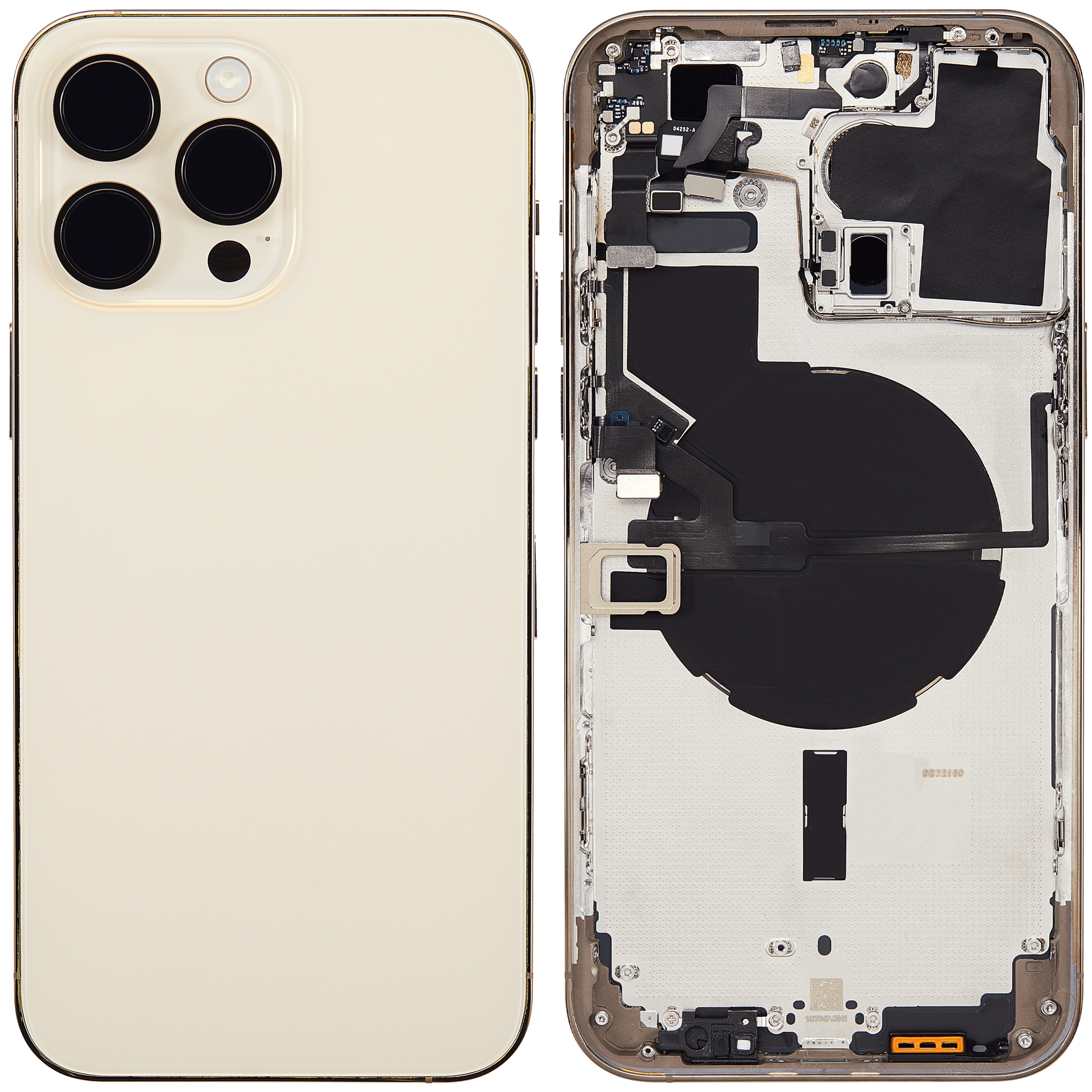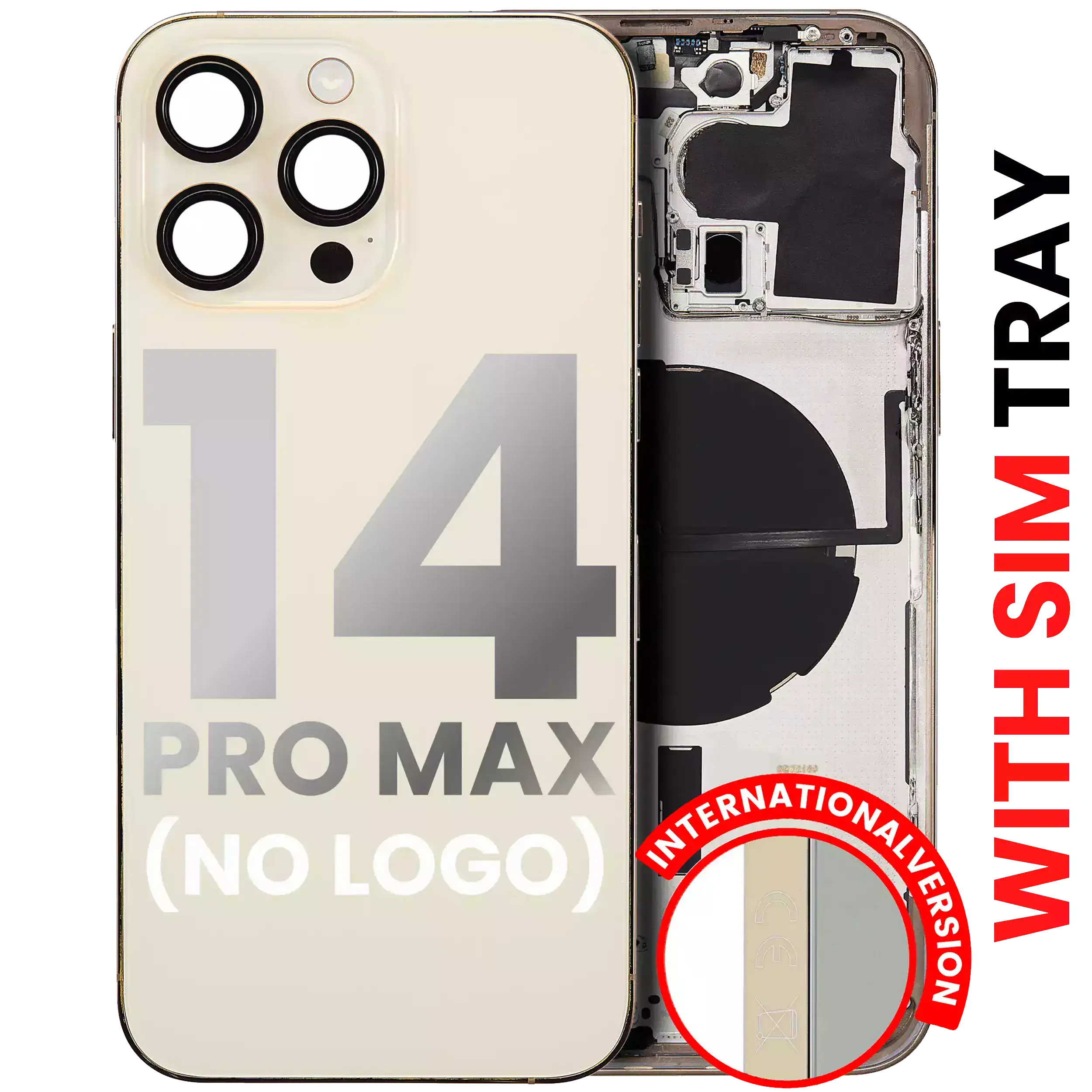 • High quality Back housing for iPhone 14 Pro Max w/ small components pre-installed (International Version) (No Logo) (Aftermarket Plus) (Gold).