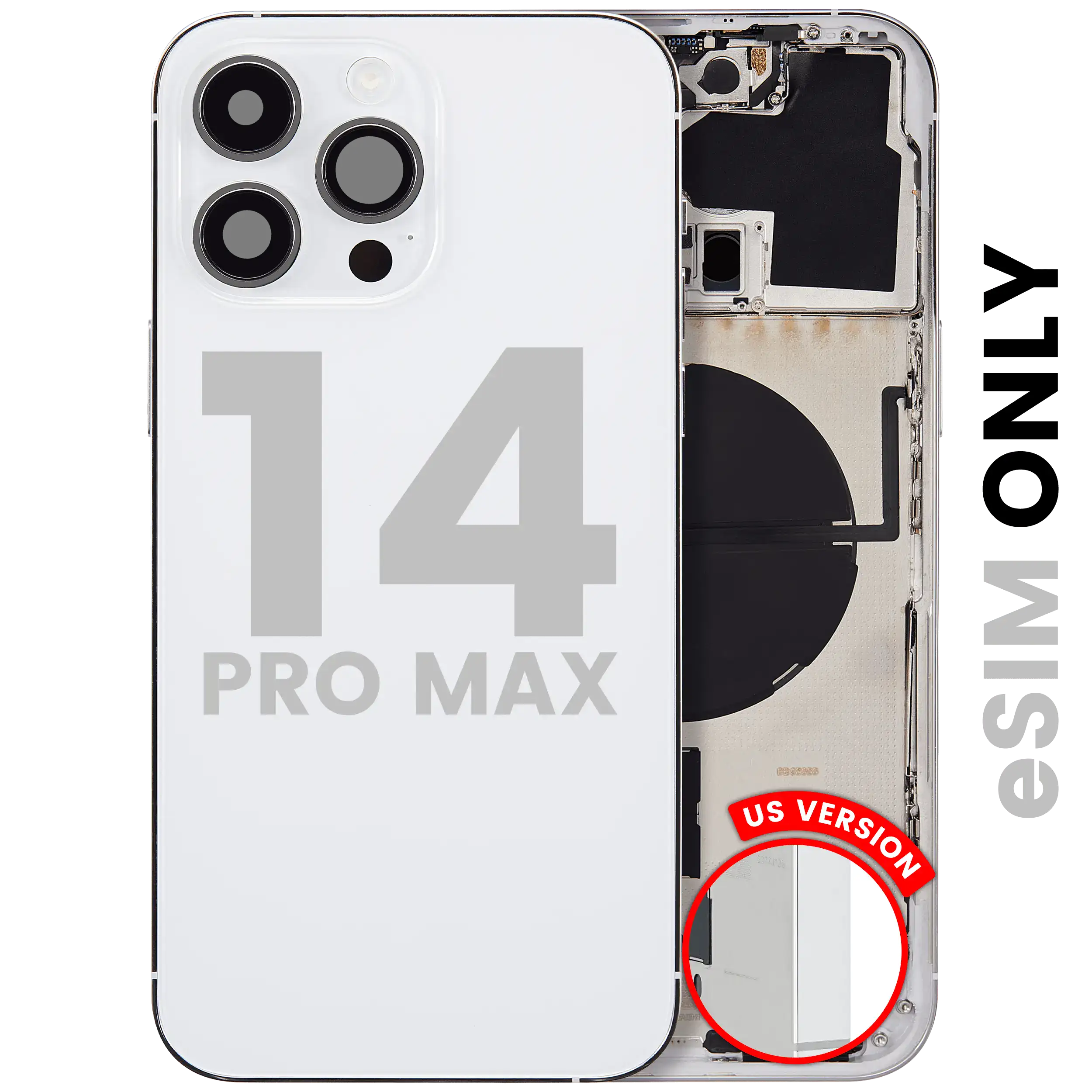 • Used OEM Pull Back Housing W/ Small Components Pre-Installed for iPhone 14 Pro Max (U.S Version) (Used OEM Pull: Grade A) (Silver).