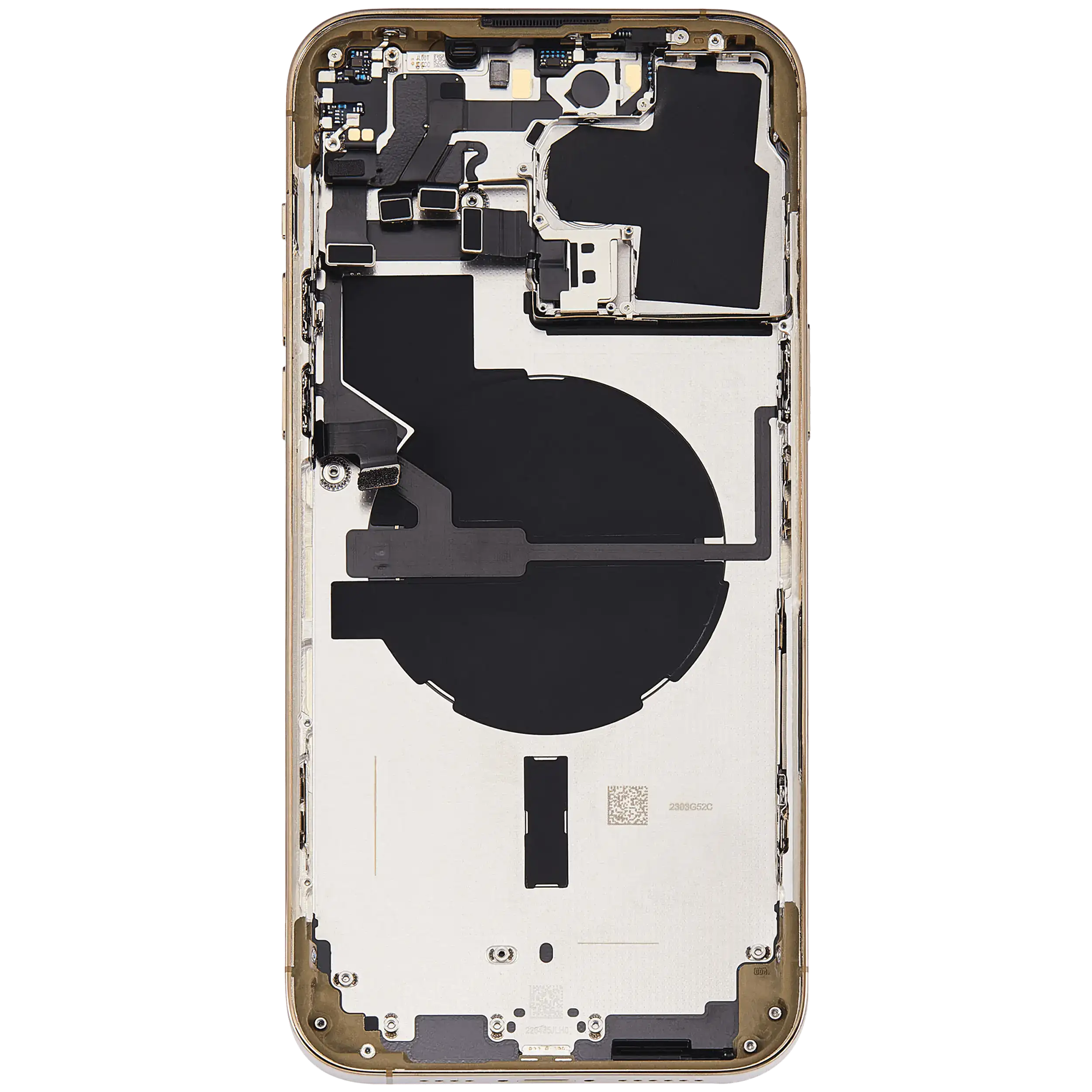 • High quality Back housing for iPhone 14 Pro Max w/ small components pre-installed (U.S Version) (Used OEM Pull: Grade C) (Gold).