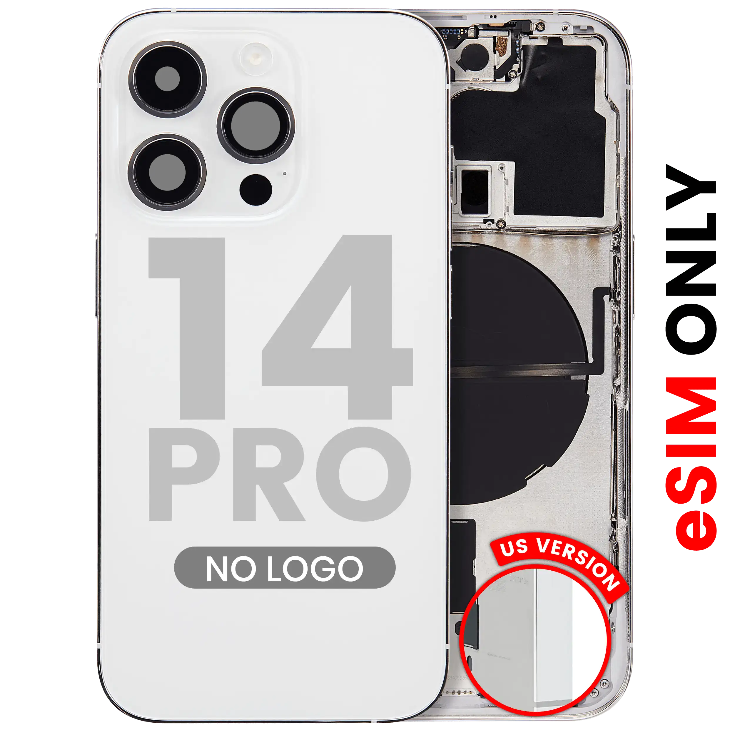 • High quality Back housing for iPhone 14 Pro w/ small components pre-installed (U.S Version) (No Logo) (Aftermarket Plus) (Silver).