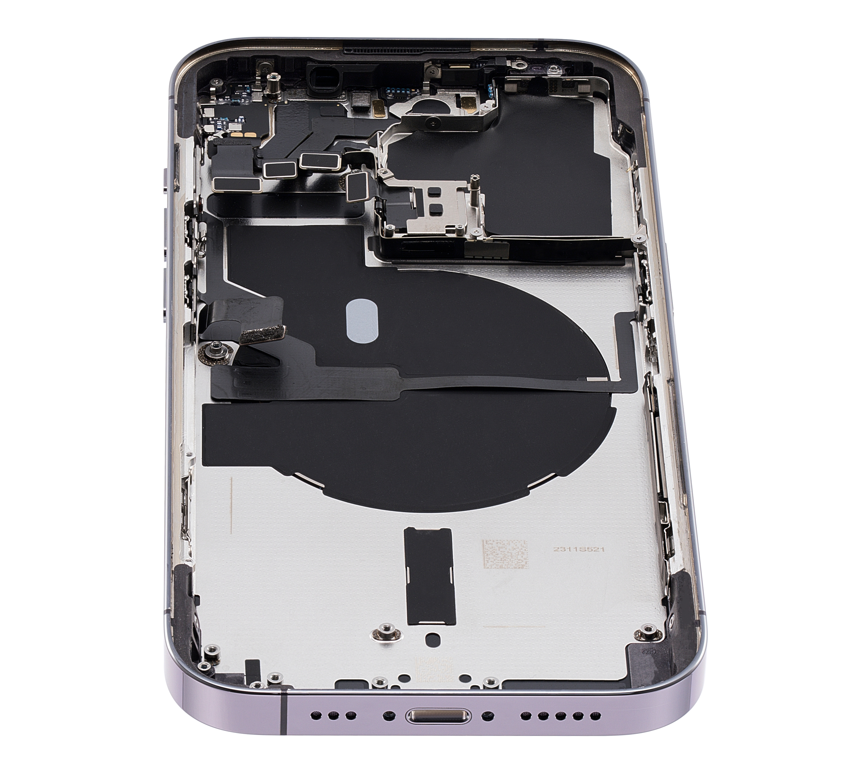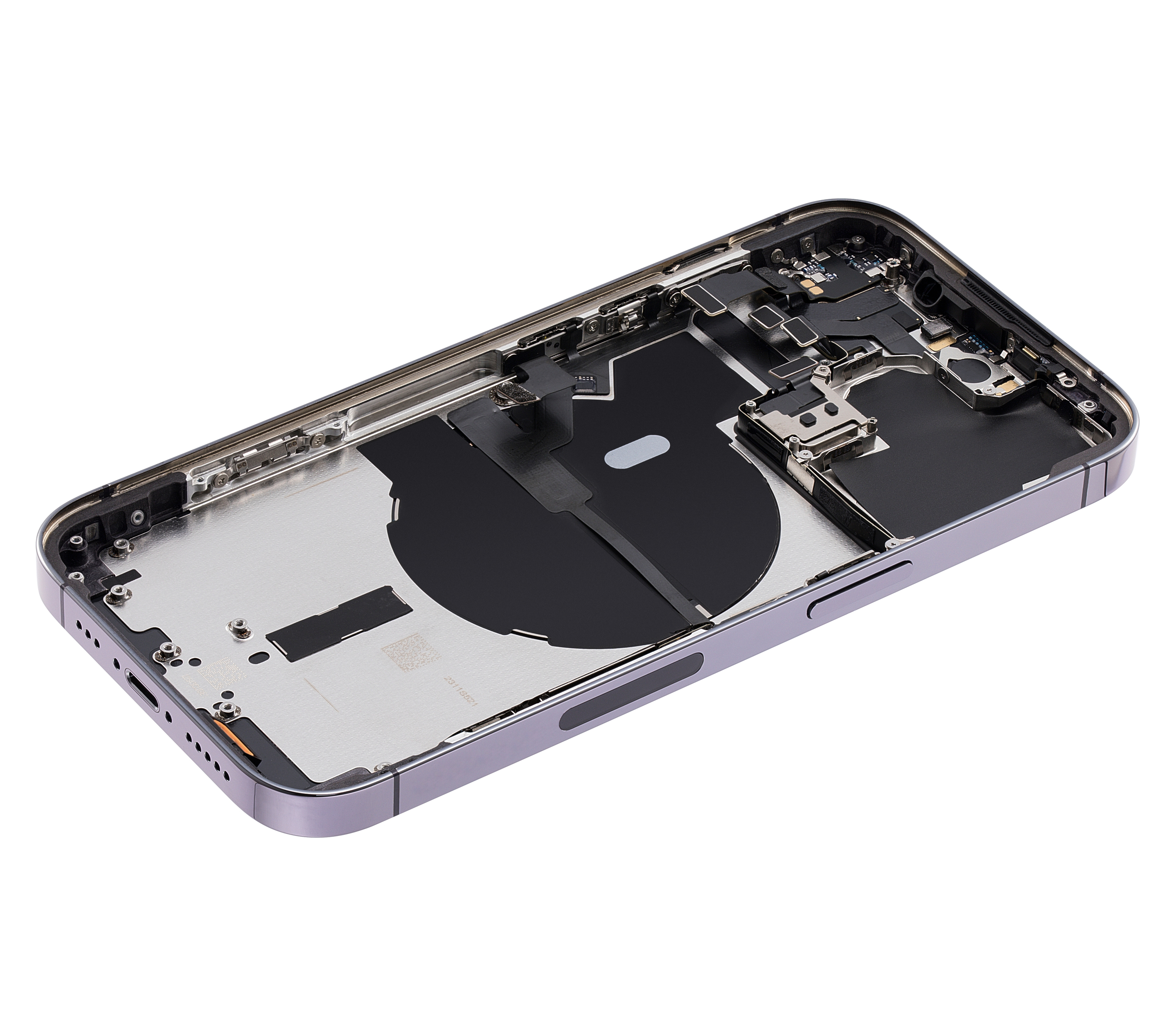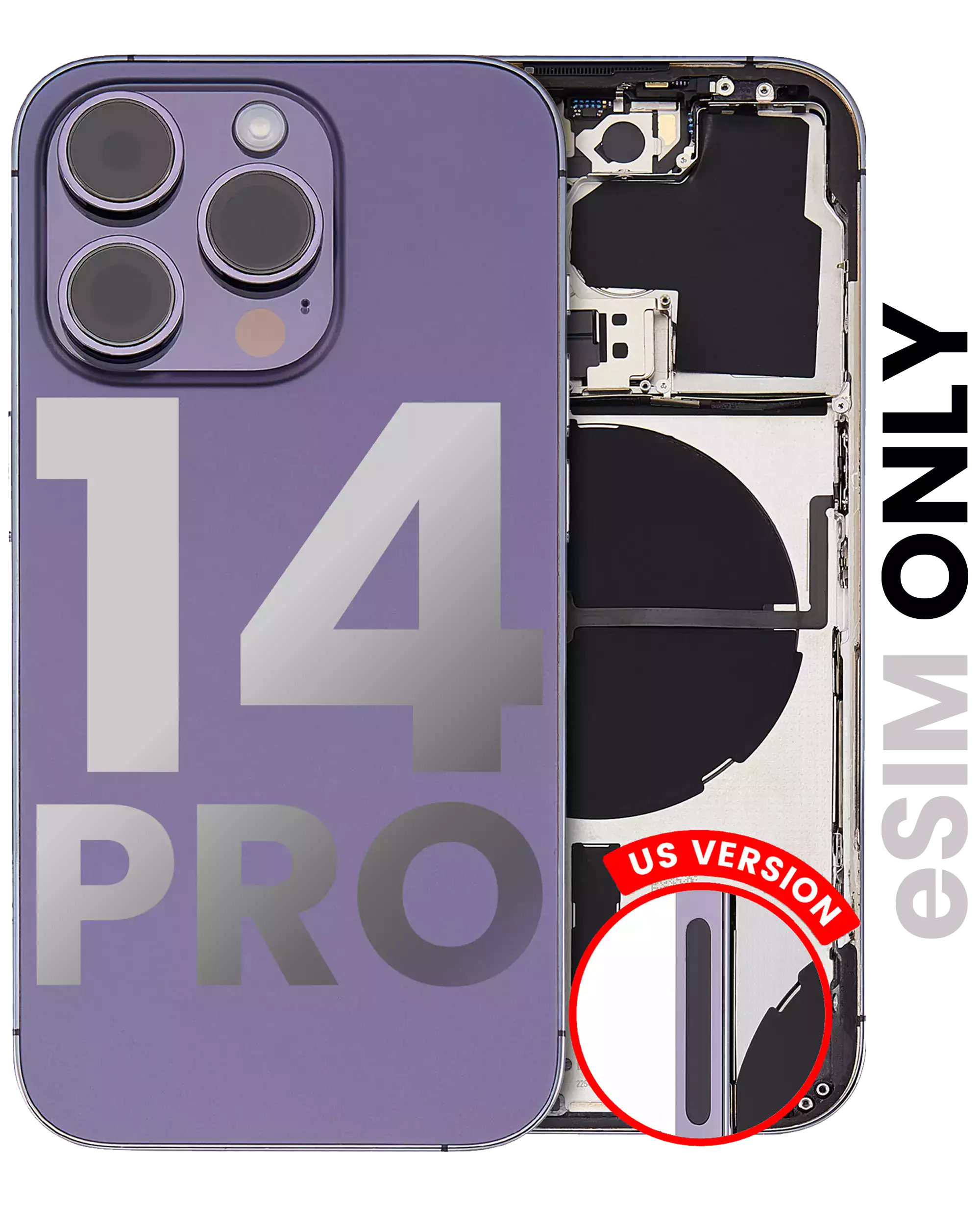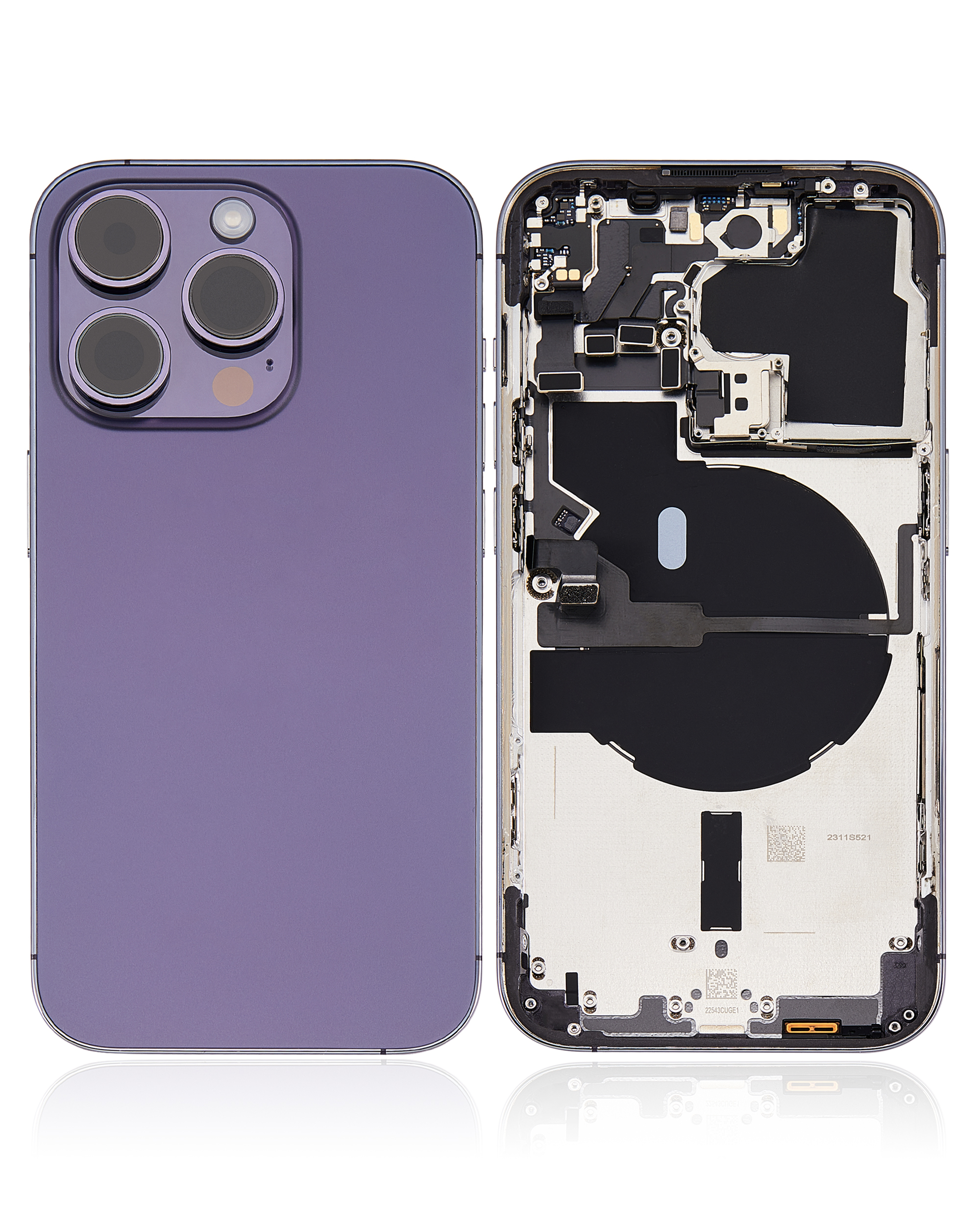 • Used OEM Pull Back Housing W/ Small Components Pre-Installed for iPhone 14 Pro (U.S Version) (Used OEM Pull: Grade A) (Deep Purple).