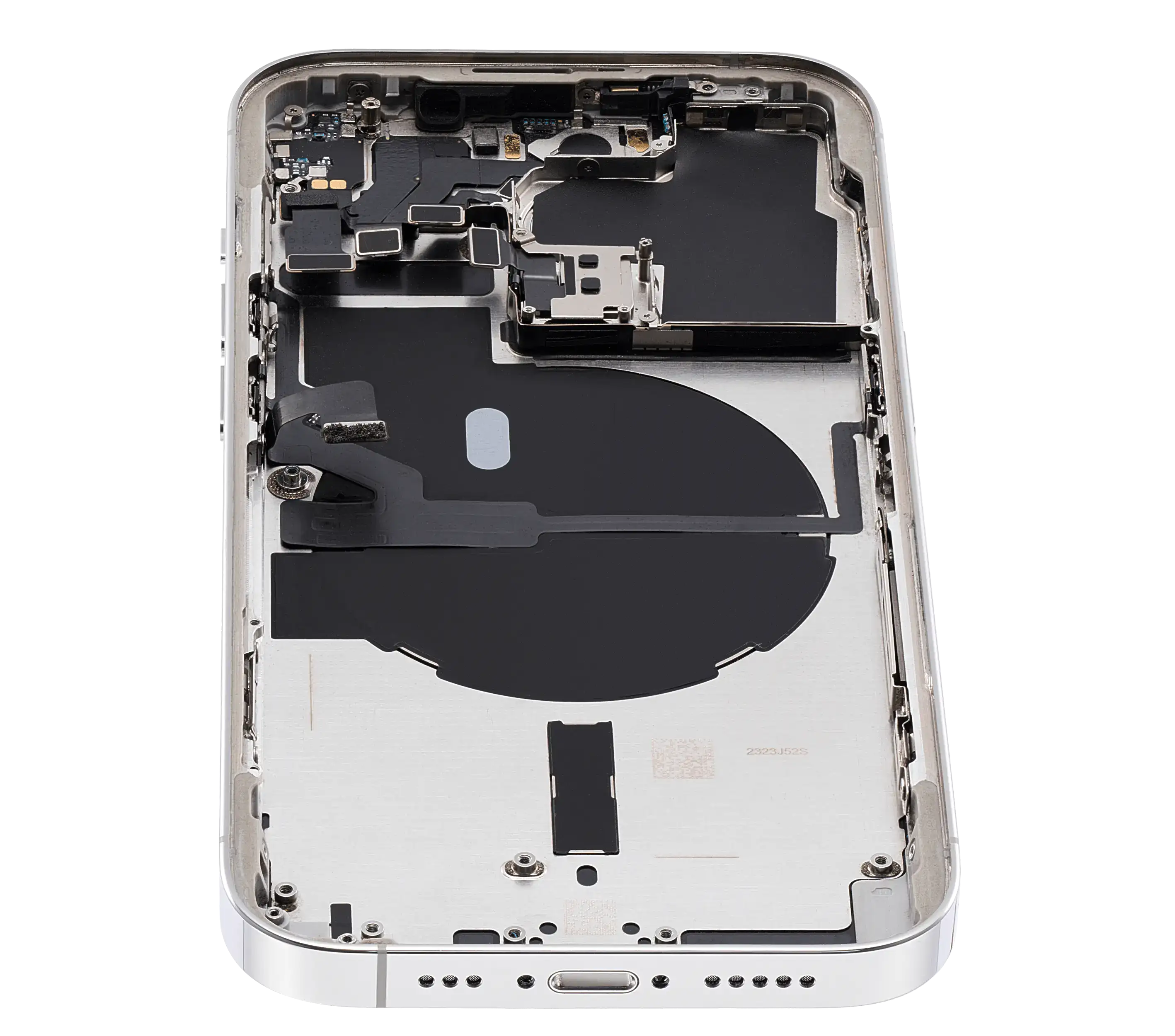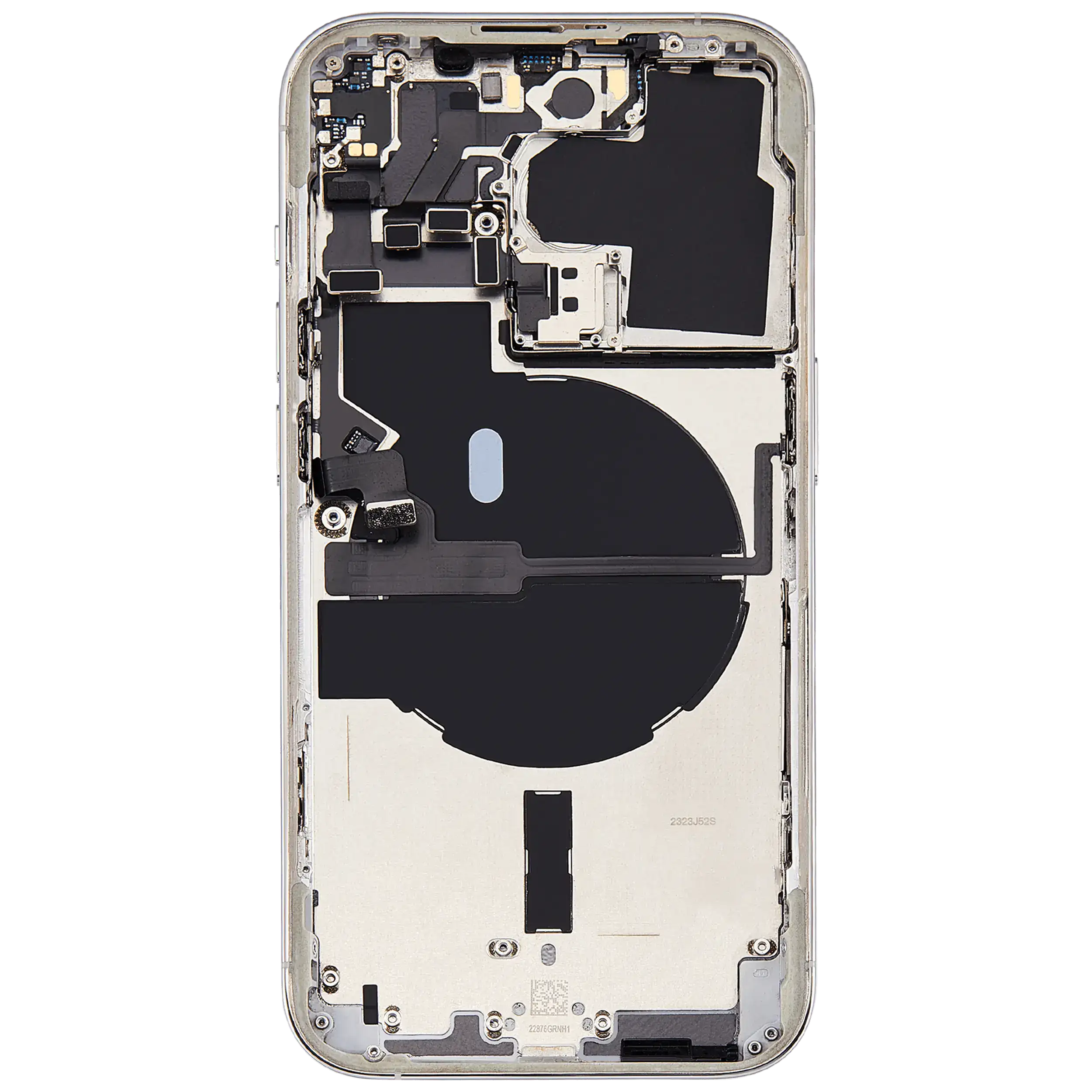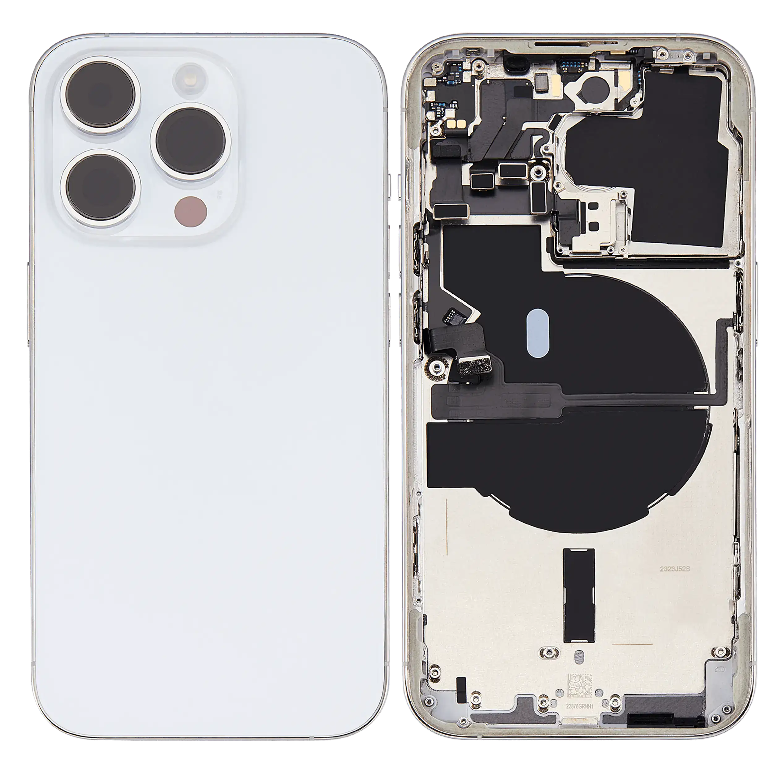 • Superb quality Back Housing W/ Small Components Pre-Installed for iPhone 14 Pro (U.S Version) (Used OEM Pull: Grade B) (Silver).