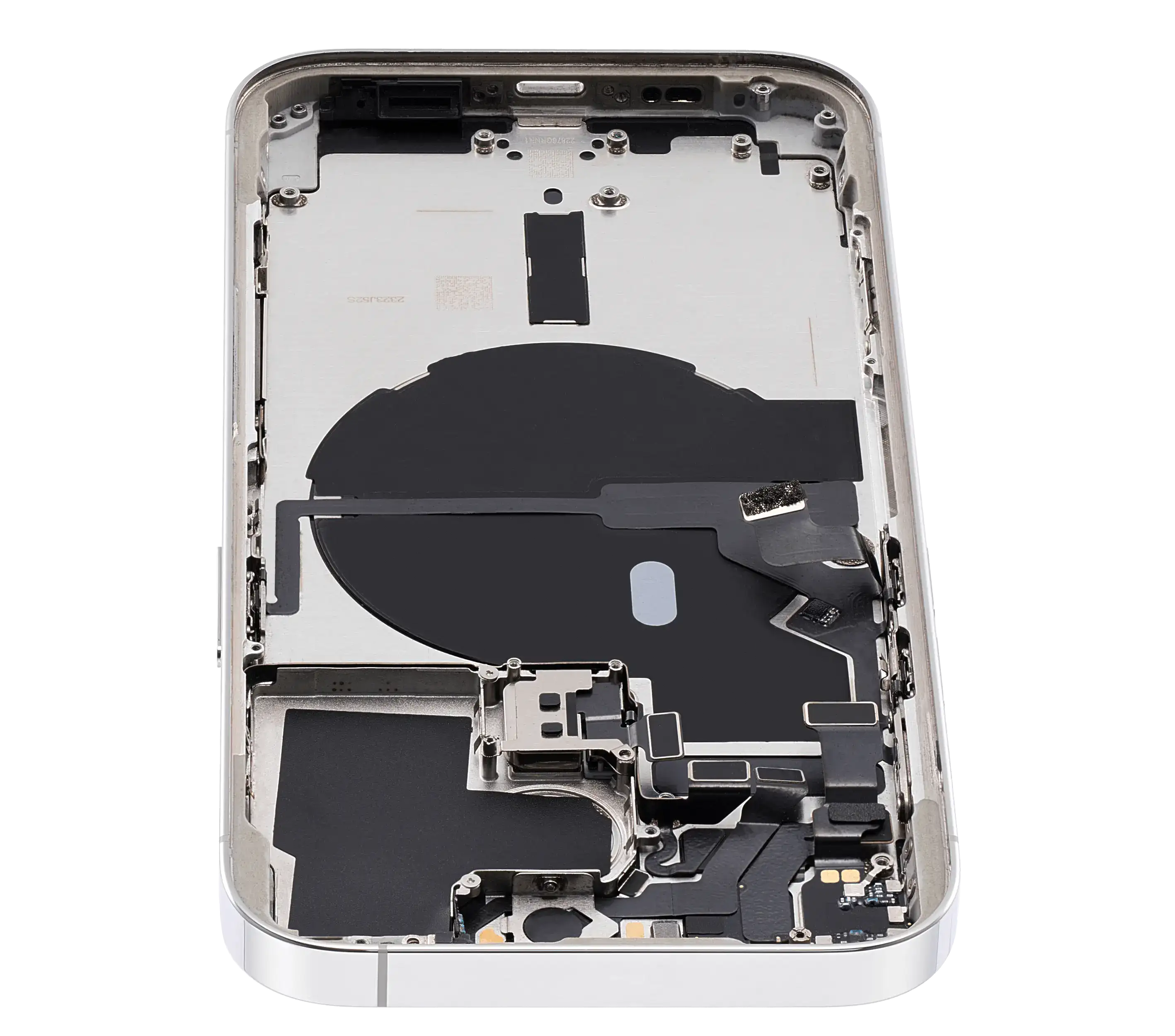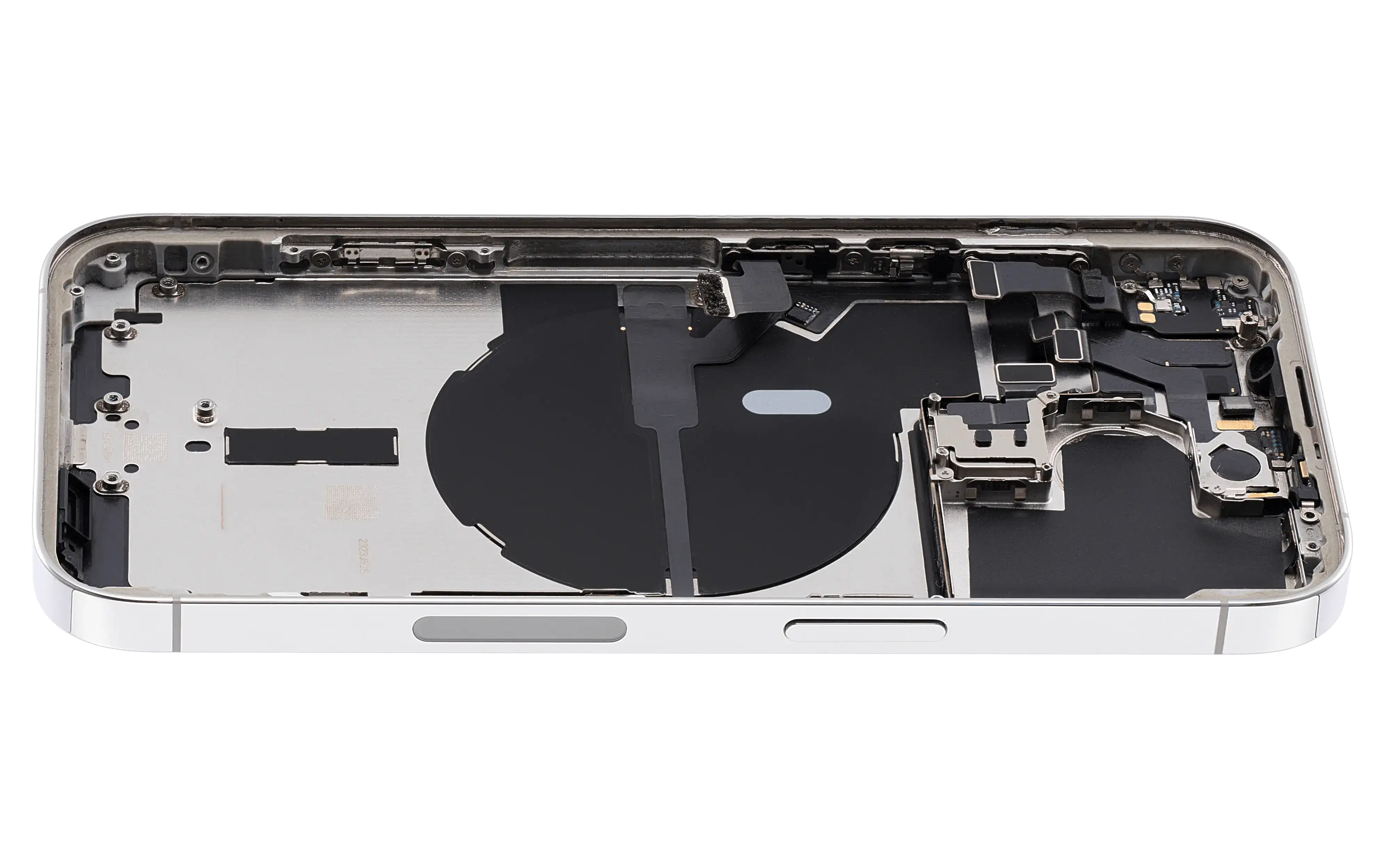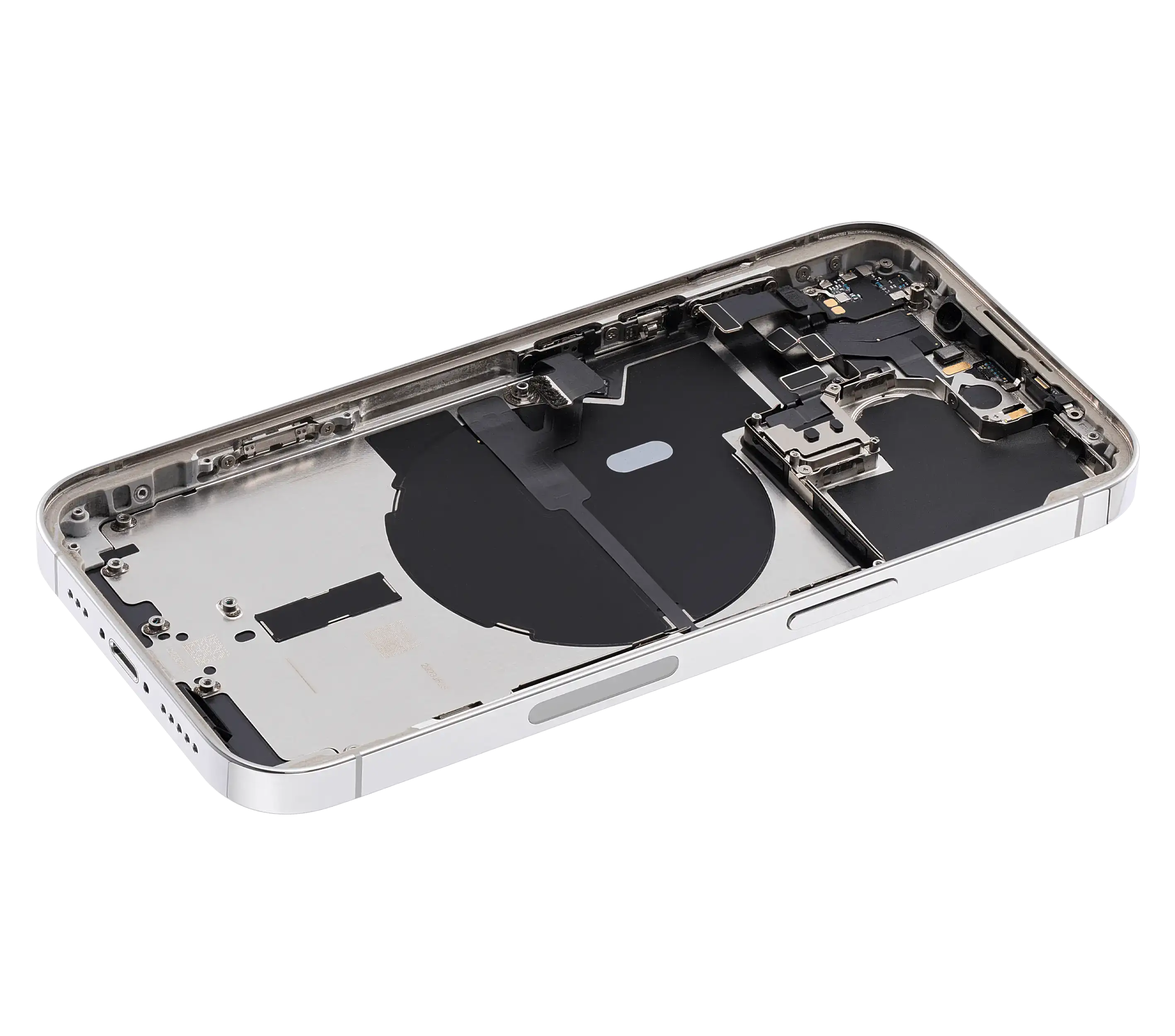 • Superb quality Back Housing W/ Small Components Pre-Installed for iPhone 14 Pro (U.S Version) (Used OEM Pull: Grade B) (Silver).