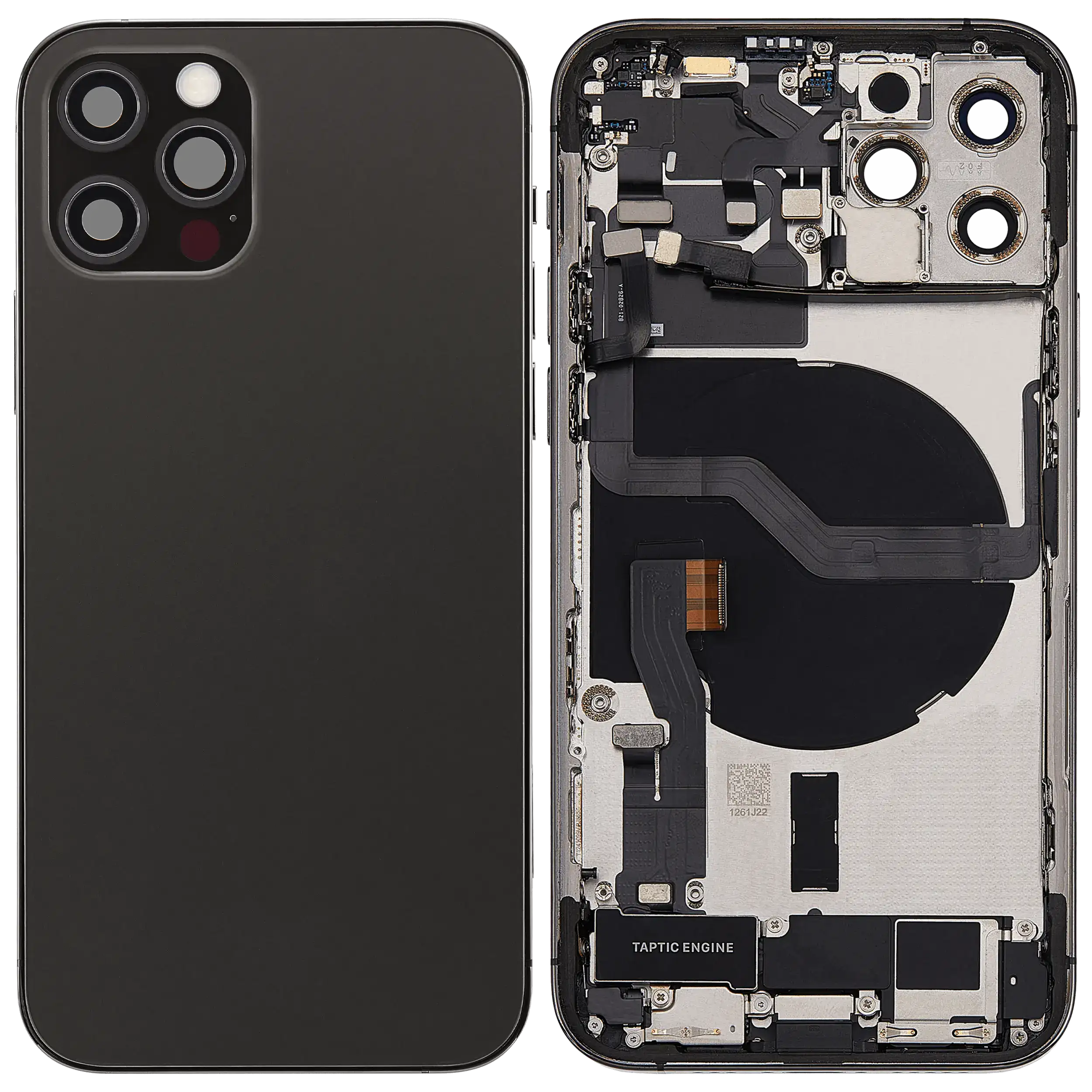 Back Housing W/ Charging Port Flex & Small Parts For iPhone 12 Pro (US Version) (Used OEM Pull: Grade C) (Graphite)
