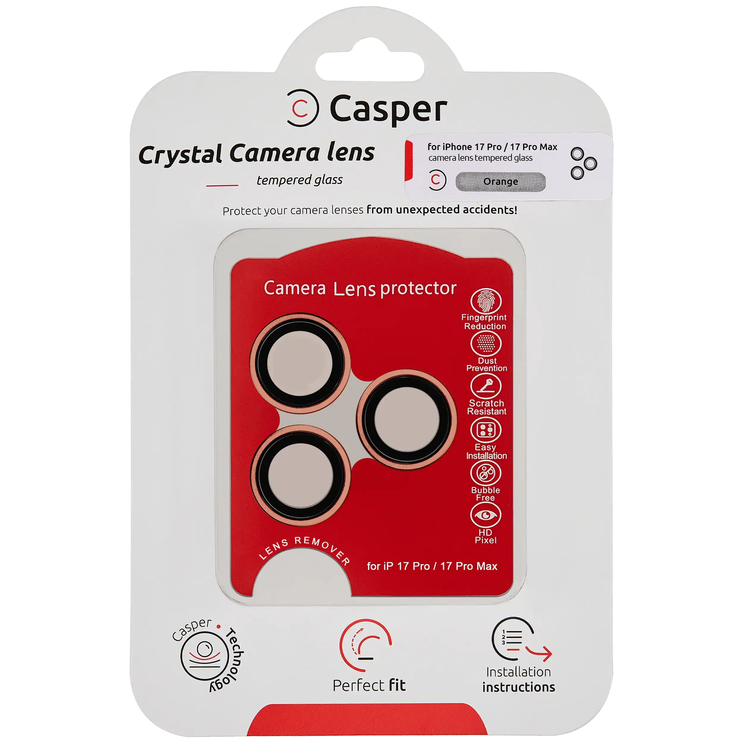 Casper Camera Lens Protector iPhone 17 Pro / 17 Pro Max (Orange) (Clear)