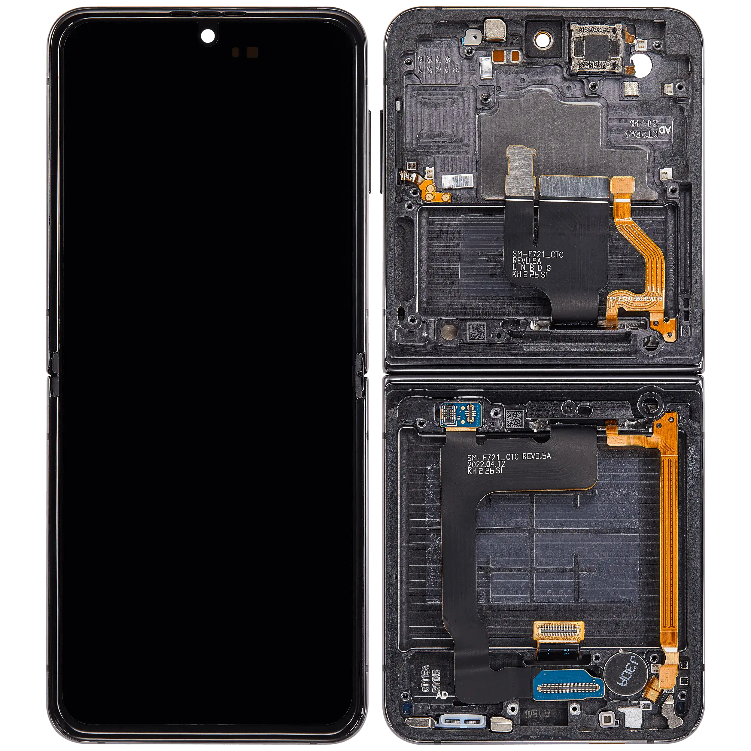 Inner OLED Assembly With Frame Compatible For Samsung Galaxy Z Flip 4 5G (F721) (US & International Version) (Aftermarket) (Graphite)