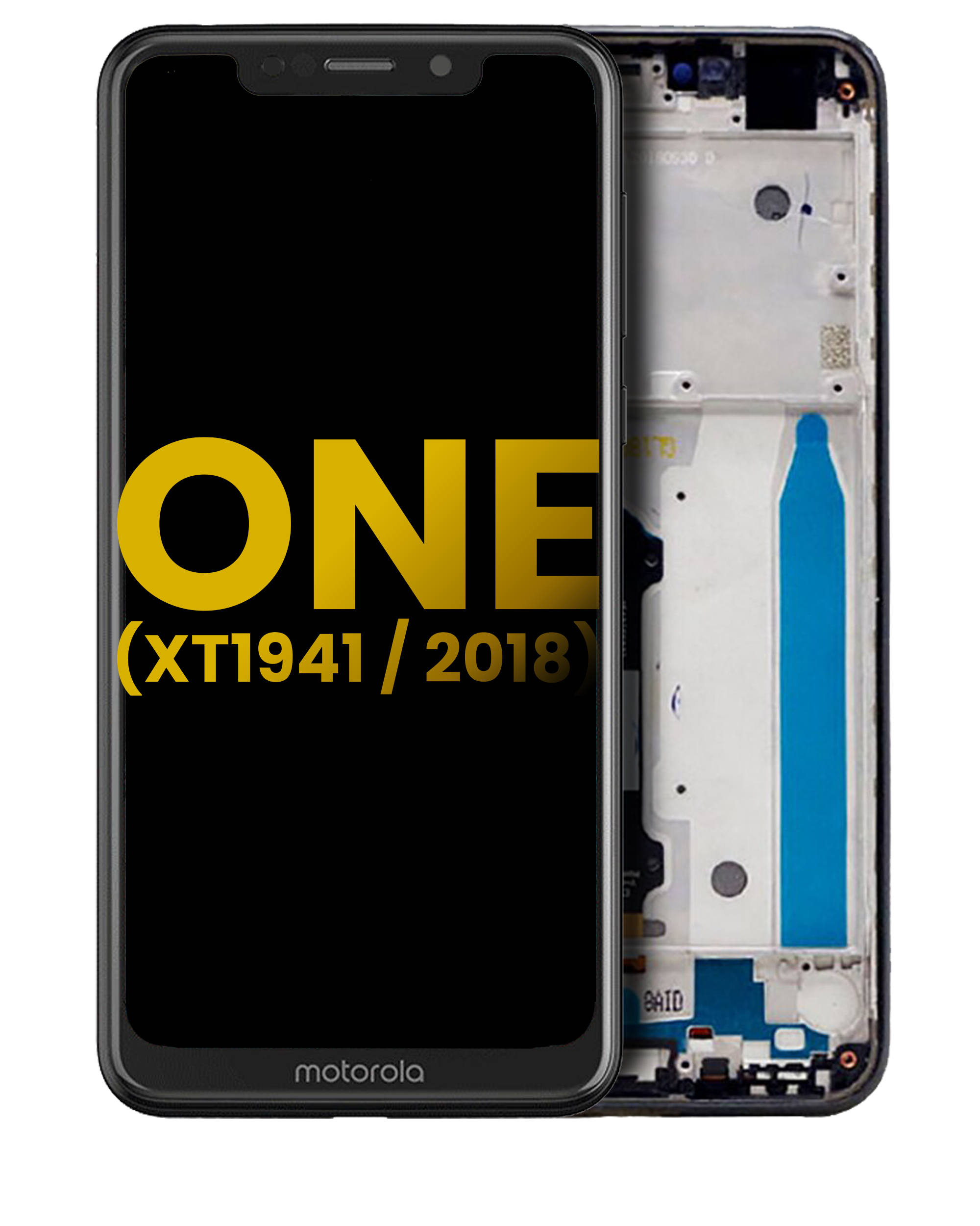 • Genuine OEM LCD Assembly with Frame For Moto One (XT1941 / 2018) (Black).