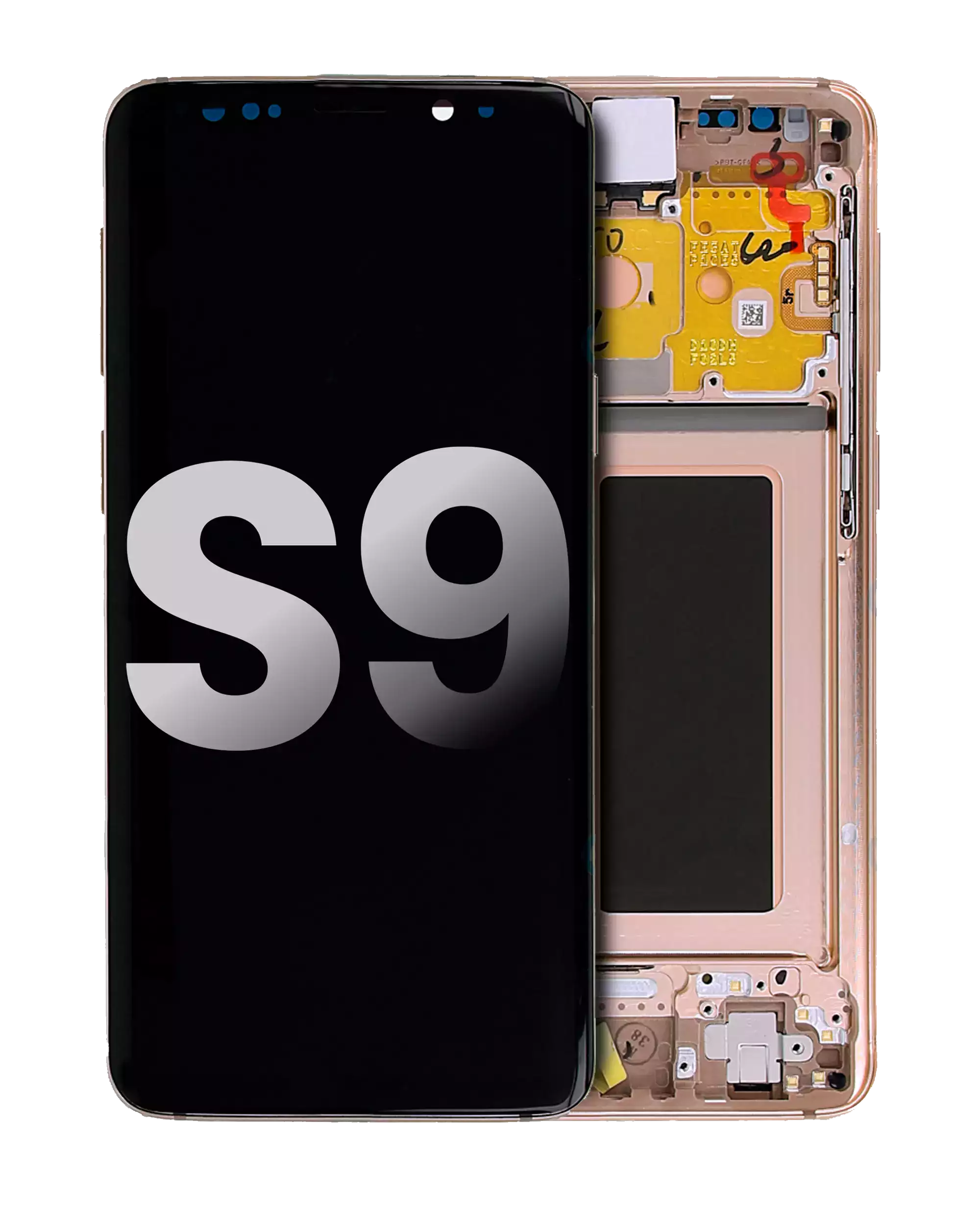 • Used OEM Pull OLED Assembly with frame for Samsung Galaxy S9 (OEM Pulls / Grade A) (Gold).
