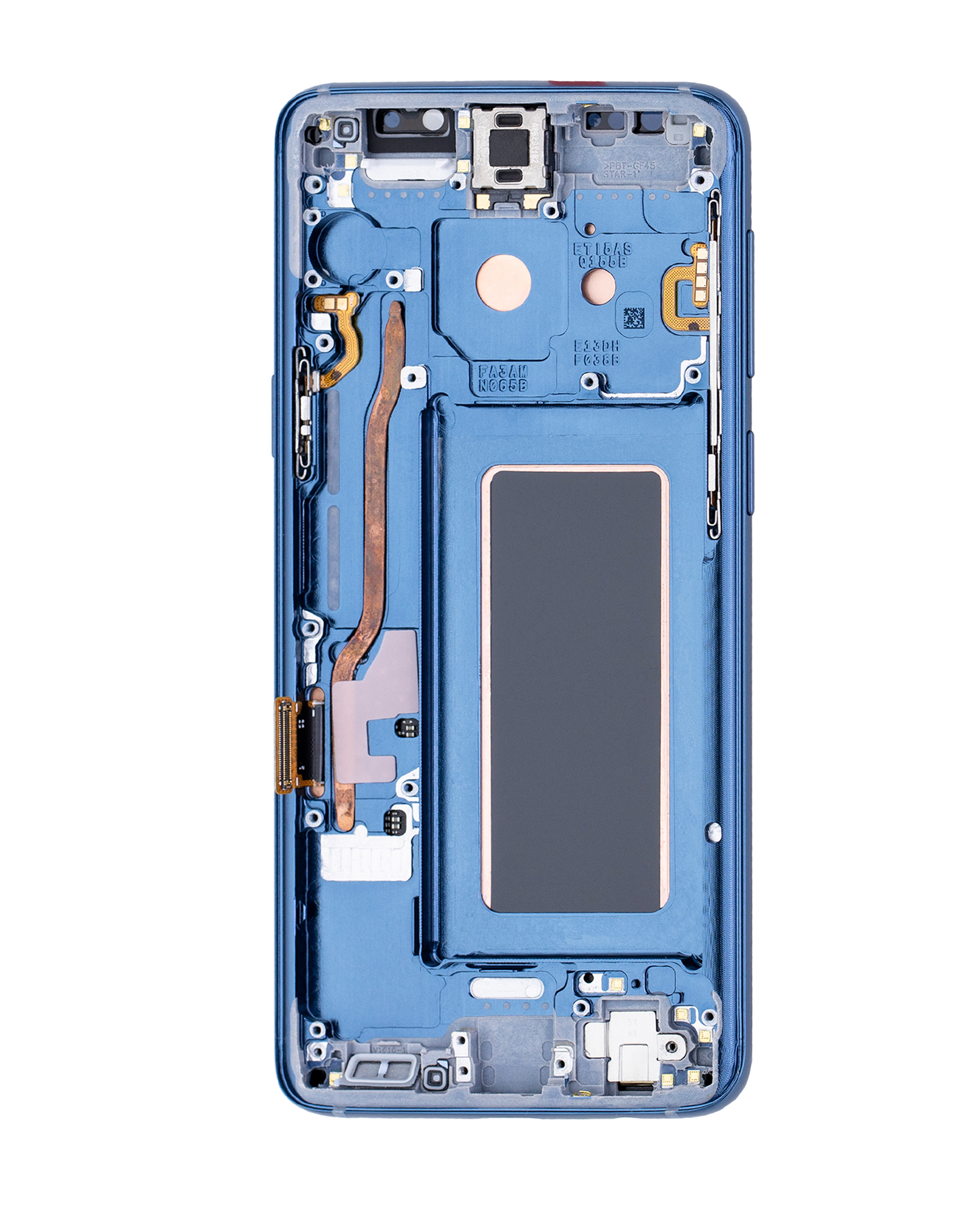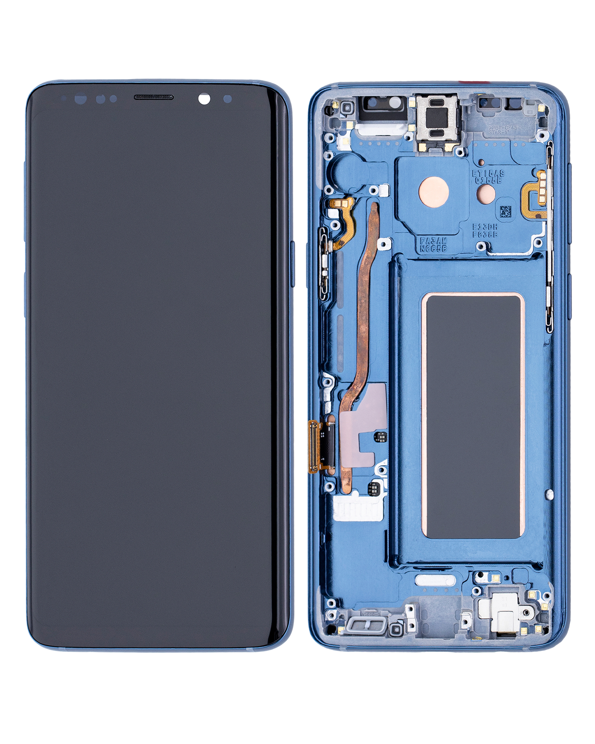 • Used OEM Pull OLED Assembly with frame for Samsung Galaxy S9 (OEM Pull / Grade B /C) (Coral Blue Frame).