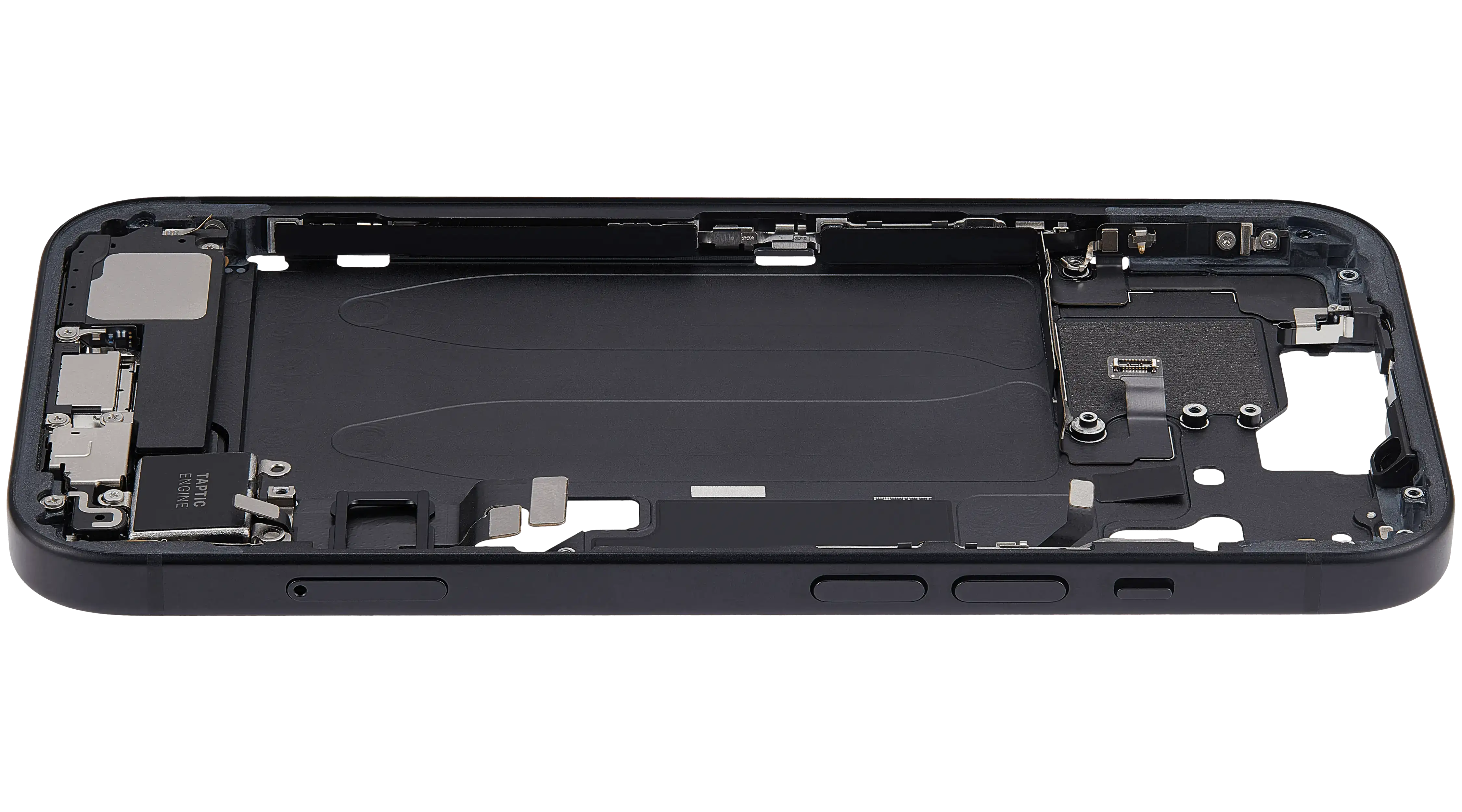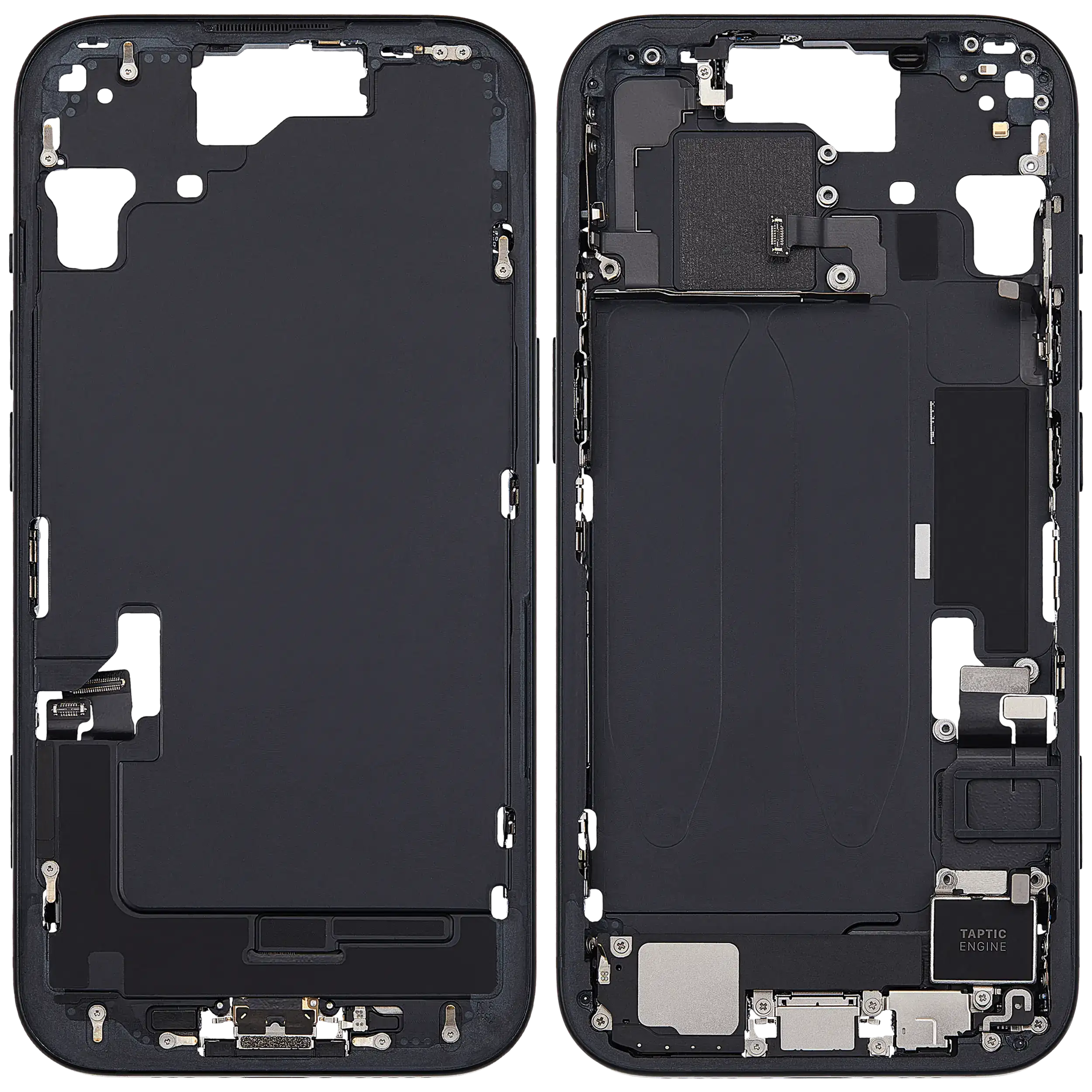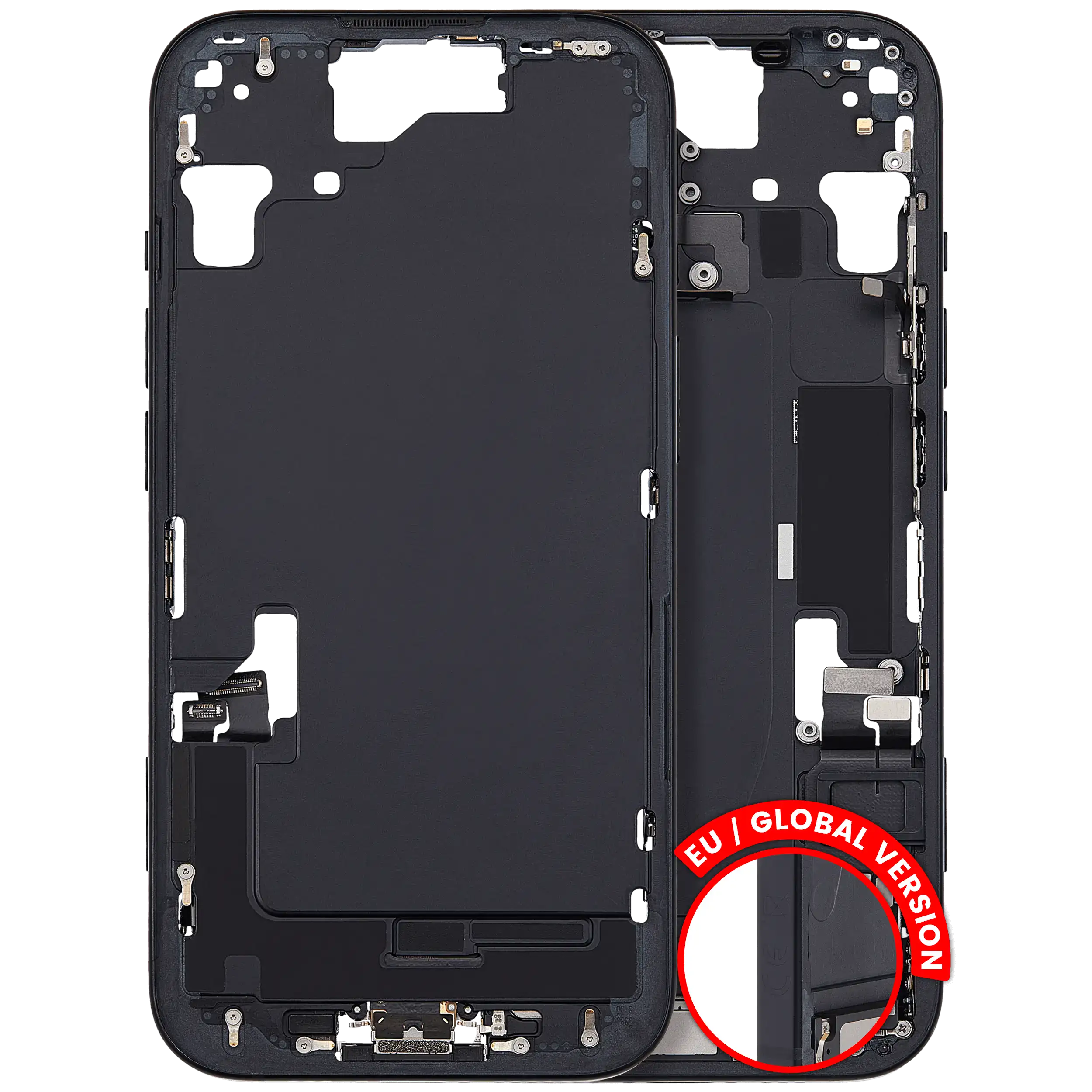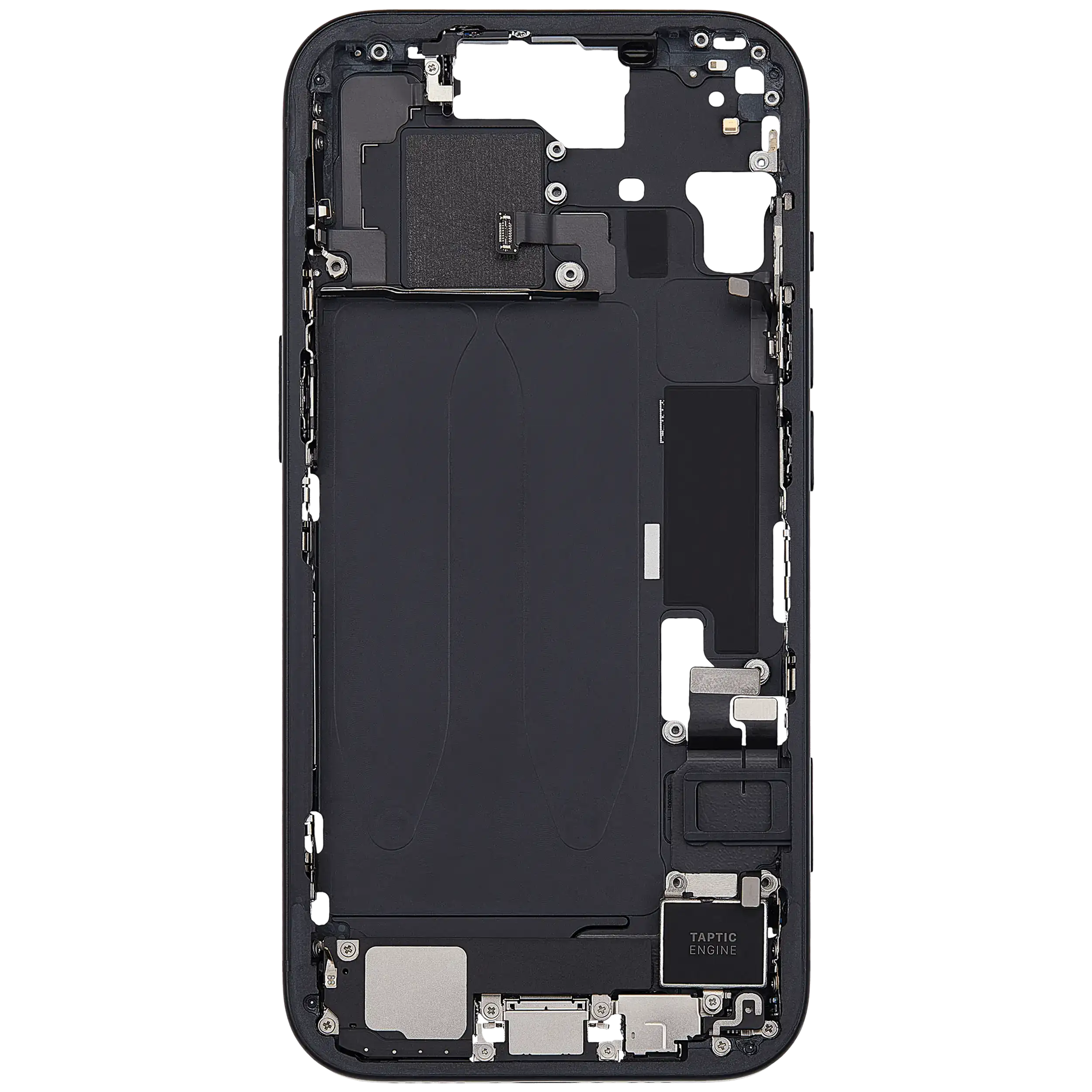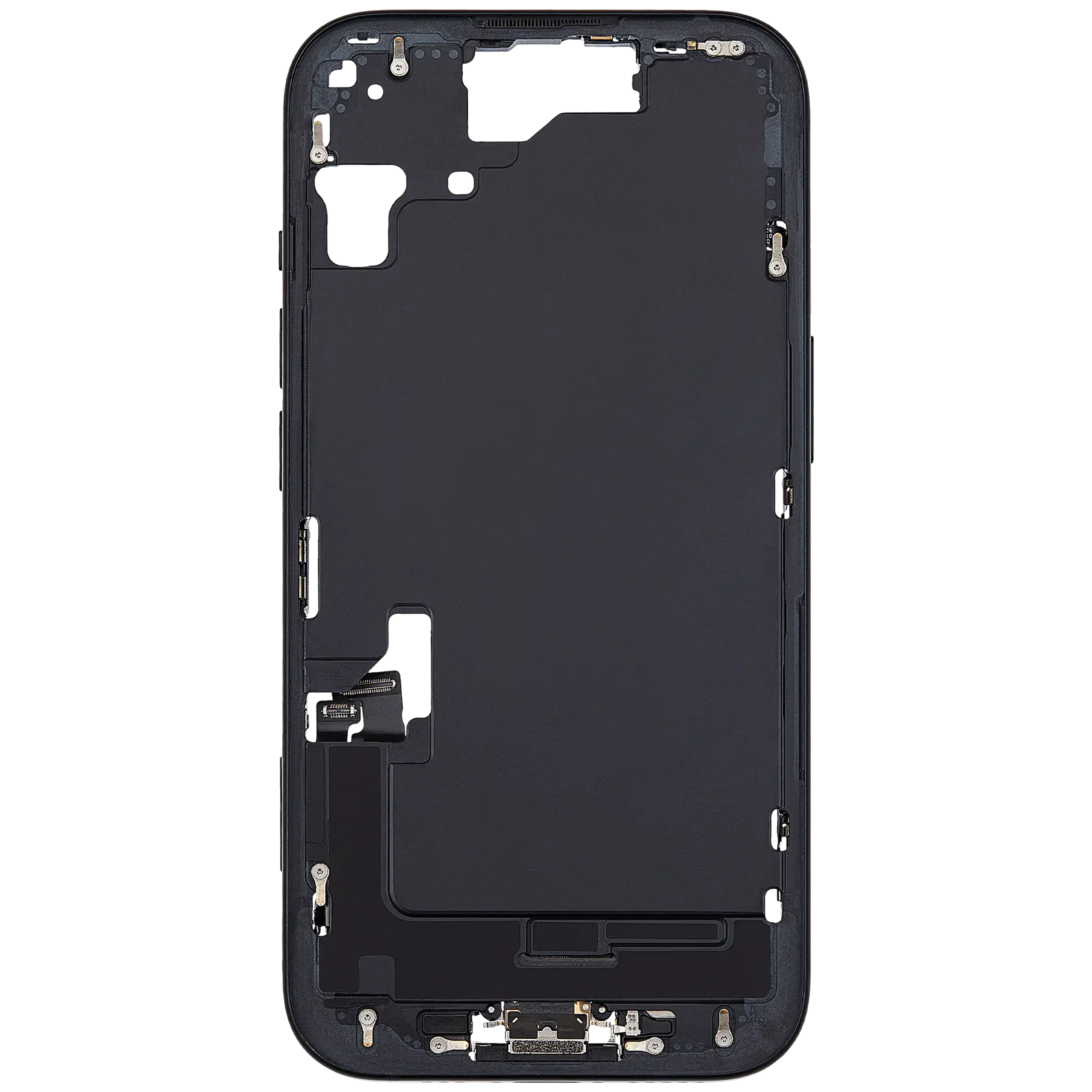 Mid-Frame Housing W/ Charging Port Flex & Small Parts For iPhone 15 (EU / Global Version) (Used OEM Pull: Grade B) (Black)