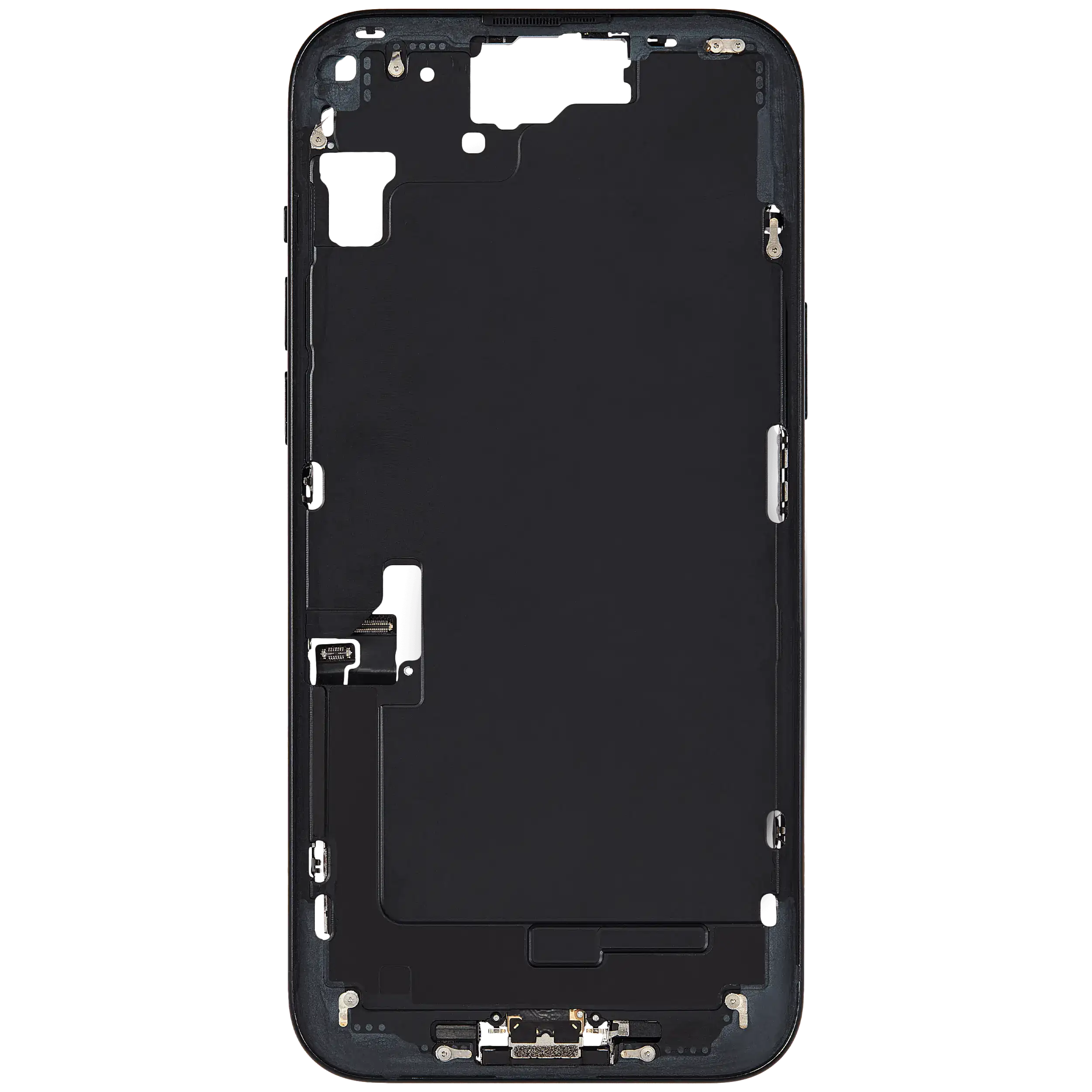 Mid-Frame Housing W/ Charging Port Flex & Small Parts For iPhone 15 Plus (EU / Global Version) (Used OEM Pull: Grade C) (Black)