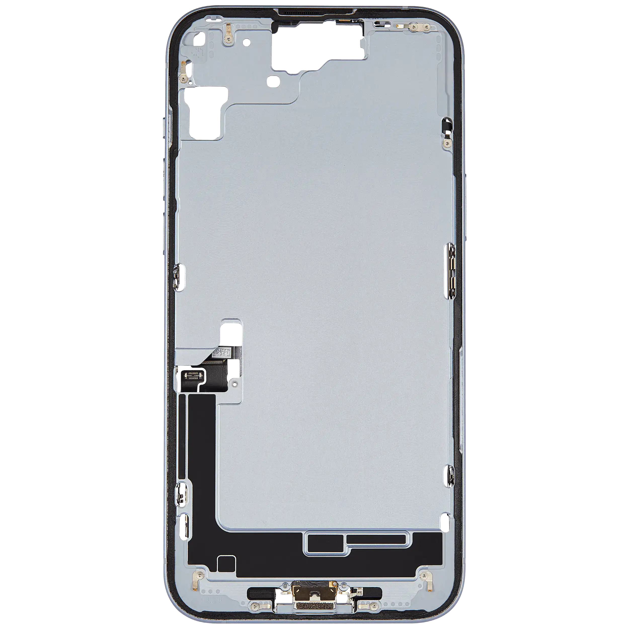 Mid-Frame Housing W/ Charging Port Flex & Small Parts For iPhone 15 Plus (US Version) (Used OEM Pull: Grade B) (Blue)