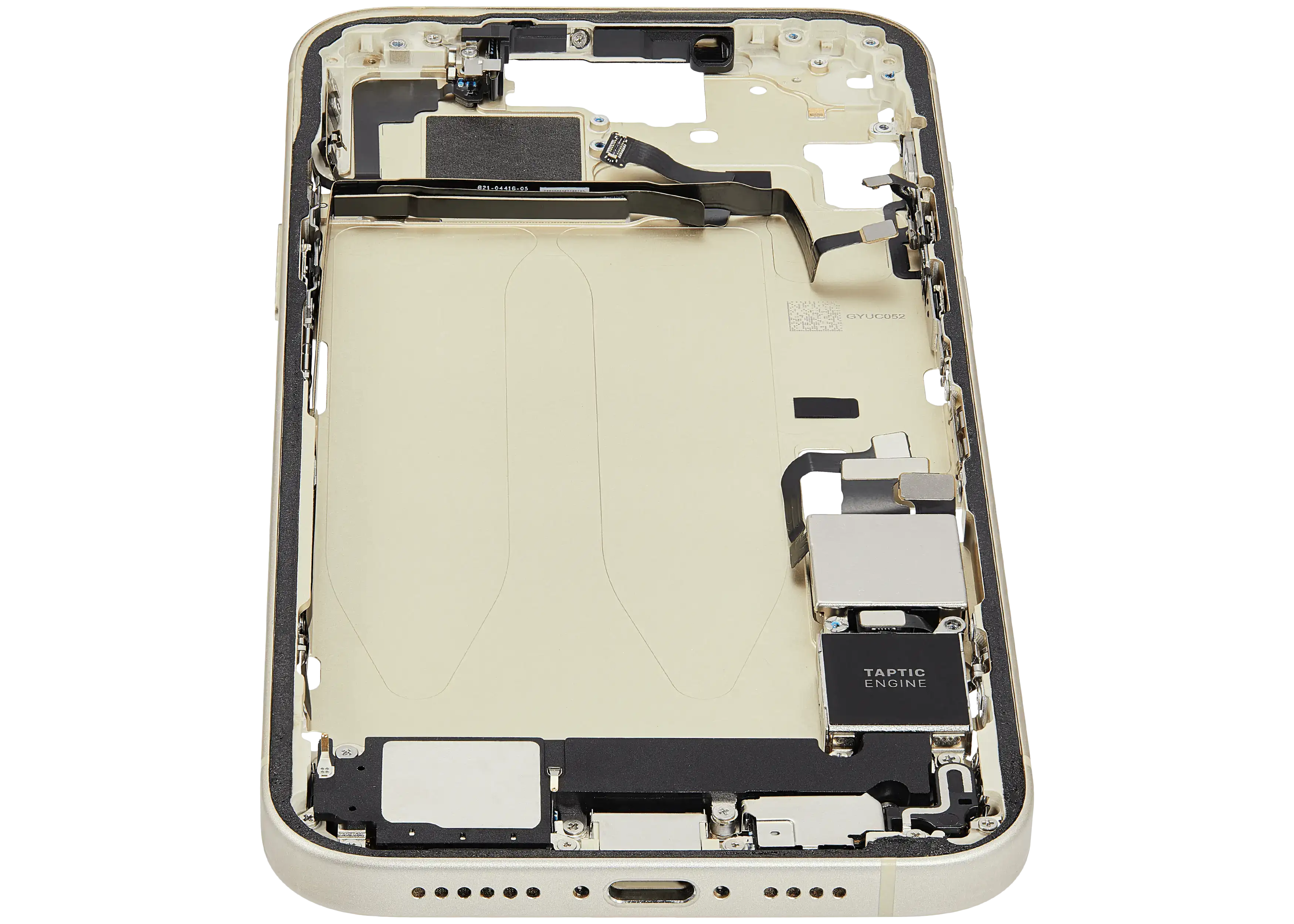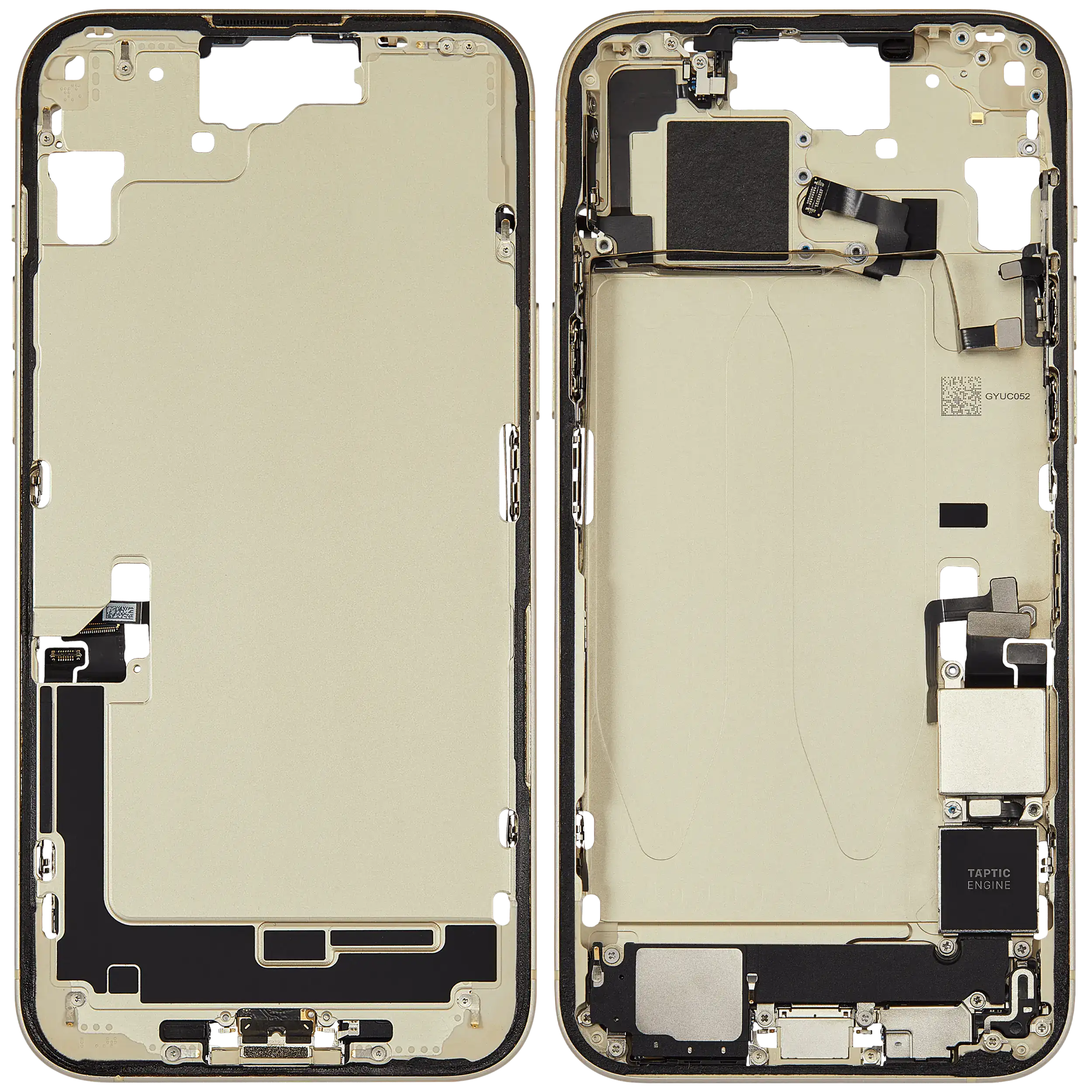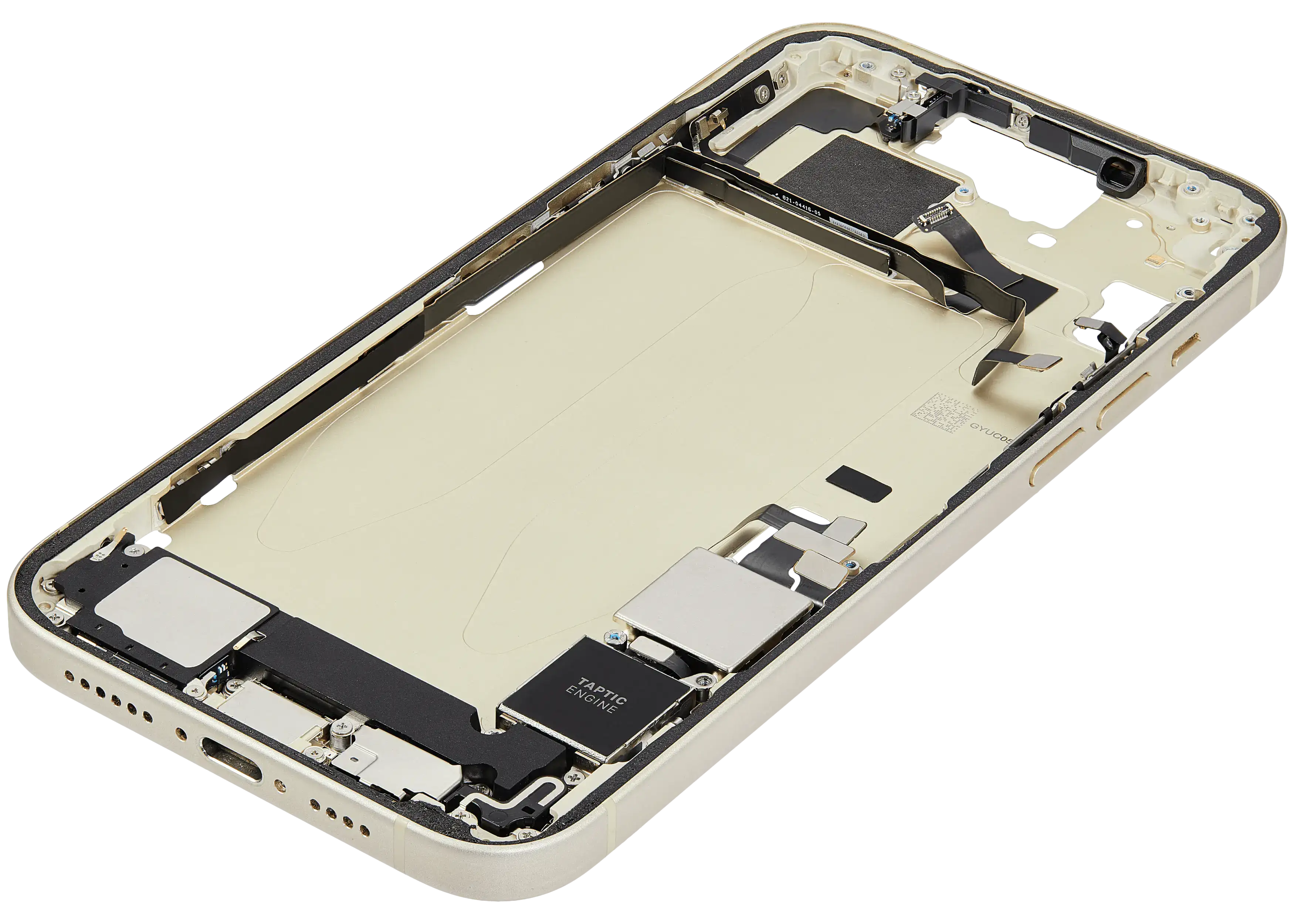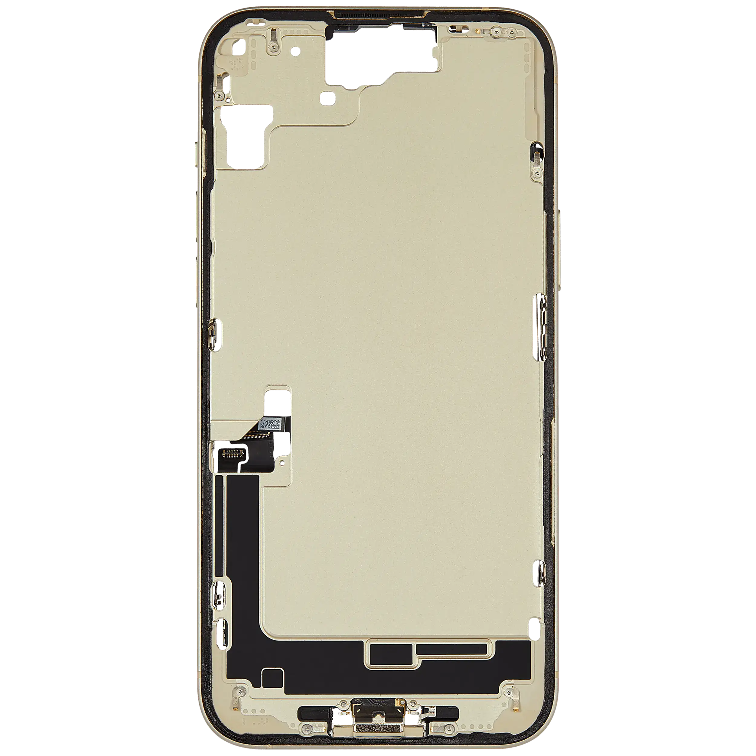 Mid-Frame Housing W/ Charging Port Flex & Small Parts For iPhone 15 Plus (US Version) (Used OEM Pull: Grade B) (Yellow)
