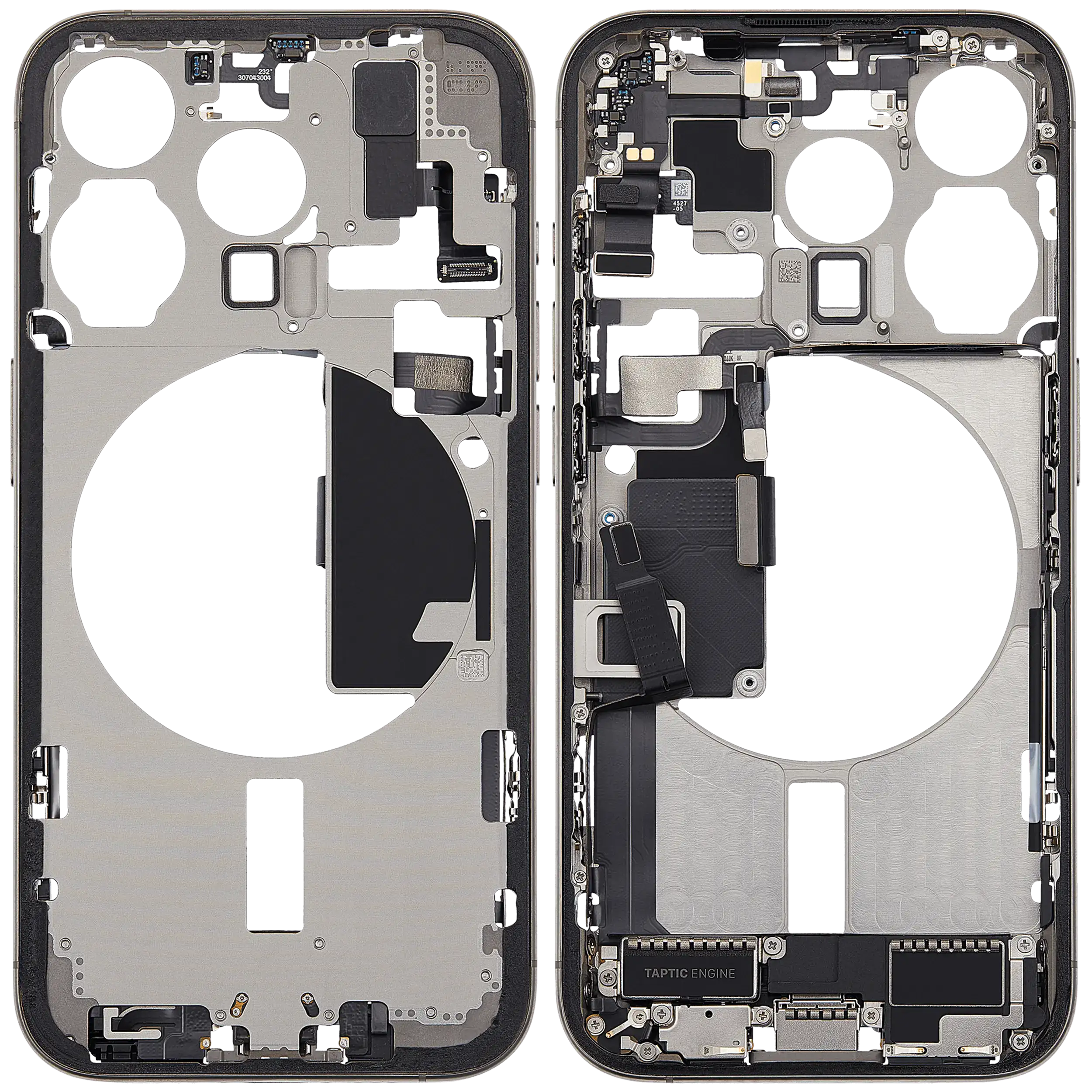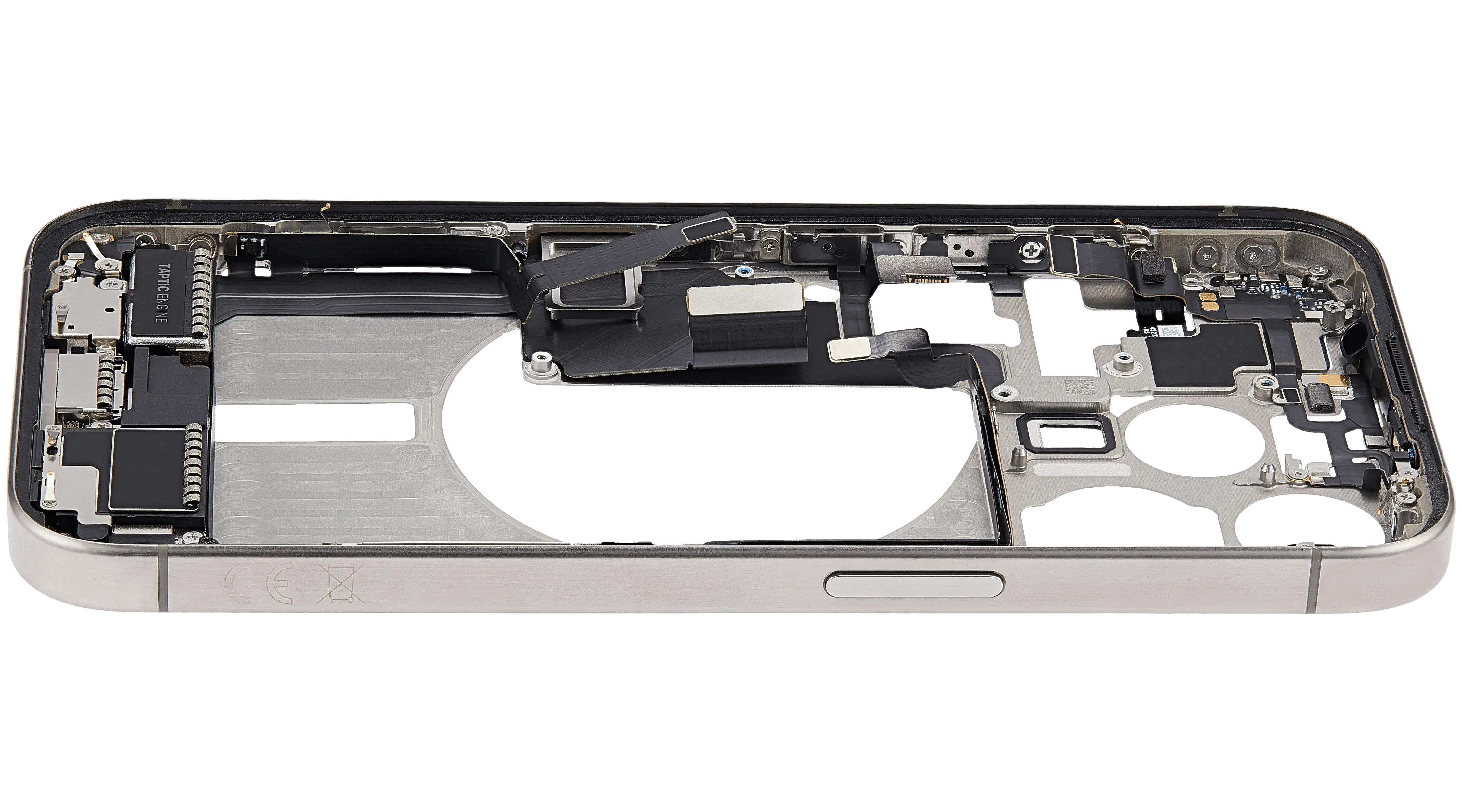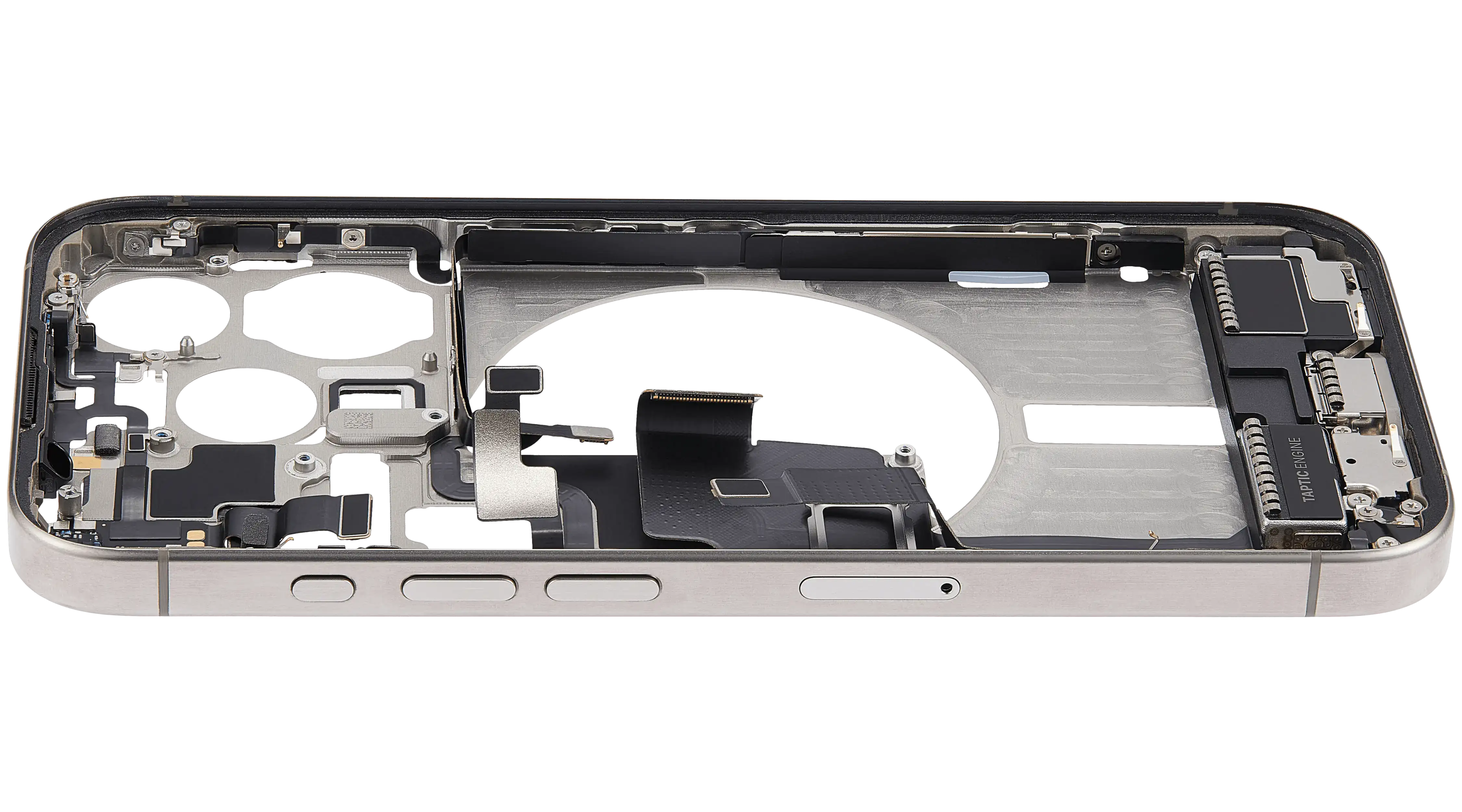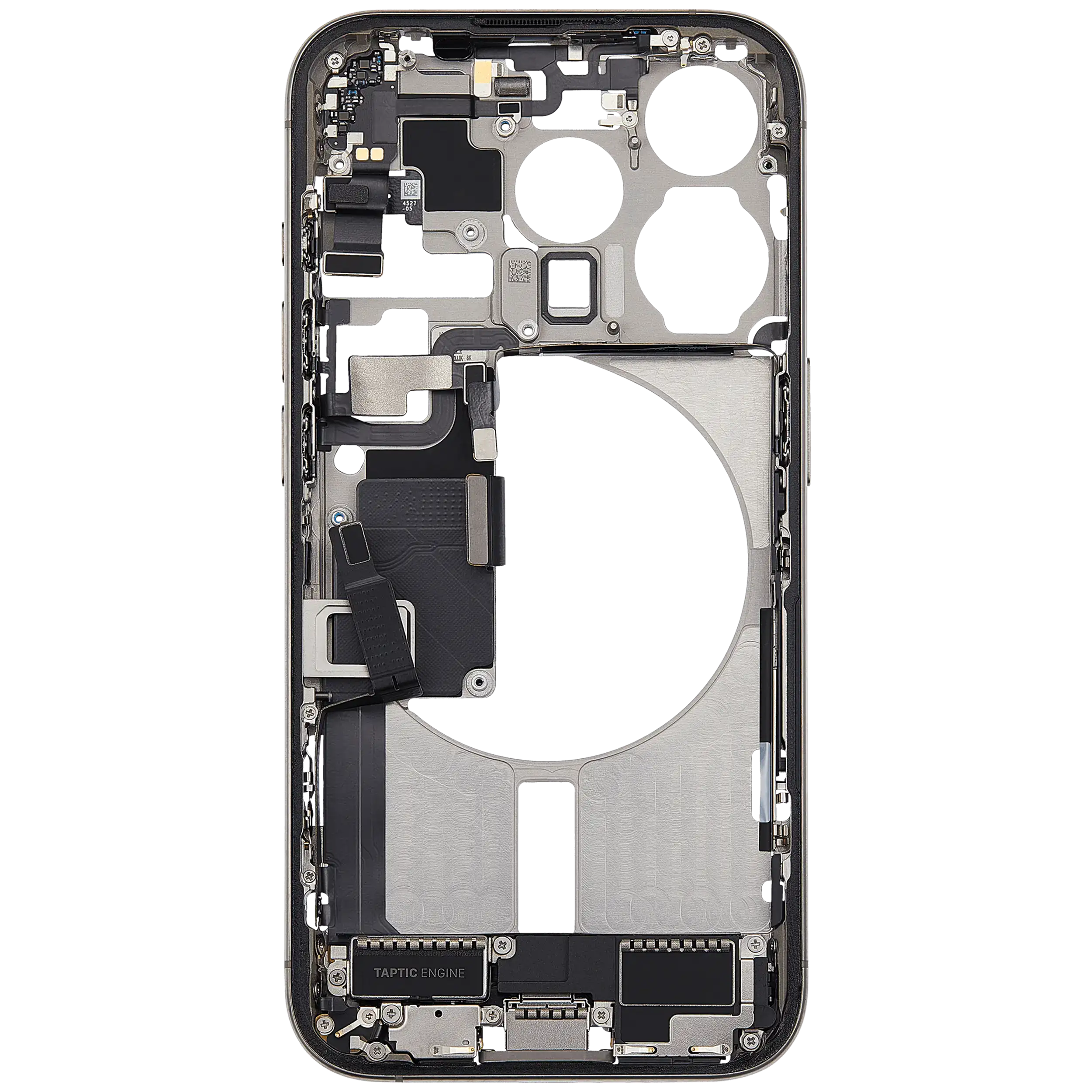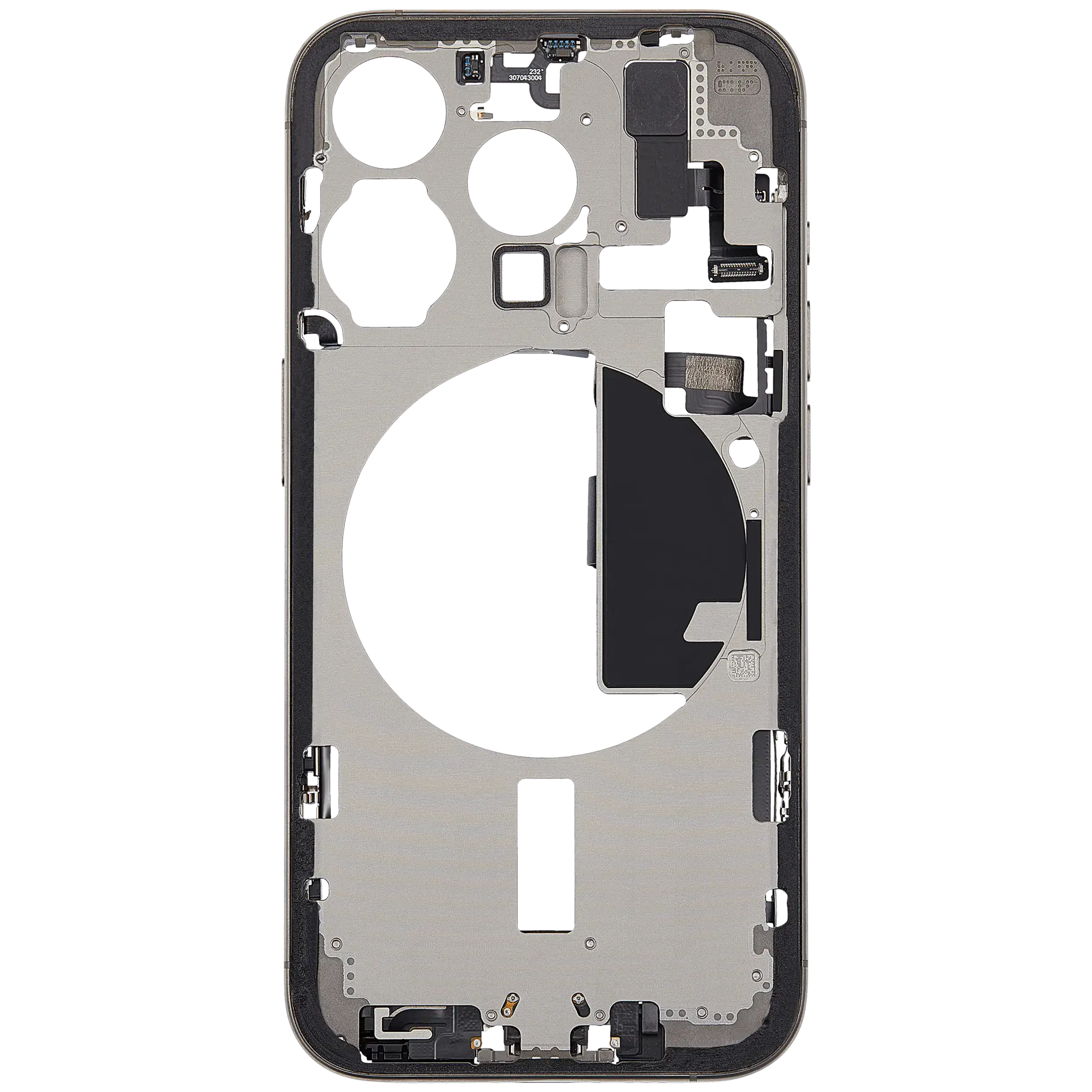 Mid-Frame Housing W/ Charging Port Flex & Small Parts For iPhone 15 Pro (EU / Global Version) (Used OEM Pull: Grade C) (Natural Titanium)