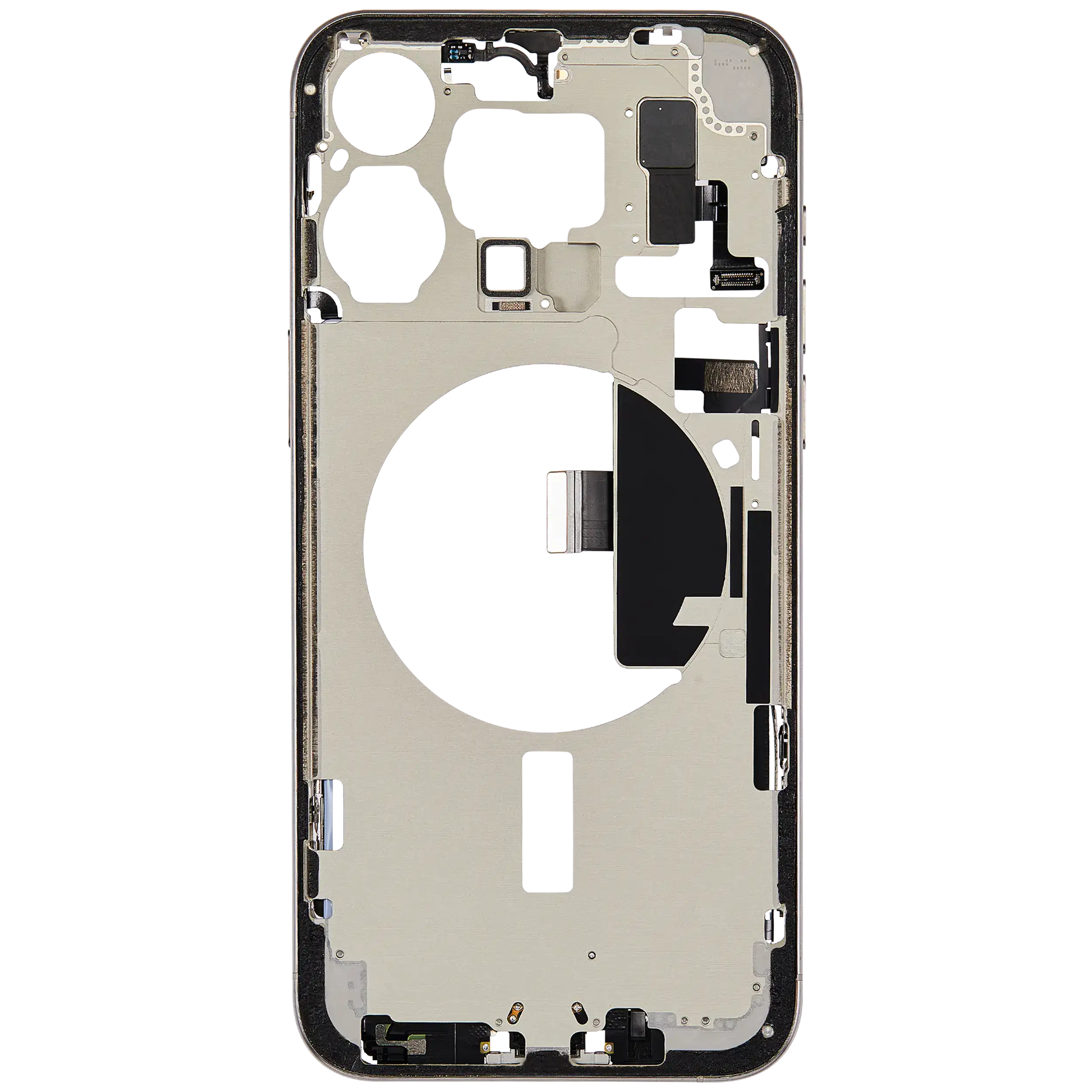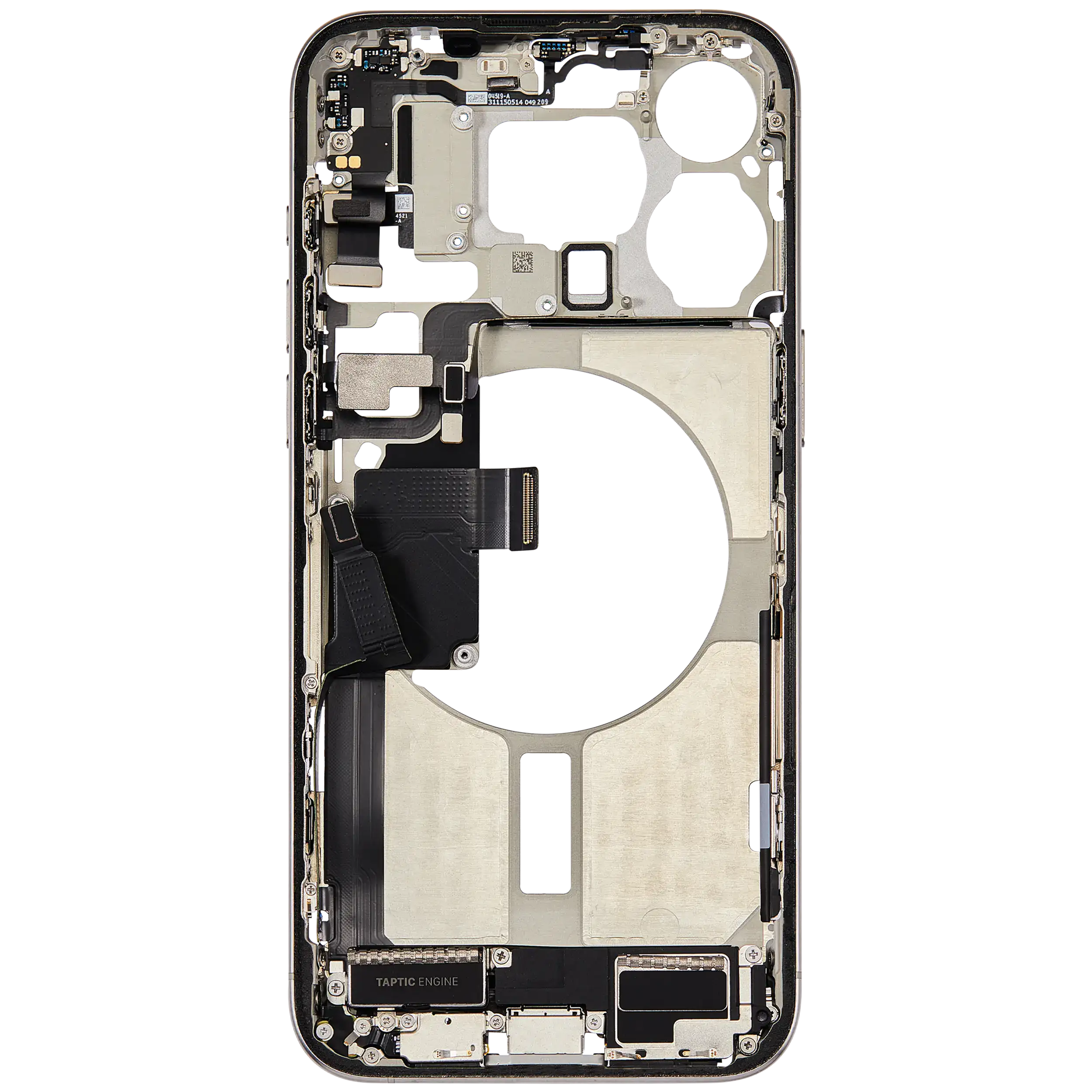 Mid-Frame Housing W/ Charging Port Flex & Small Parts For iPhone 15 Pro Max (US Version) (Used OEM Pull: Grade C) (White Titanium)