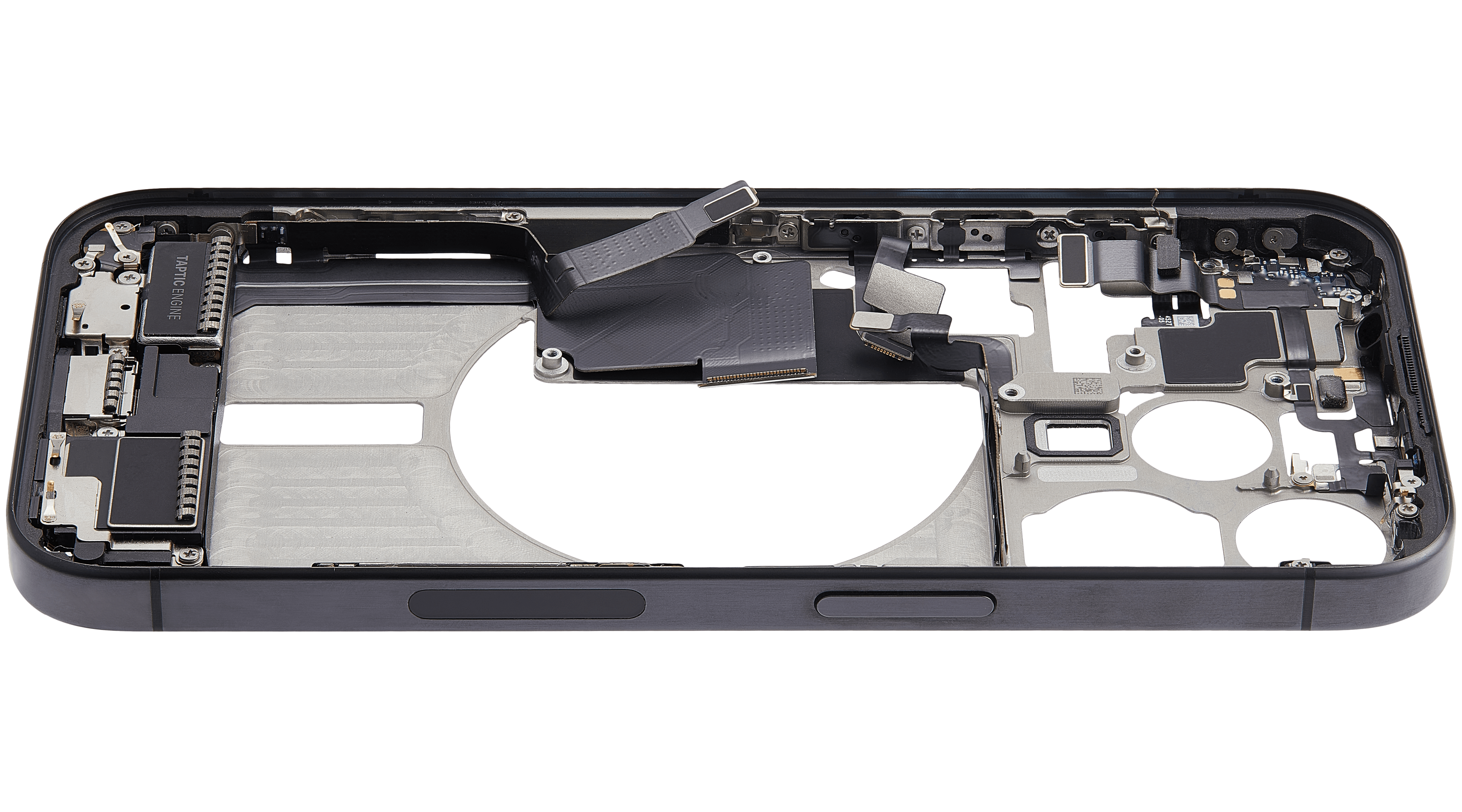 Mid-Frame Housing W/ Charging Port Flex & Small Parts For iPhone 15 Pro (US Version) (Used OEM Pull: Grade C) (Black Titanium)
