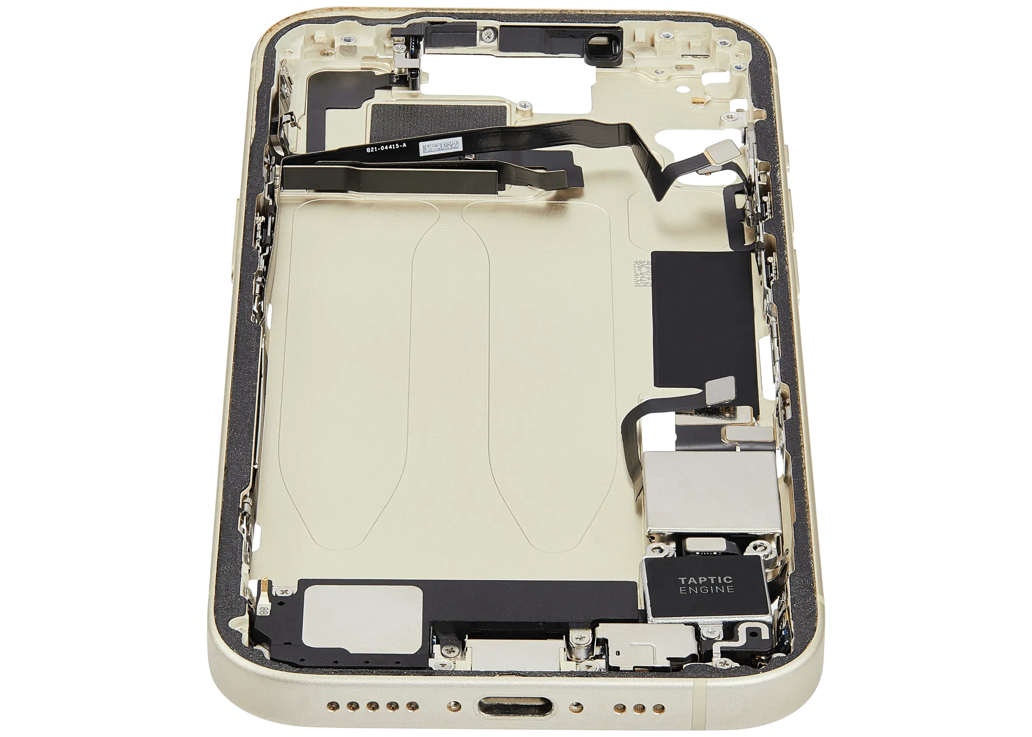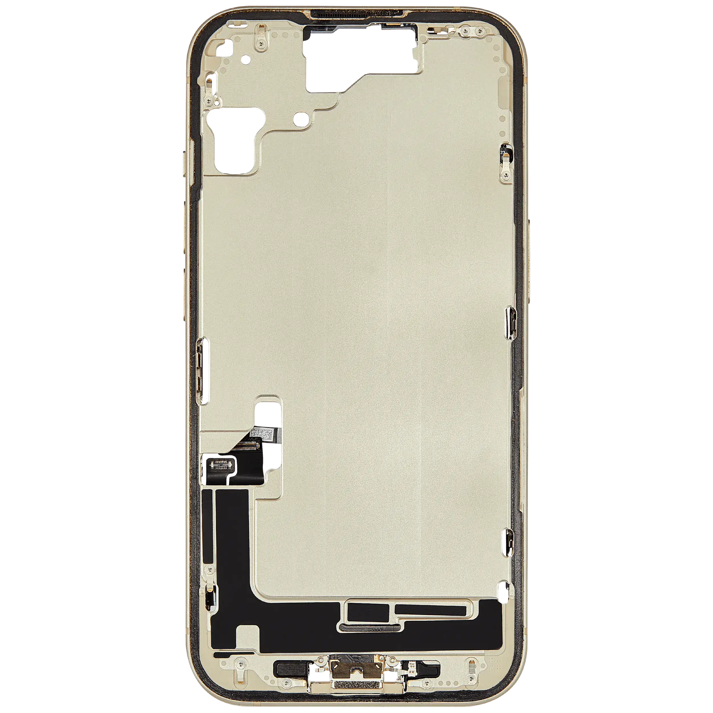 Mid-Frame Housing W/ Charging Port Flex & Small Parts For iPhone 15 (US Version) (Used OEM Pull: Grade C) (Yellow)