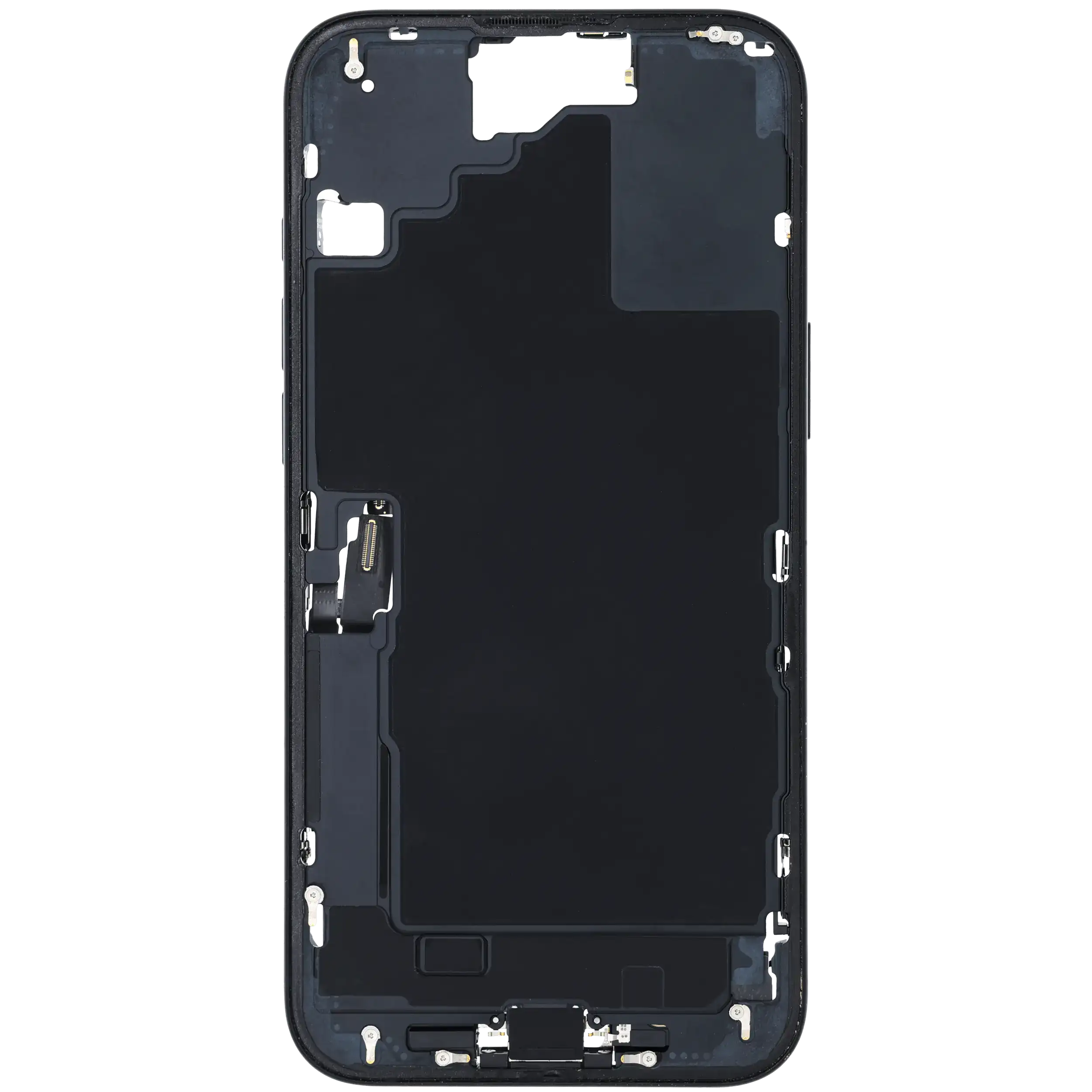 Mid-Frame Housing W/ Charging Port Flex & Small Parts For iPhone 16 Plus (EU / Global Version) (Used OEM Pull: Grade A) (Black)